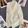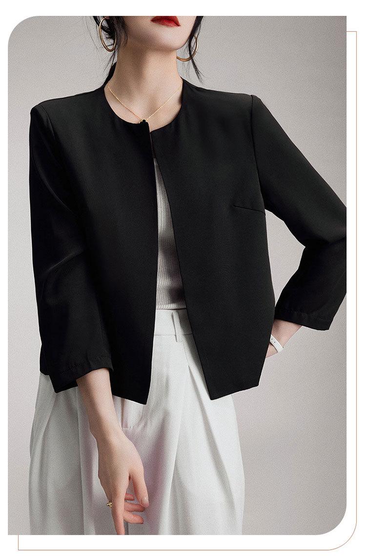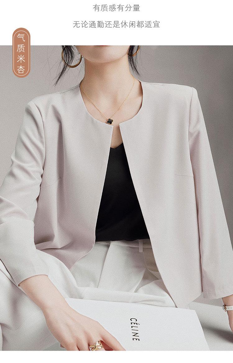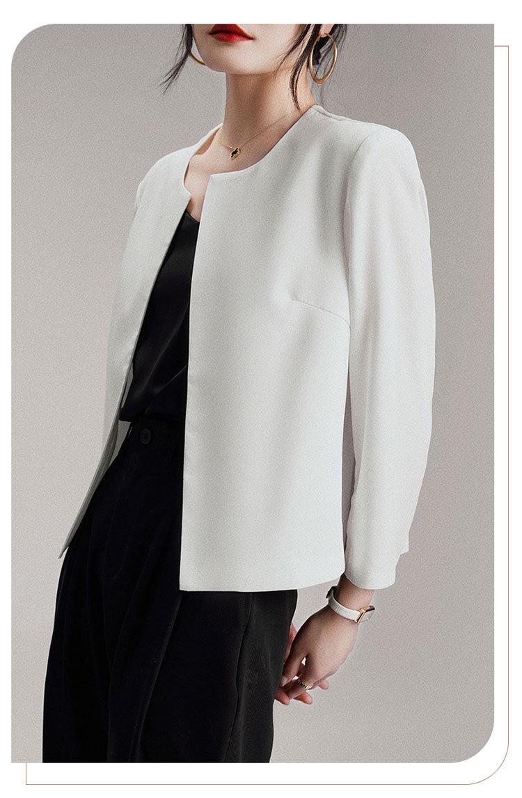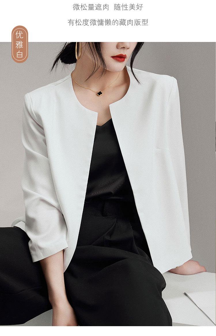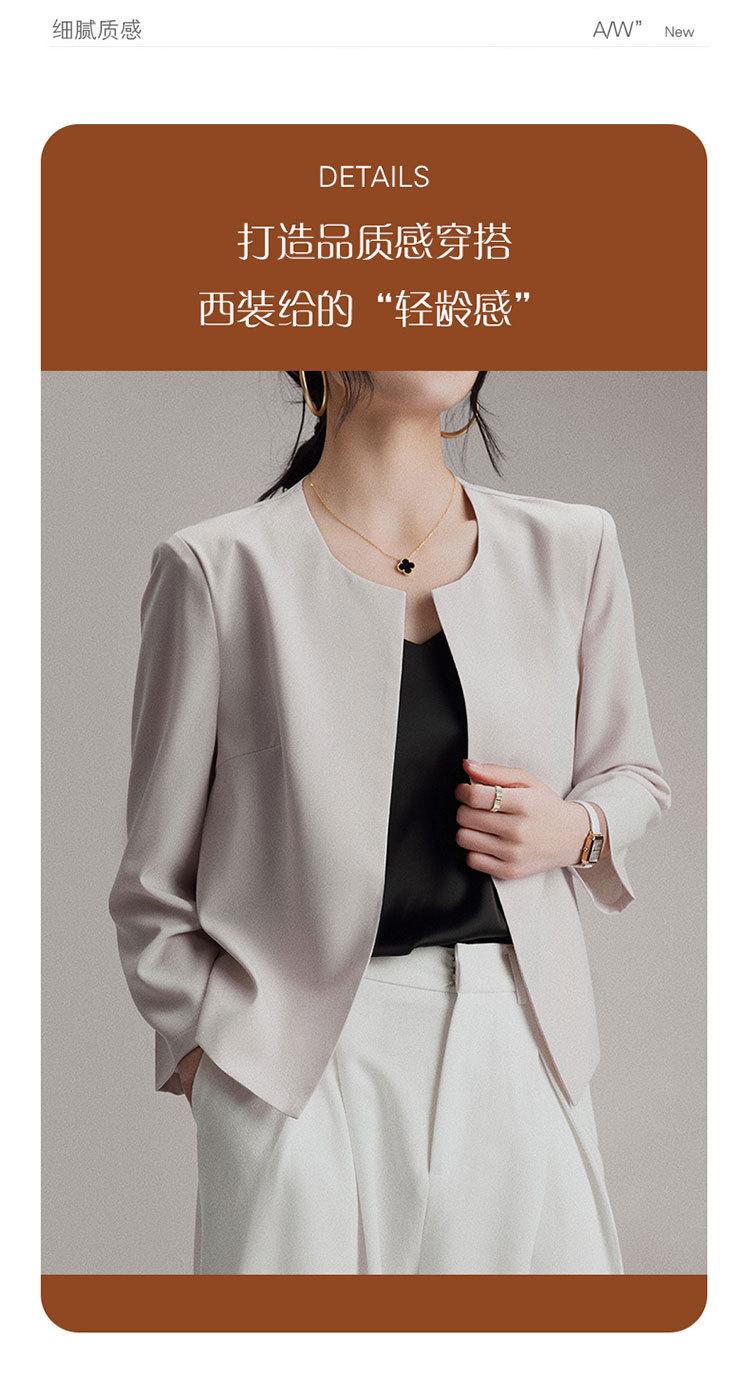 2025 Primavera y Verano Nuevo Traje Pequeño de Color Sólido con Cuello Redondo de Manga Larga para Mujer Color Sólido Suelto Combinable Chaqueta Top sin Hebilla
