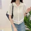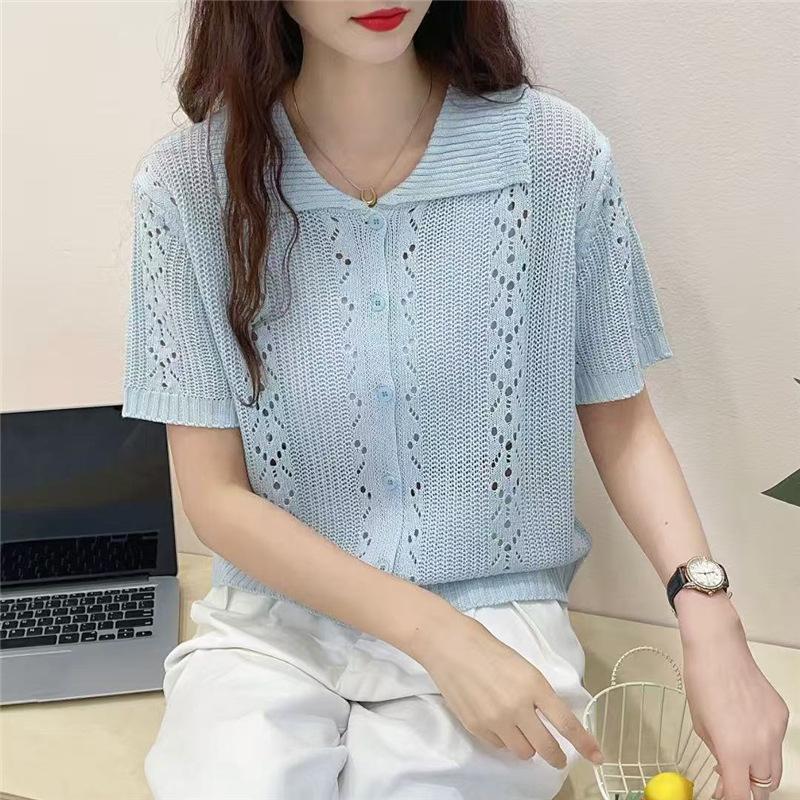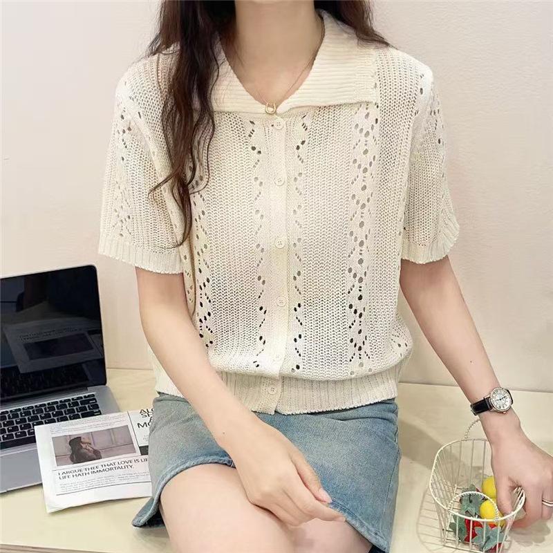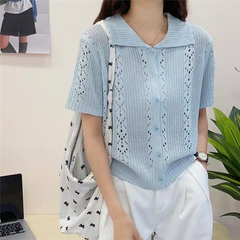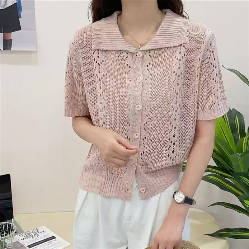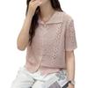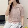 Cárdigan de punto de manga corta con solapa estilo coreano para mujer, fino de verano, nuevo, combinable con todo, corte ajustado, corto, color sólido, camiseta top