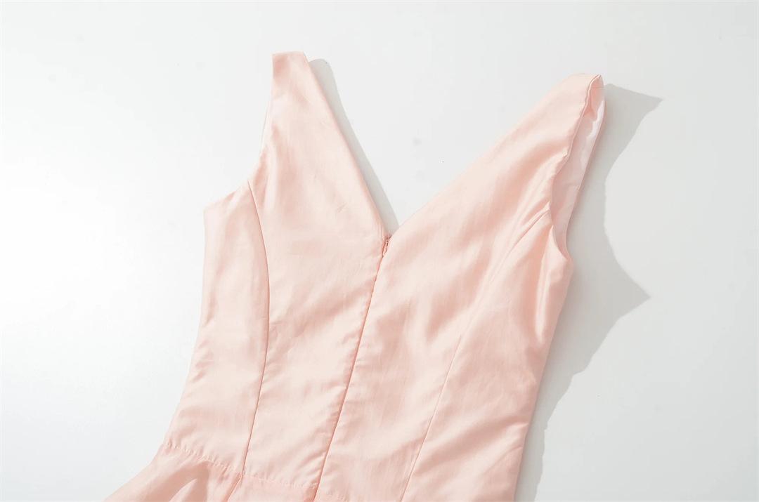 Vestido Chaleco sin Mangas con Cuello en V Profundo Estilo Francés para Mujer, Cintura Ajustada, Vacaciones en la Playa, Vestido Acampanado de Largo Medio