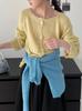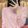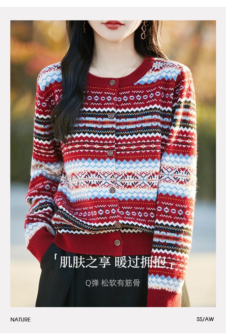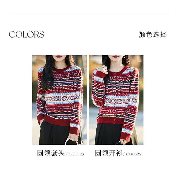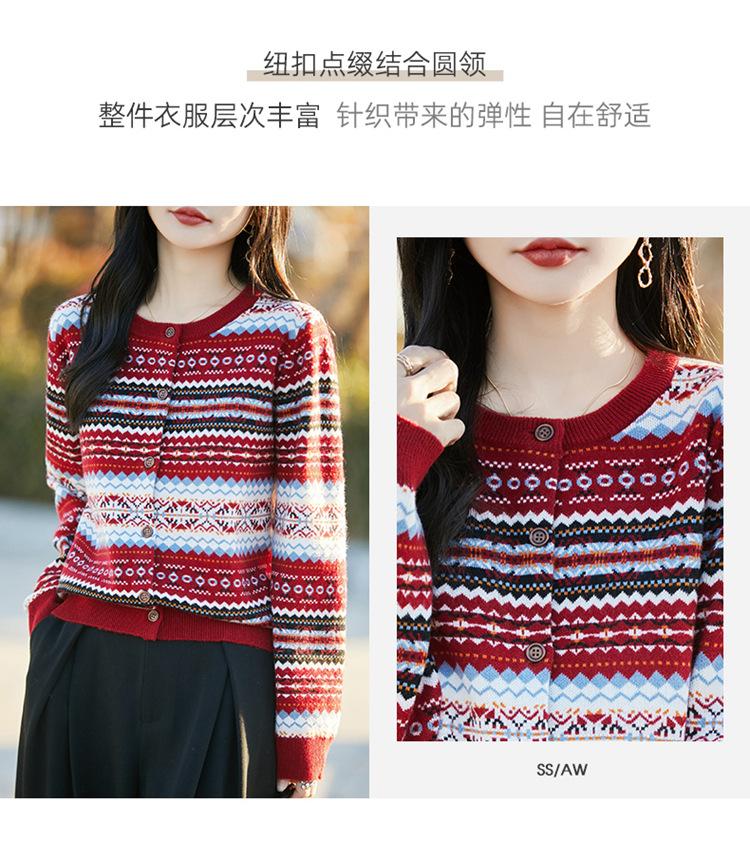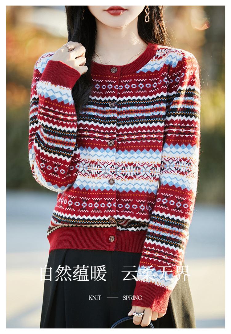 Cárdigan de Lana Tejida a Rayas de Color Contraste para Primavera para Mujer Cuello Redondo Combinable Suelto de Gama Alta Chaqueta Suéter Slim