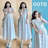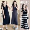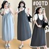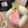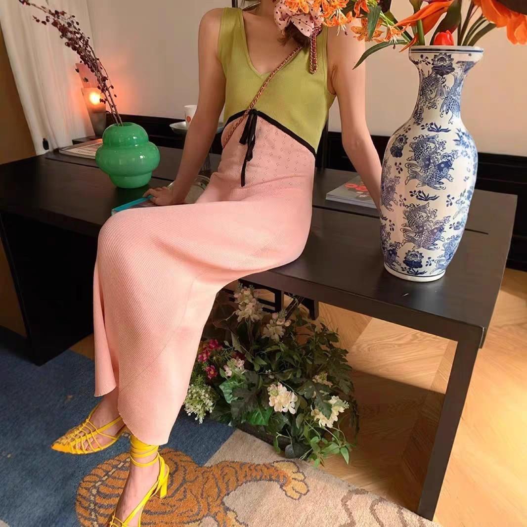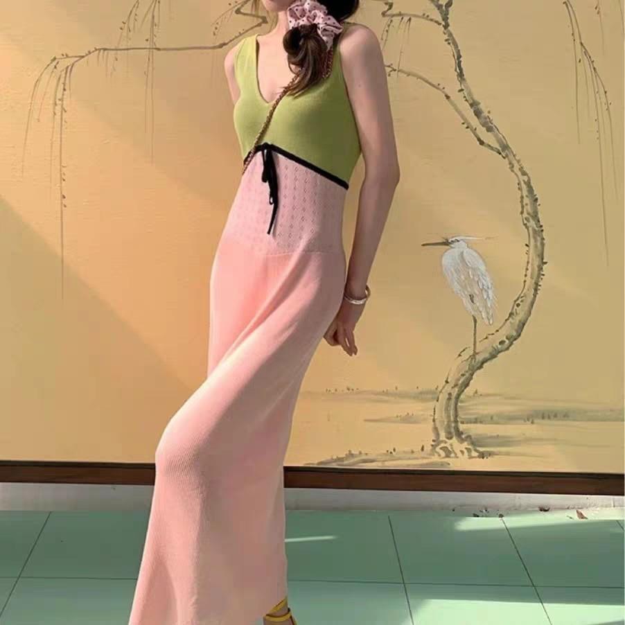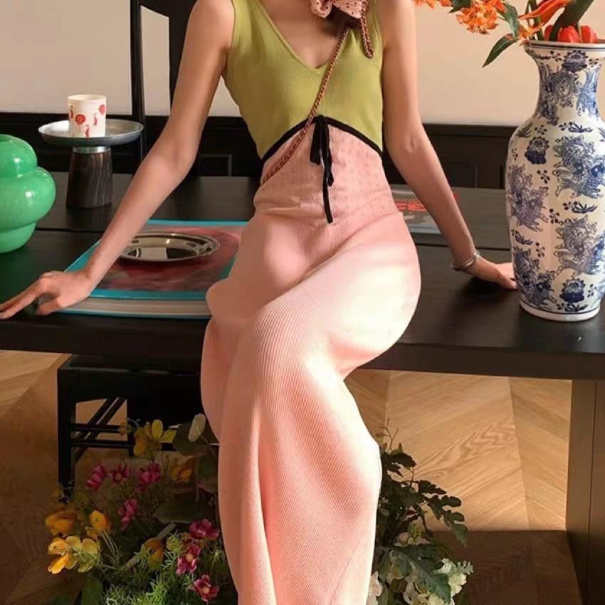 Ropa de Maternidad Diseño Francés Empalme Vestido de Color Contrastante 2025 Verano Look Adelgazante Sexy Vestido Chaleco con Cuello en V