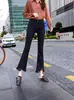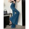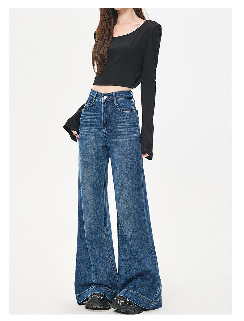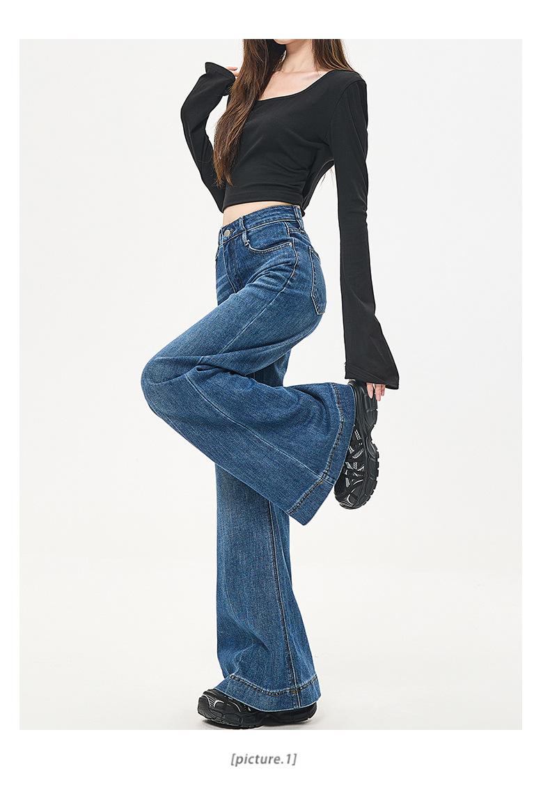 Cuerpo en forma de pera jeans acampanados de pierna ancha nuevo otoño 2025 cintura alta adelgazantes no ajustados pantalones de mezclilla micro acampanados mujer