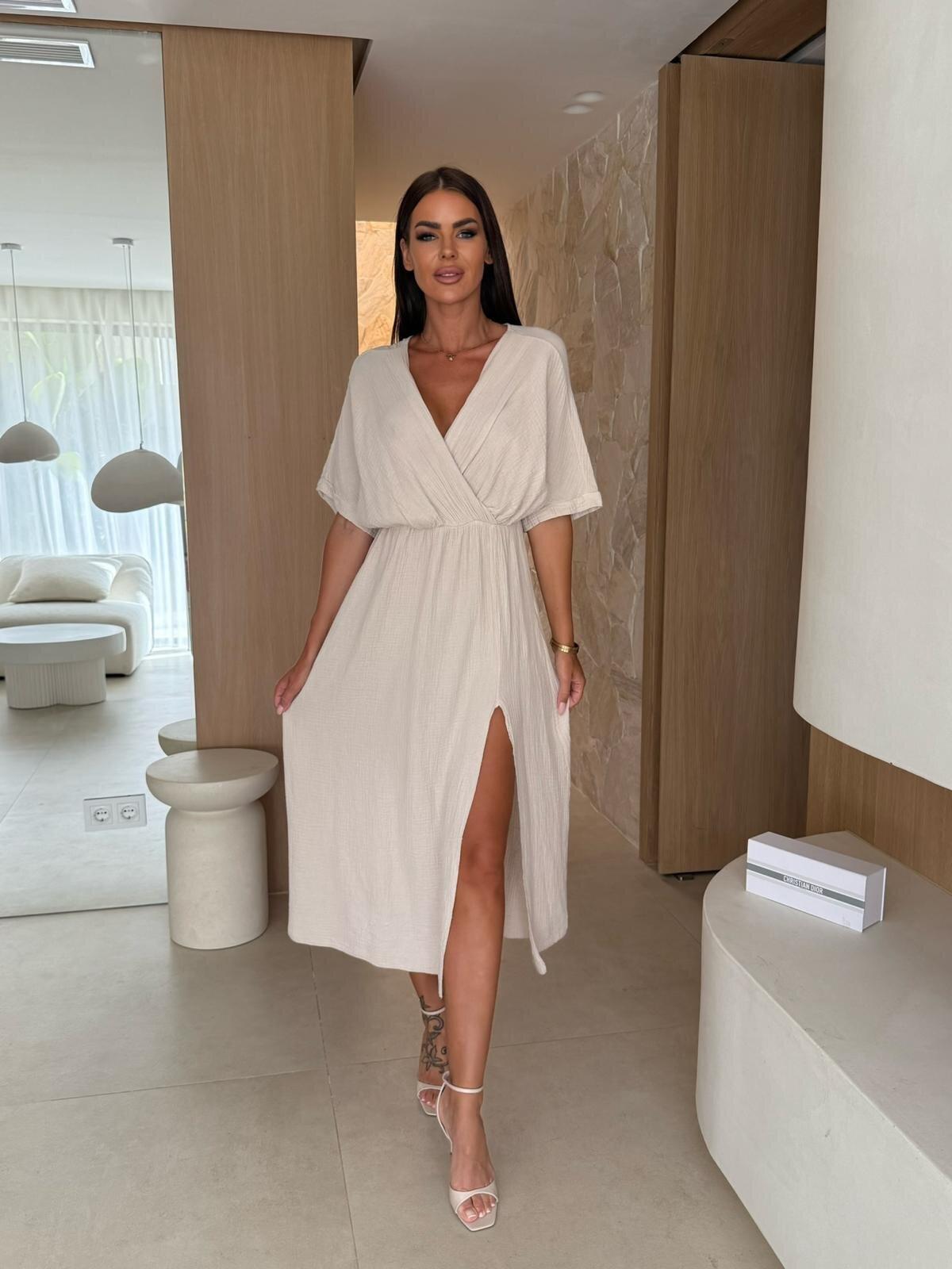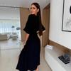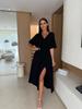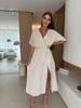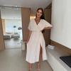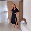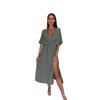 2025 Europa y Estados Unidos transfronterizo Amazon nuevo verano color sólido cuello V cintura elástica adelgazante vestido con abertura mujeres
