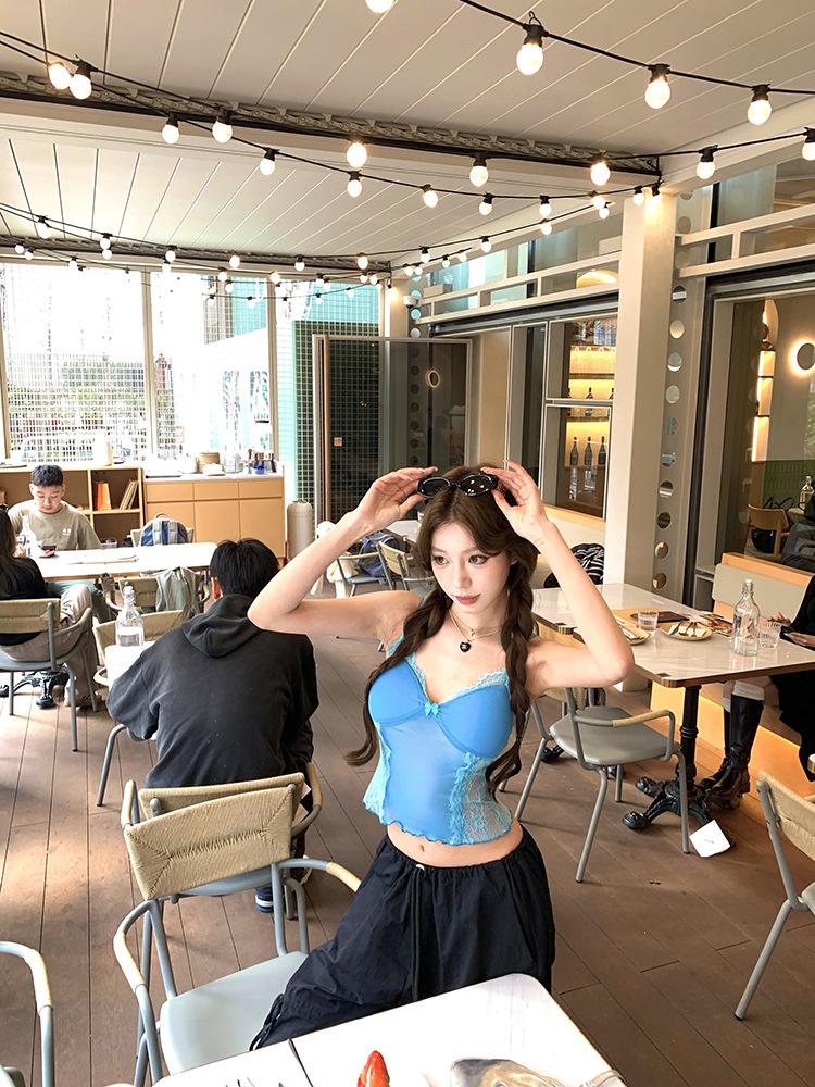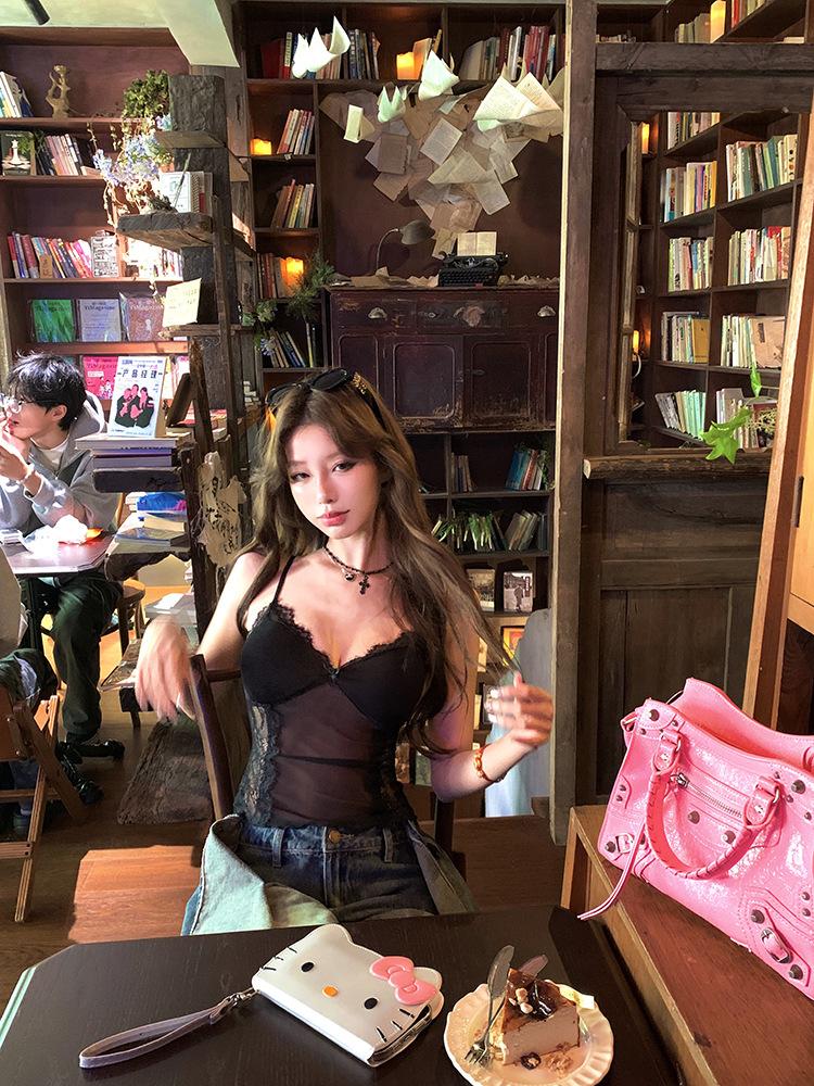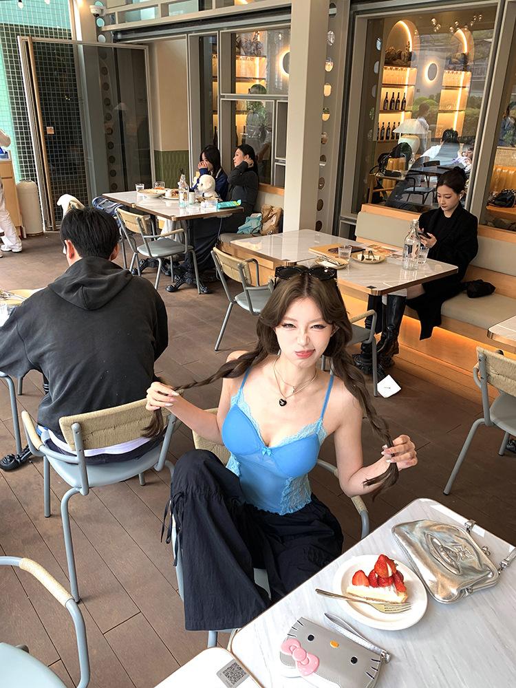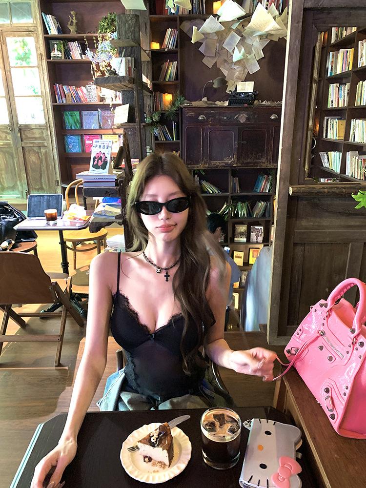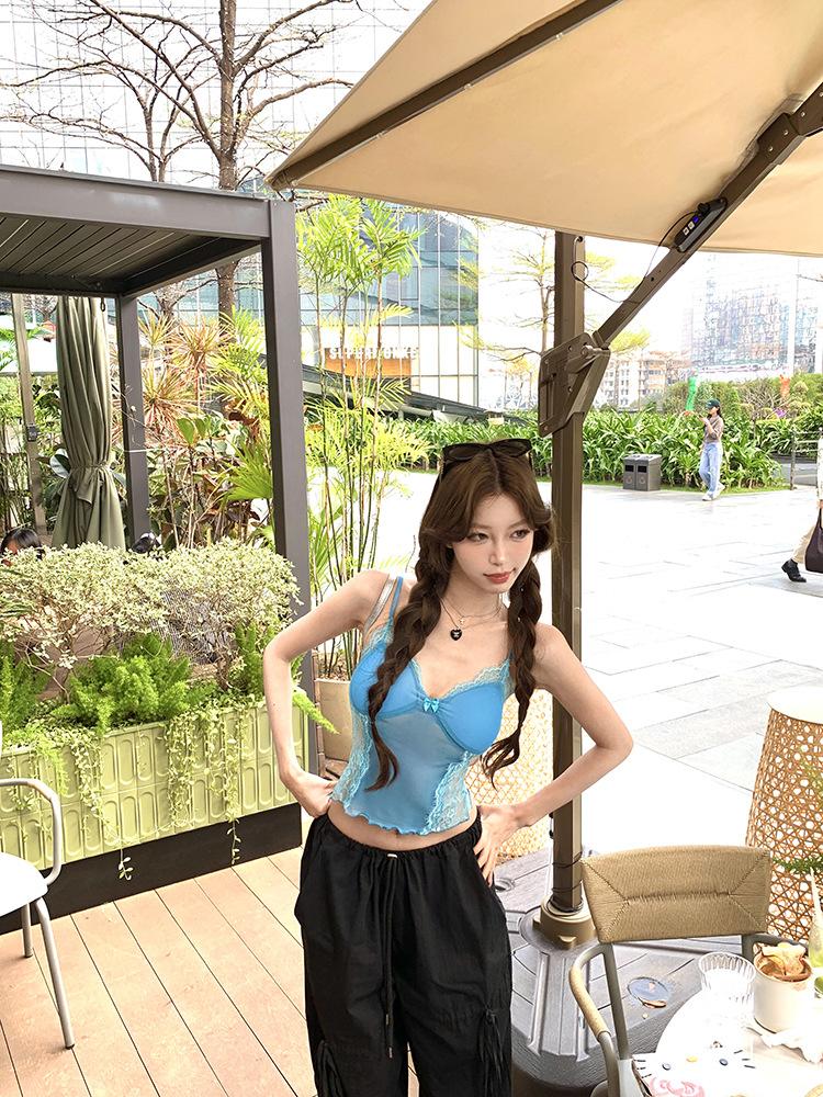 Camisola de Encaje Pure Spice Girls para Mujer Verano 2025 Nuevo Sexy Lazo Corto Ajustado Top Interior