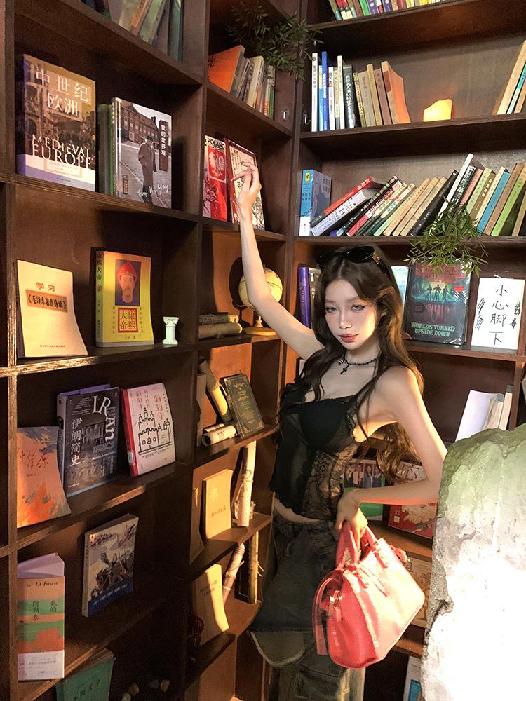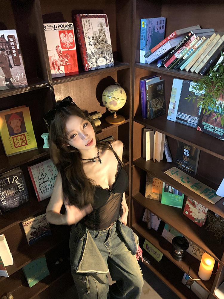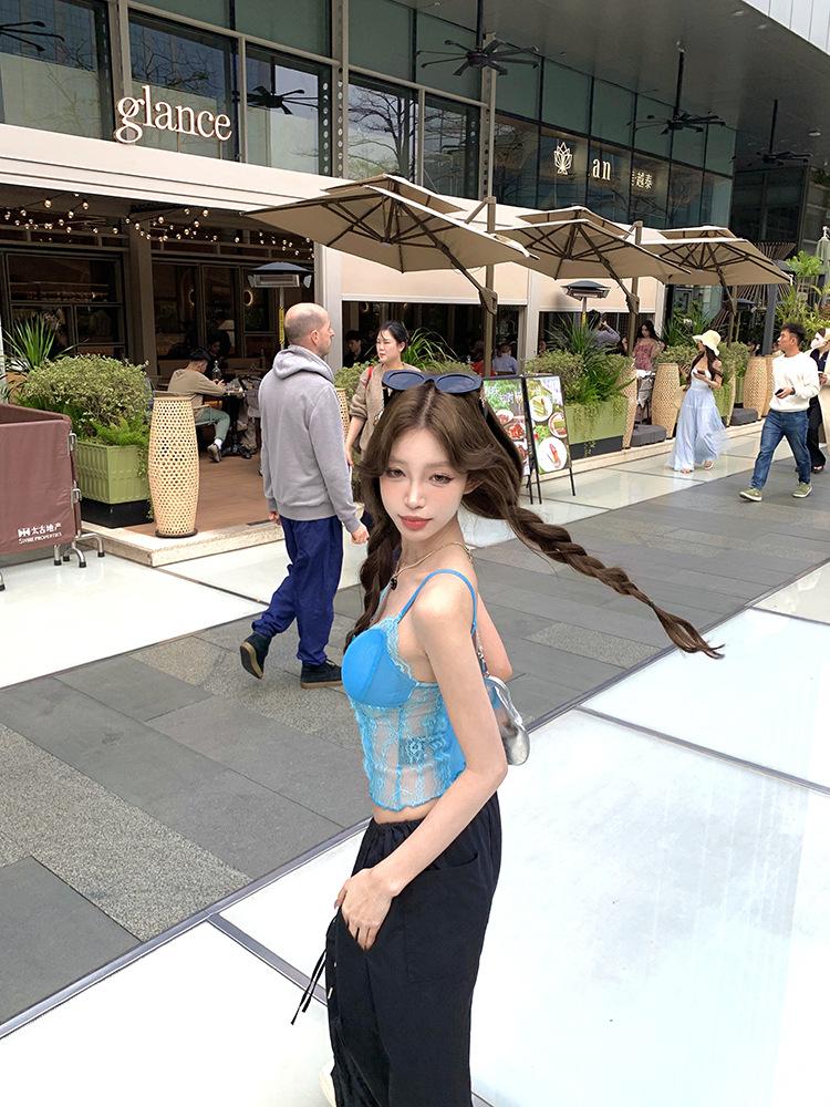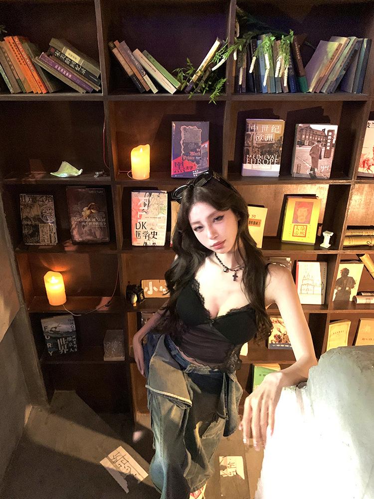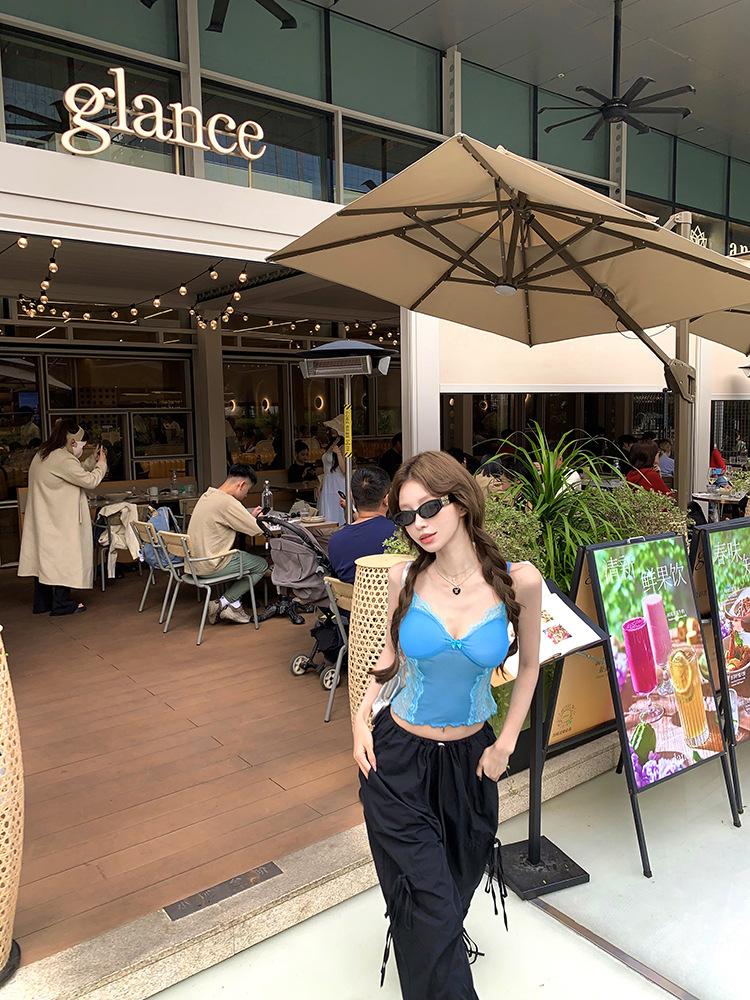 Camisola de Encaje Pure Spice Girls para Mujer Verano 2025 Nuevo Sexy Lazo Corto Ajustado Top Interior