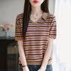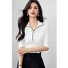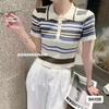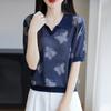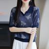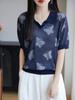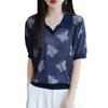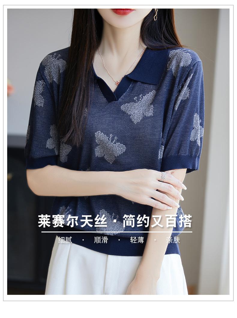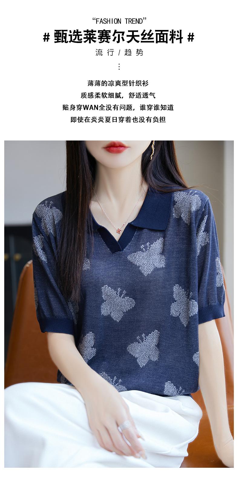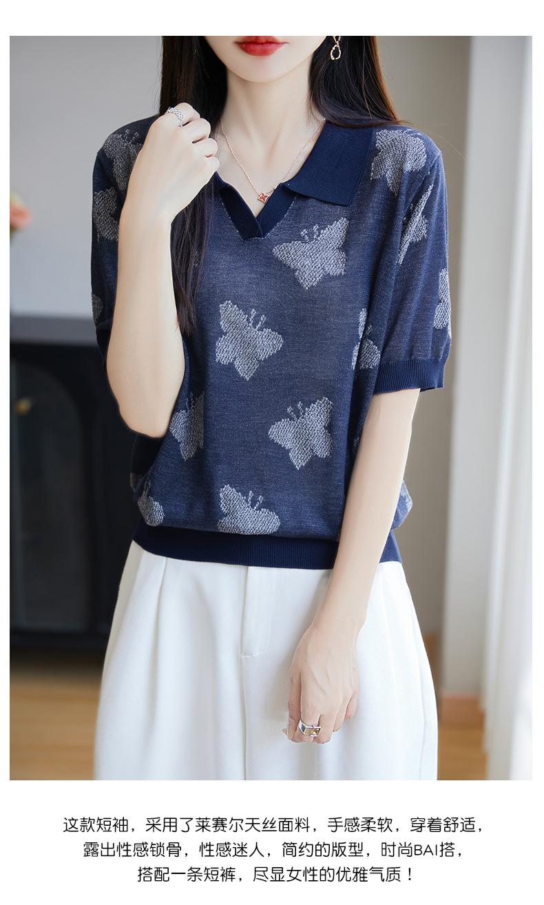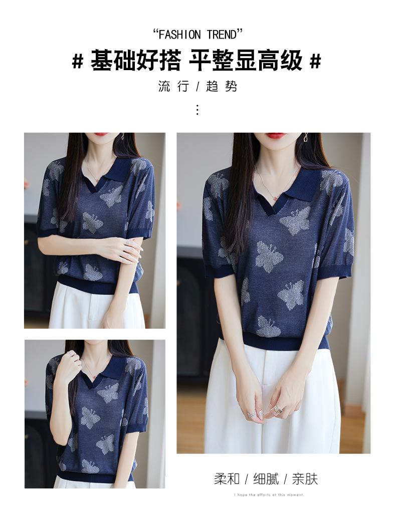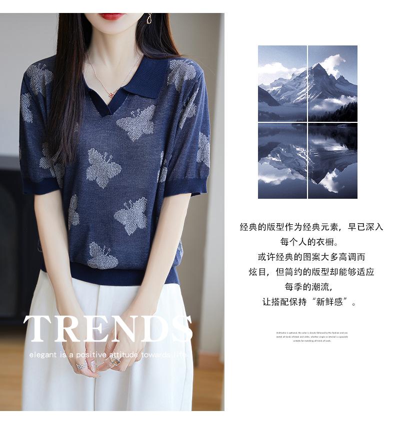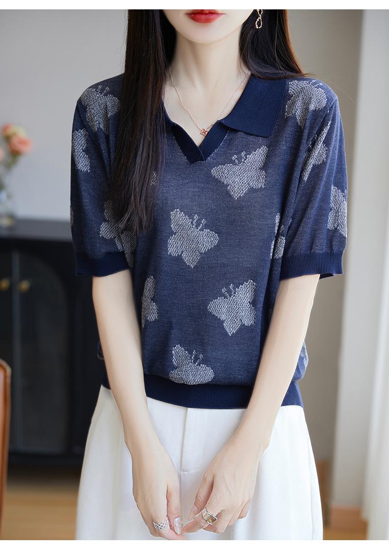 2025 Nuevo Verano Solapa Jacquard Mariposa Manga Corta Punto Camiseta Top Delgado Versátil Transpirable para Mujer