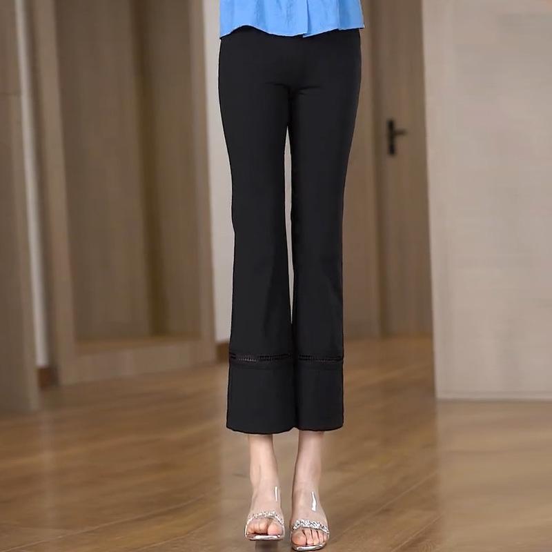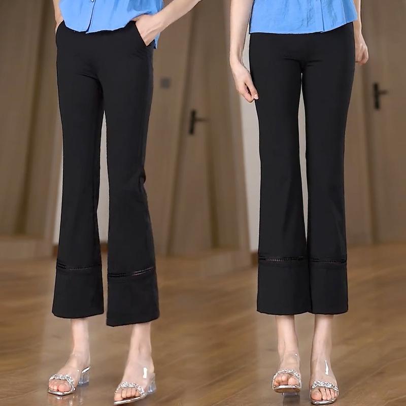 Pantalones Casuales Acampanados de Seda de Hielo a la Moda para Mujer 2025 Verano Nuevo Diseño Elegante Slim de Cintura Alta Pantalones Acampanados Delgados