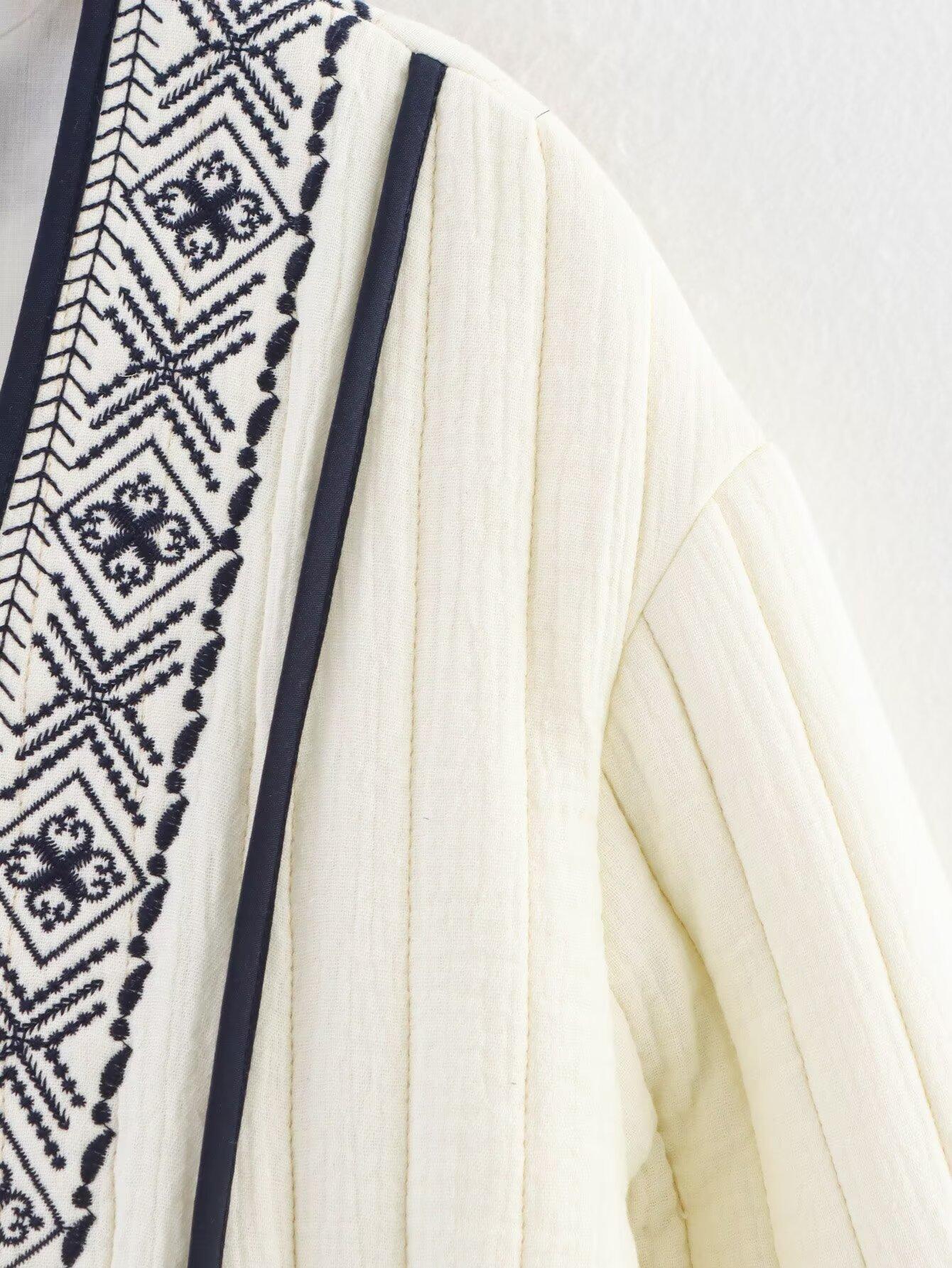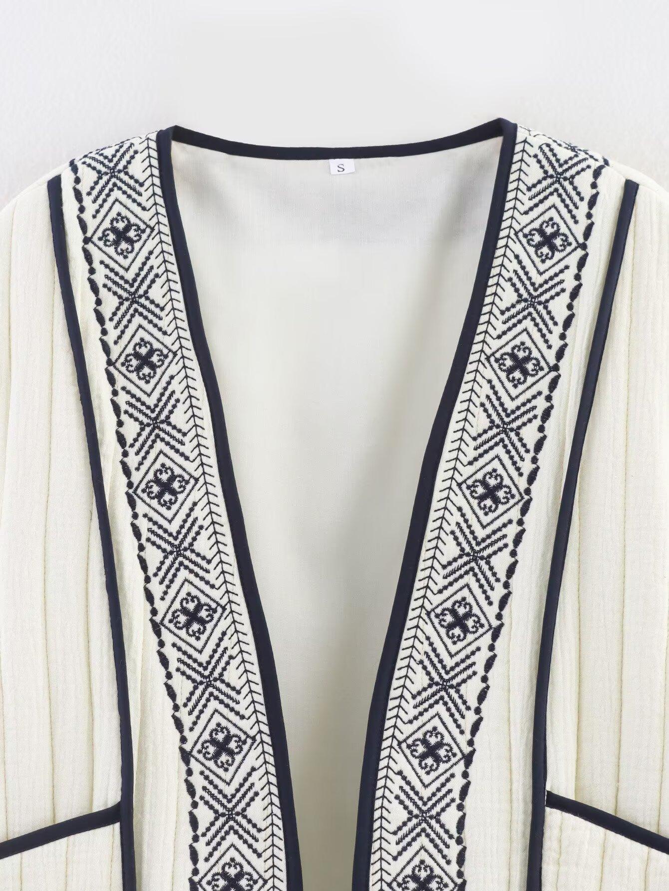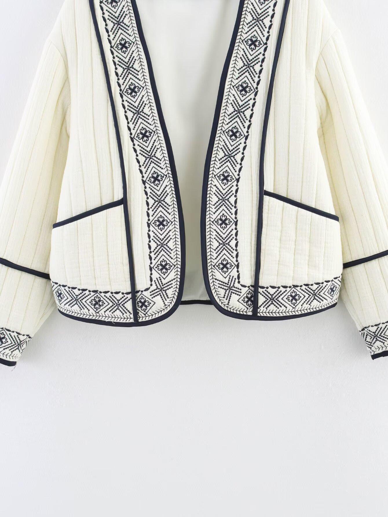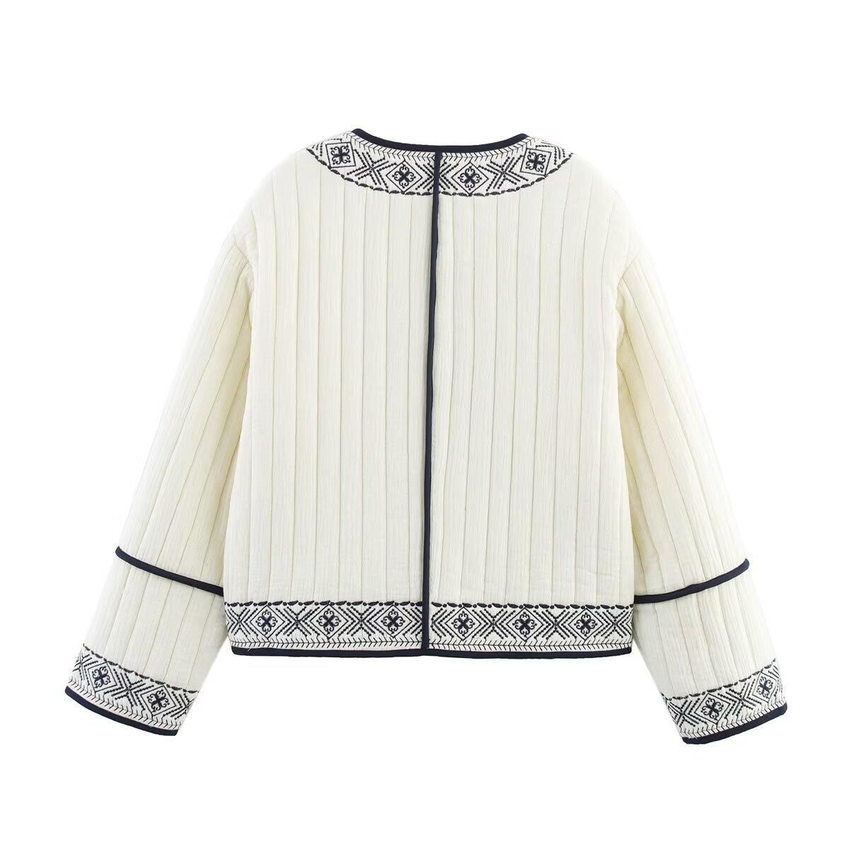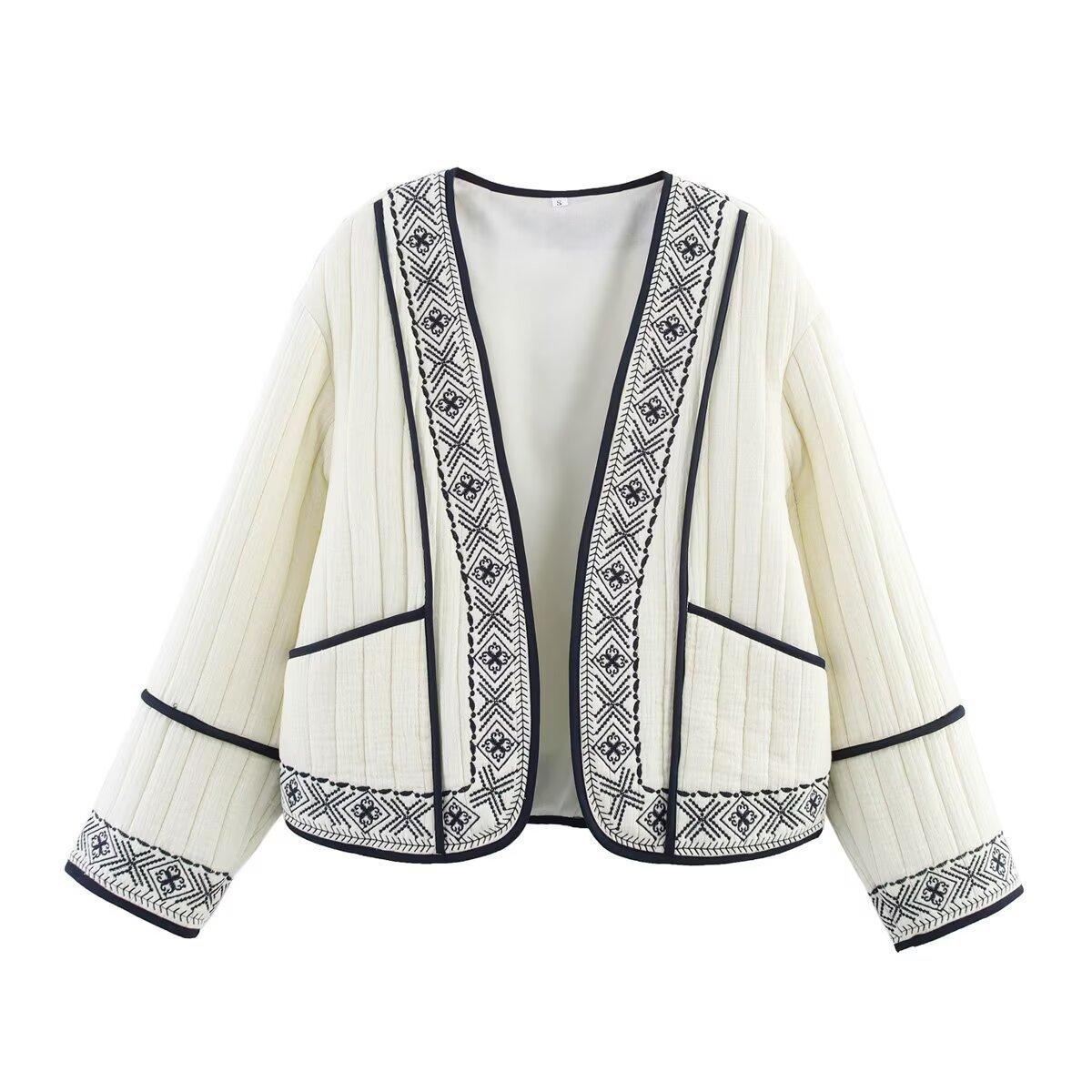 Cárdigan de Moda de Estilo Caliente Europeo y Americano Amazon AliExpress Versátil Socialité Bordado Bloque de Color