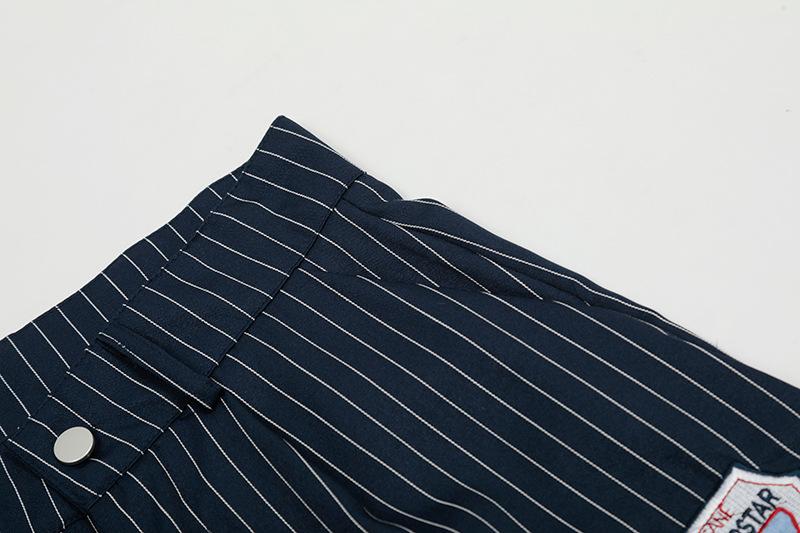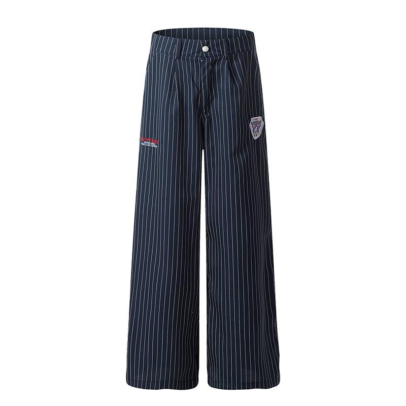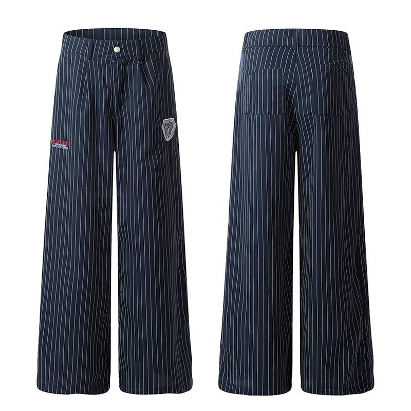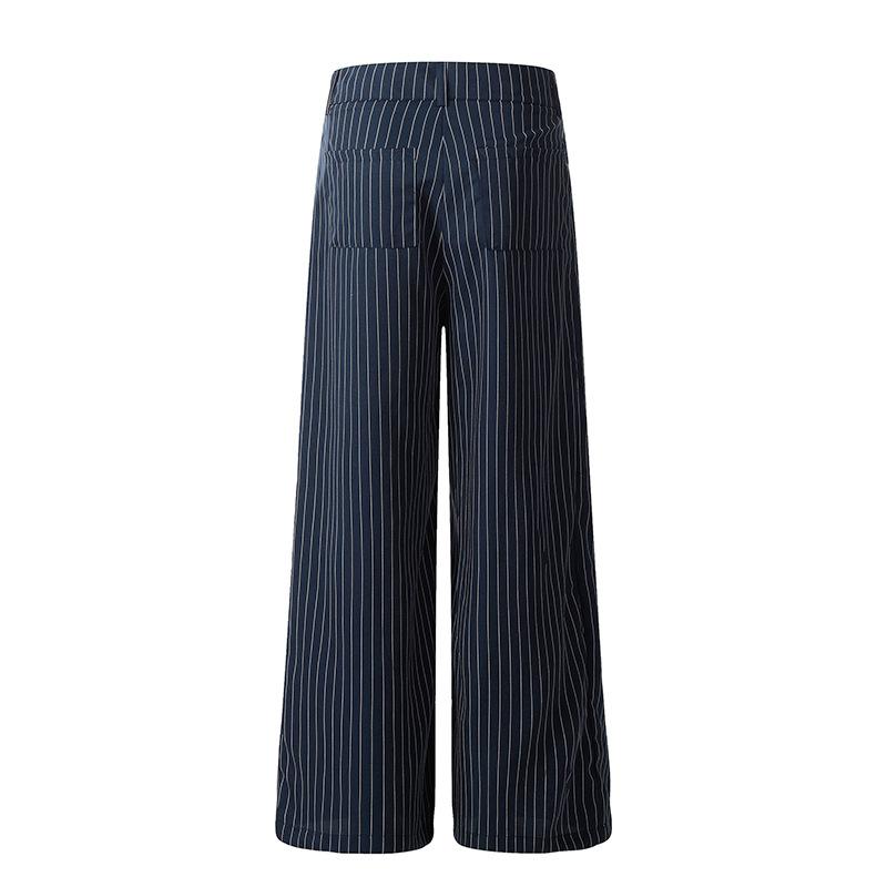 Pantalones casuales a rayas retro americanos nuevos para mujer estilo high street holgados rectos hasta el suelo marca de moda
