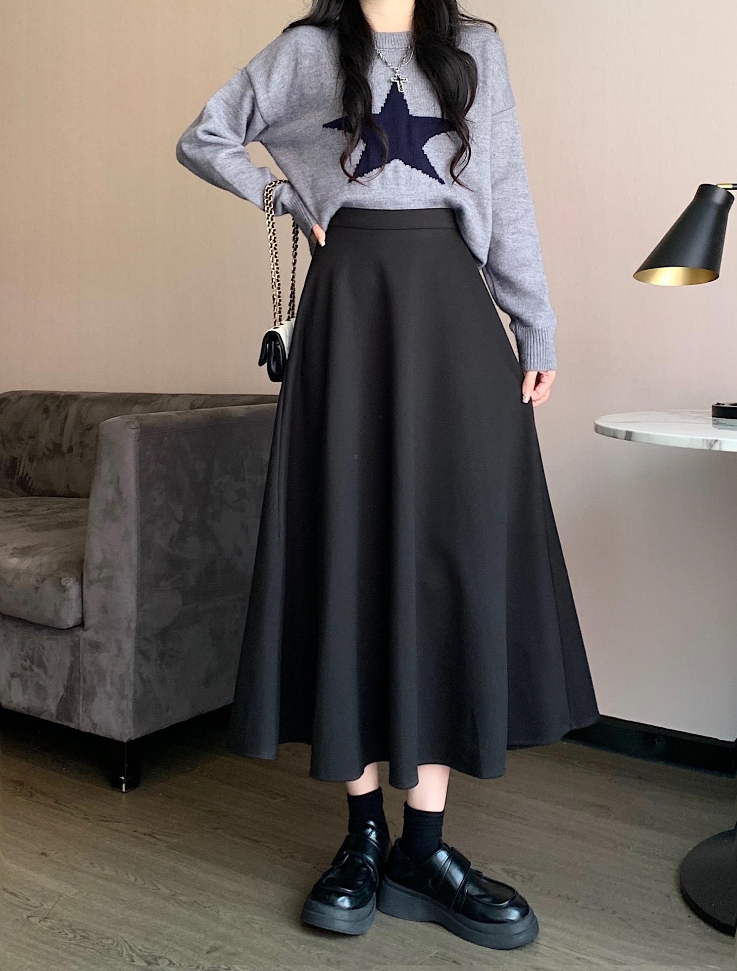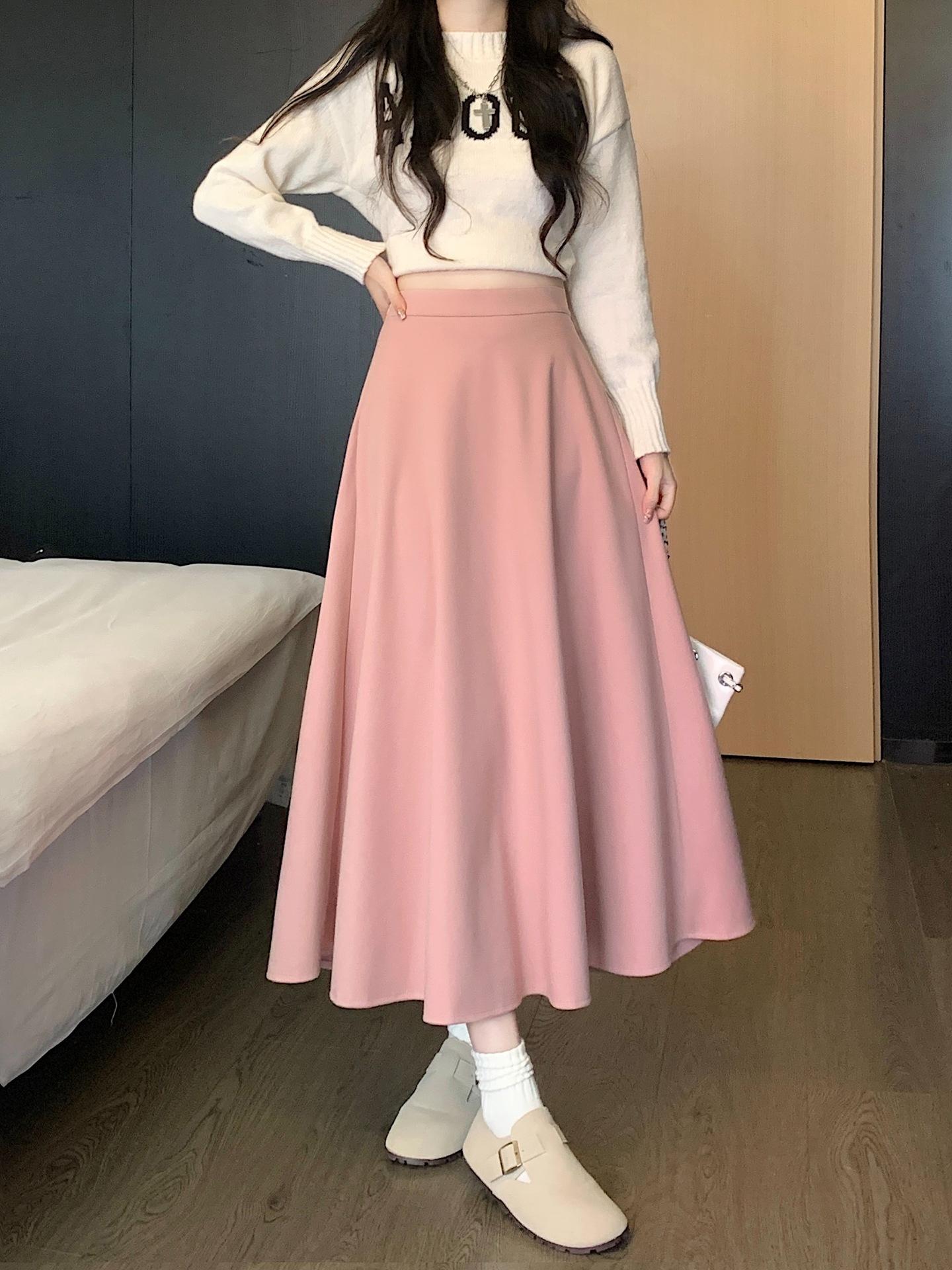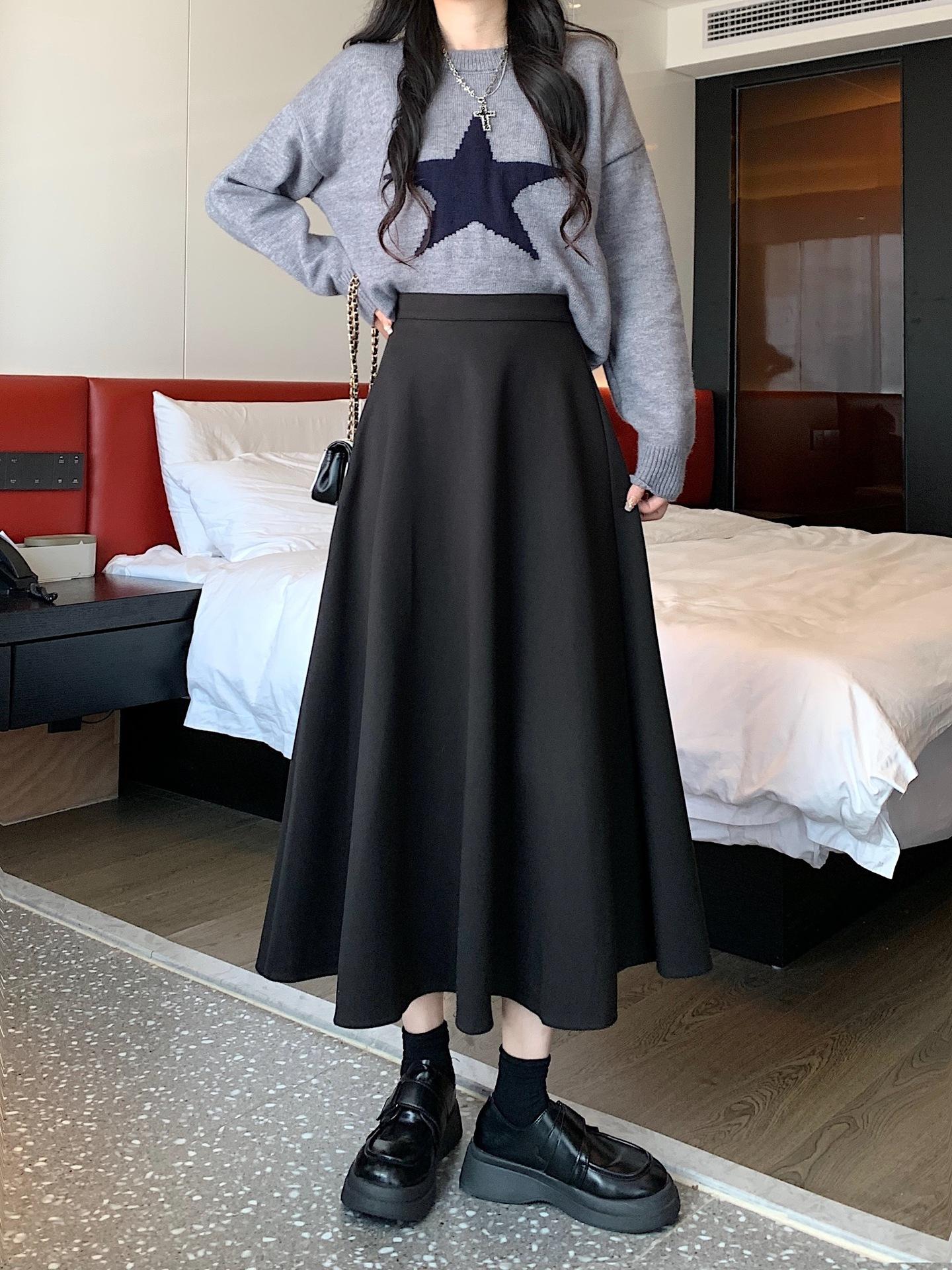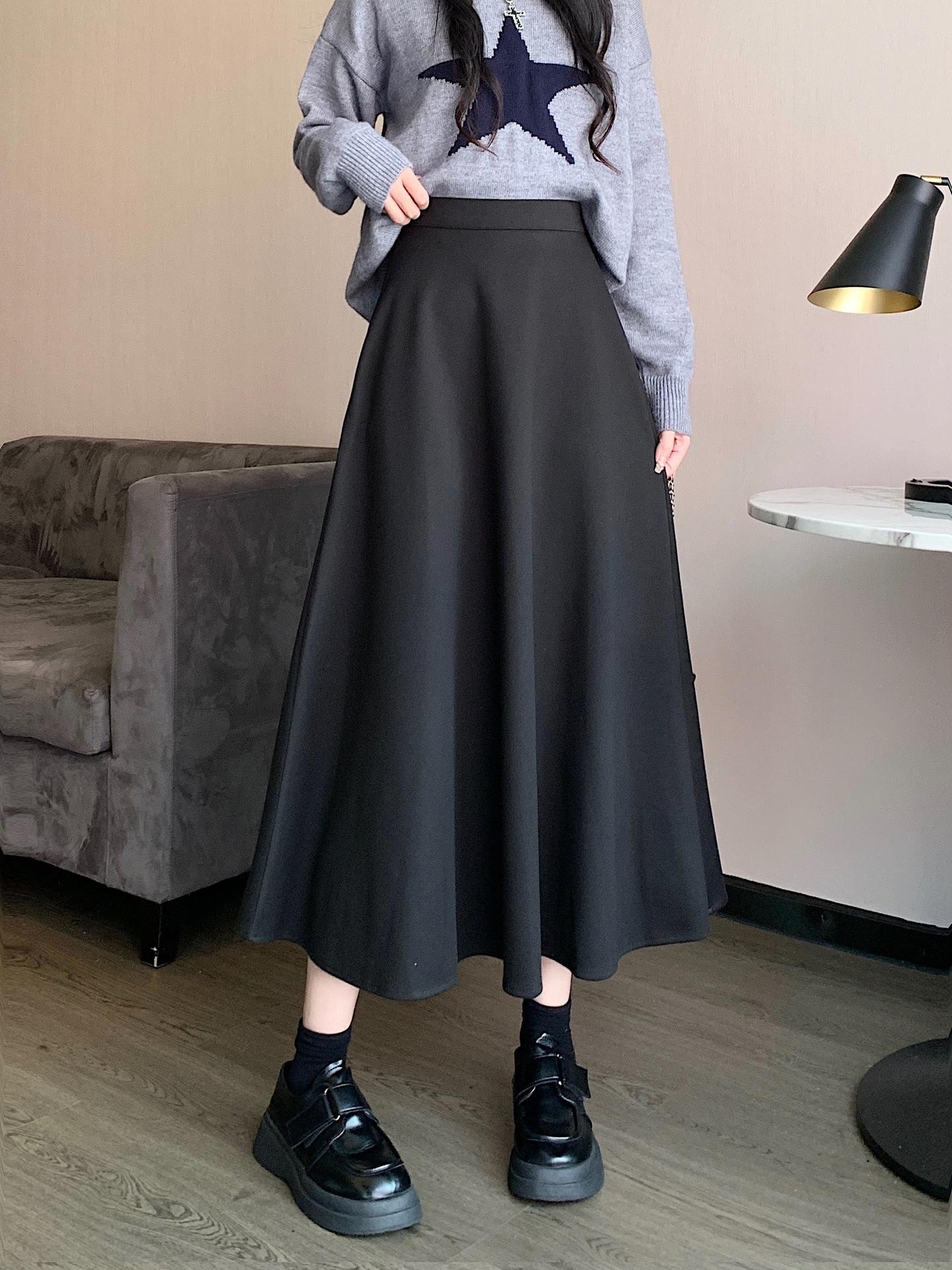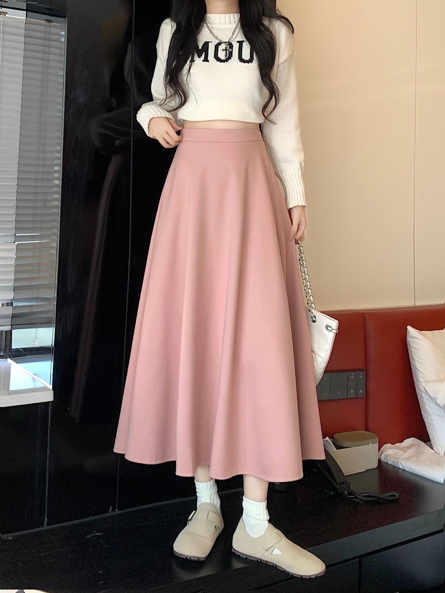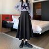 Falda Traje de Medio Cuerpo de Cintura Alta Mujer Otoño e Invierno Nuevo Versátil Adelgazante Falda Paraguas de Vuelo Grande Midi Línea A Falda Plisada
