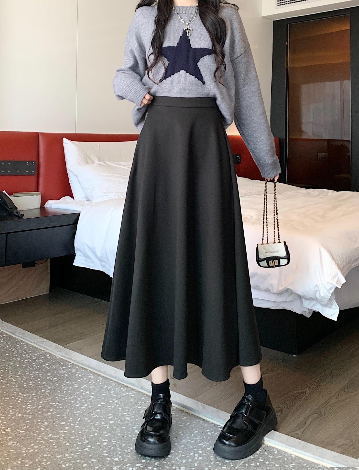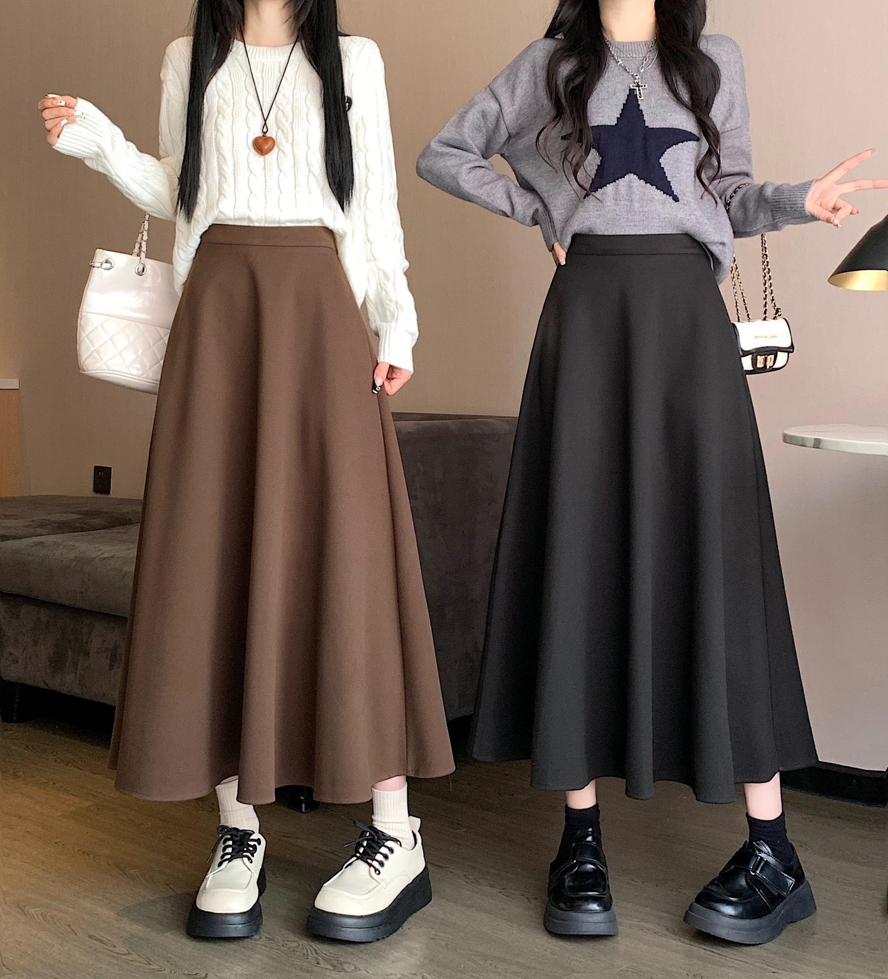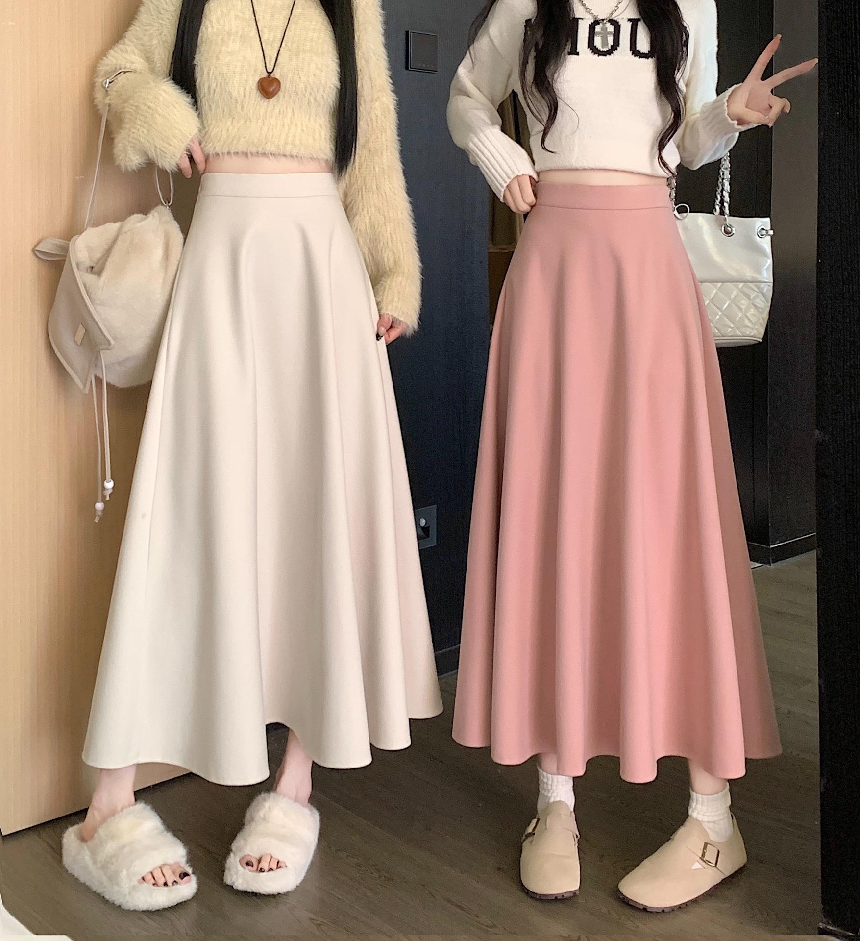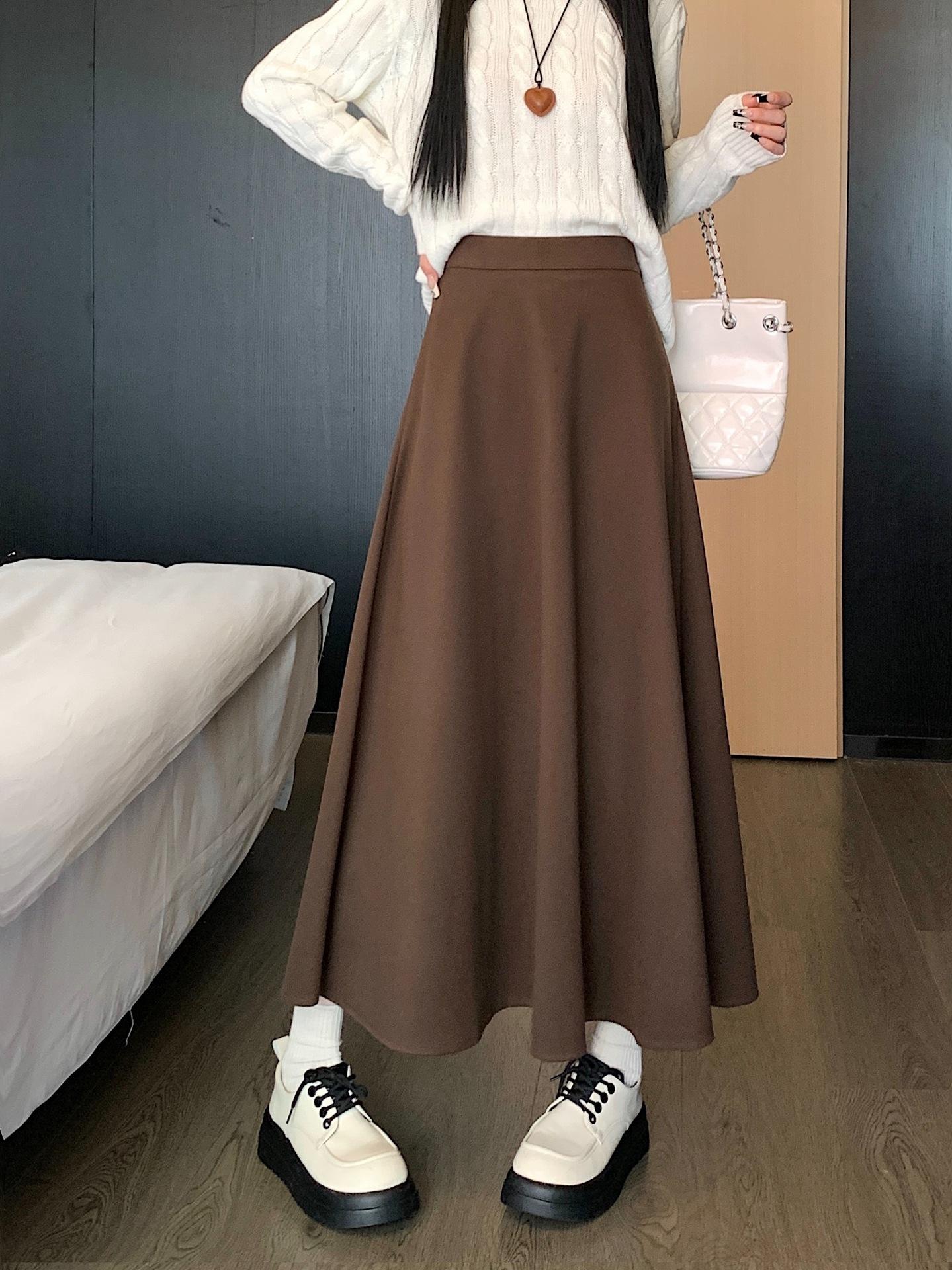Falda Traje de Medio Cuerpo de Cintura Alta Mujer Otoño e Invierno Nuevo Versátil Adelgazante Falda Paraguas de Vuelo Grande Midi Línea A Falda Plisada