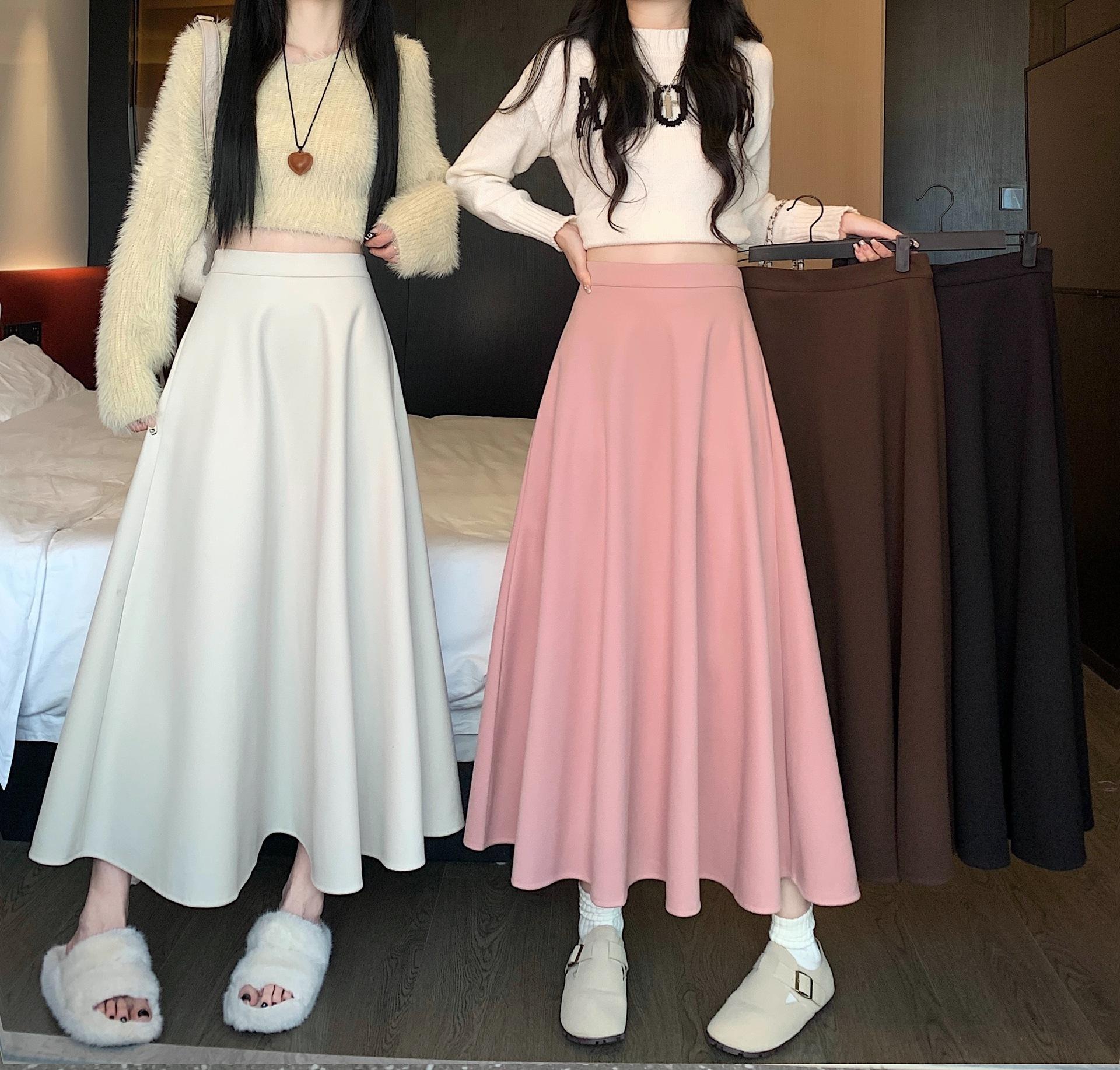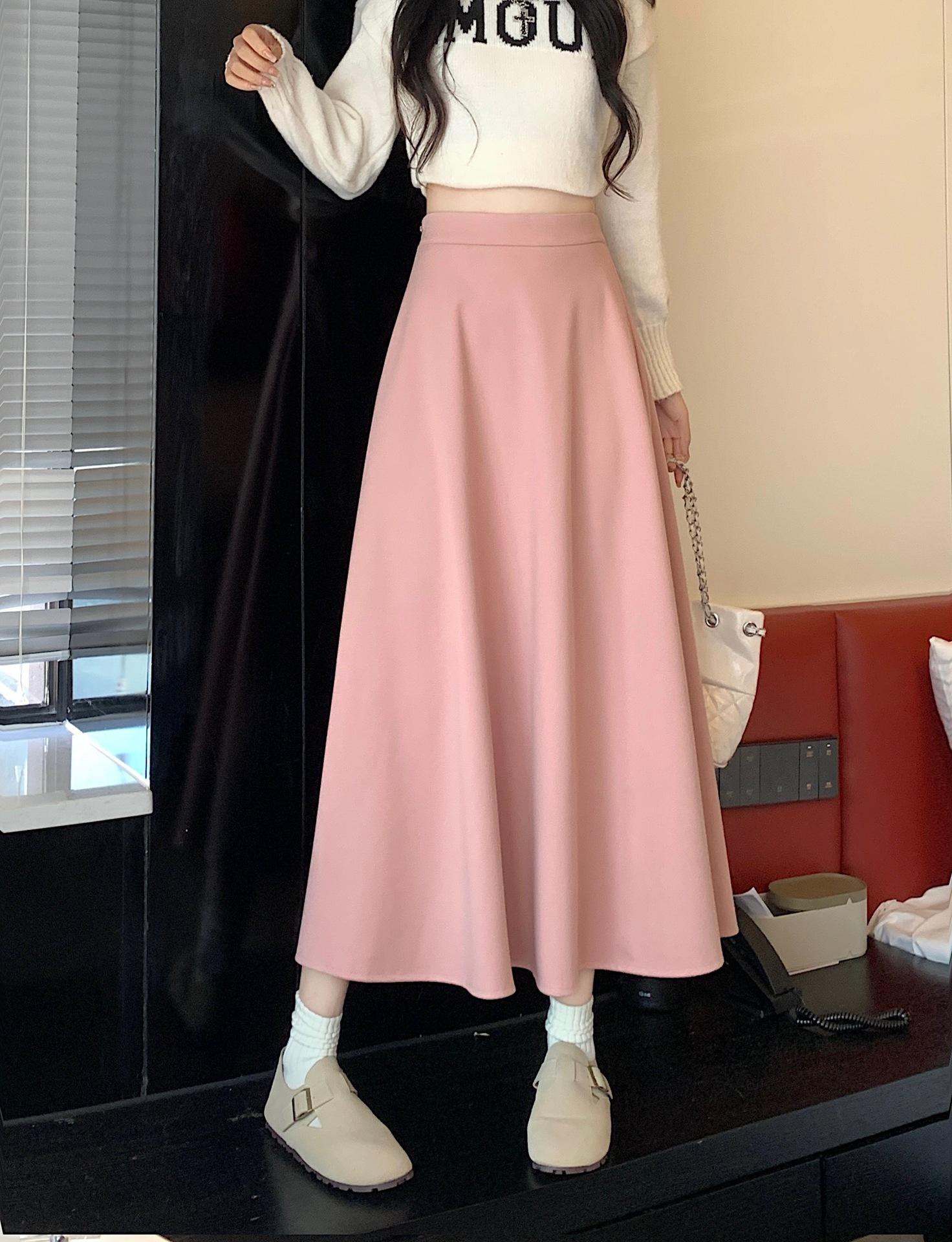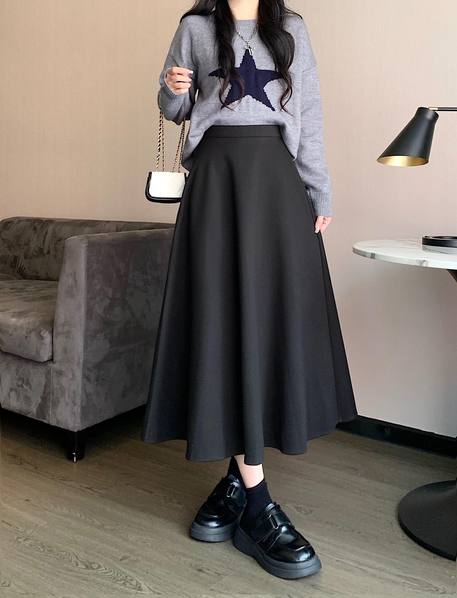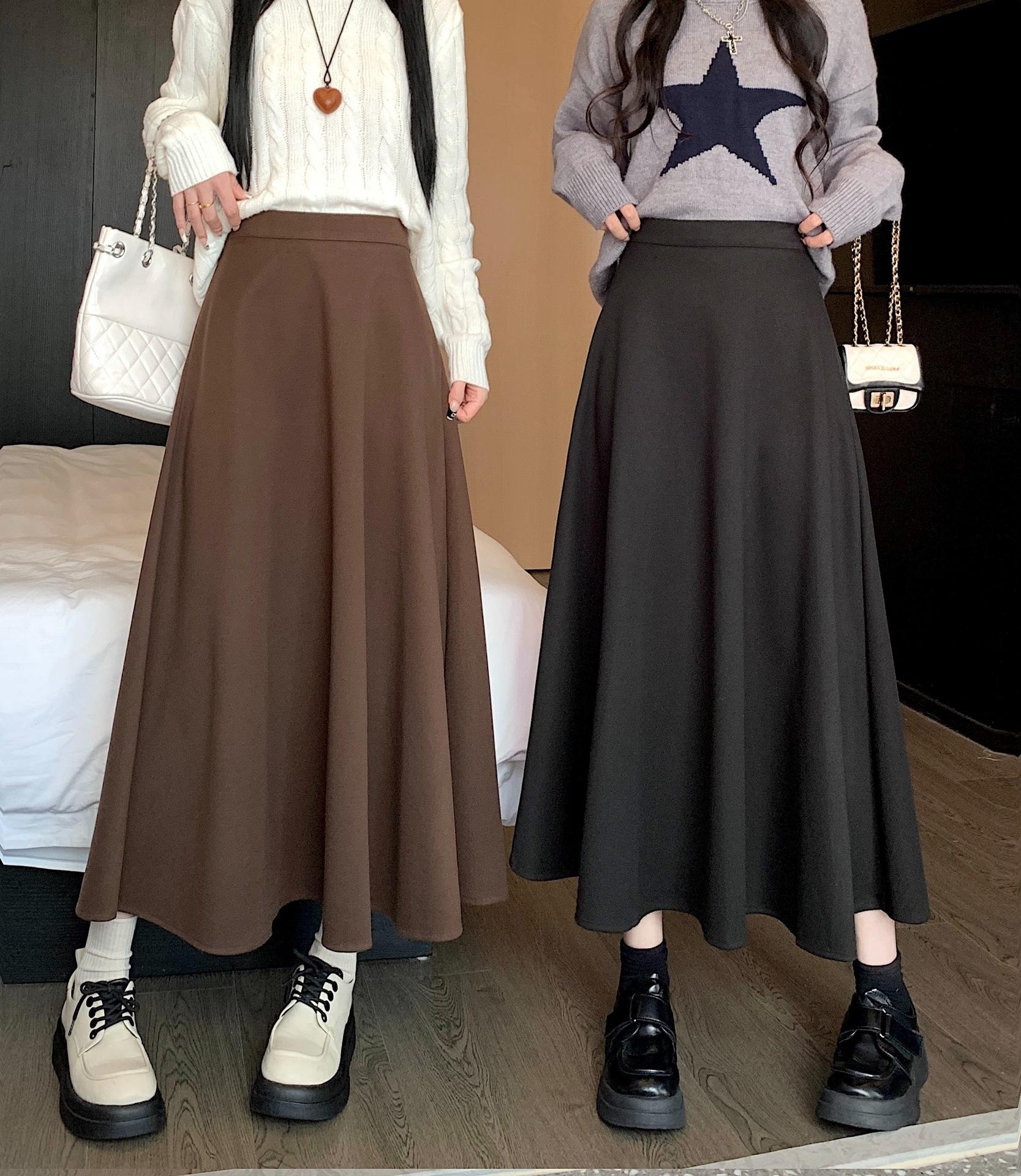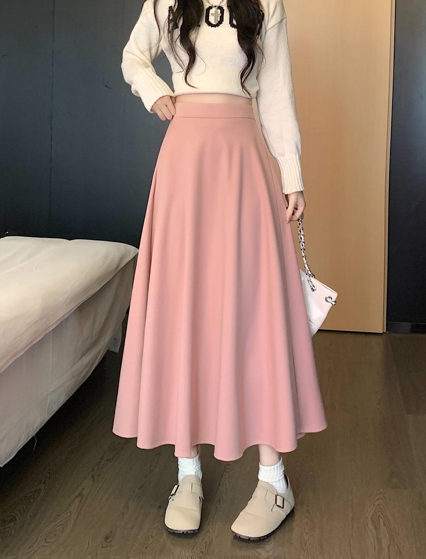 Falda Traje de Medio Cuerpo de Cintura Alta Mujer Otoño e Invierno Nuevo Versátil Adelgazante Falda Paraguas de Vuelo Grande Midi Línea A Falda Plisada