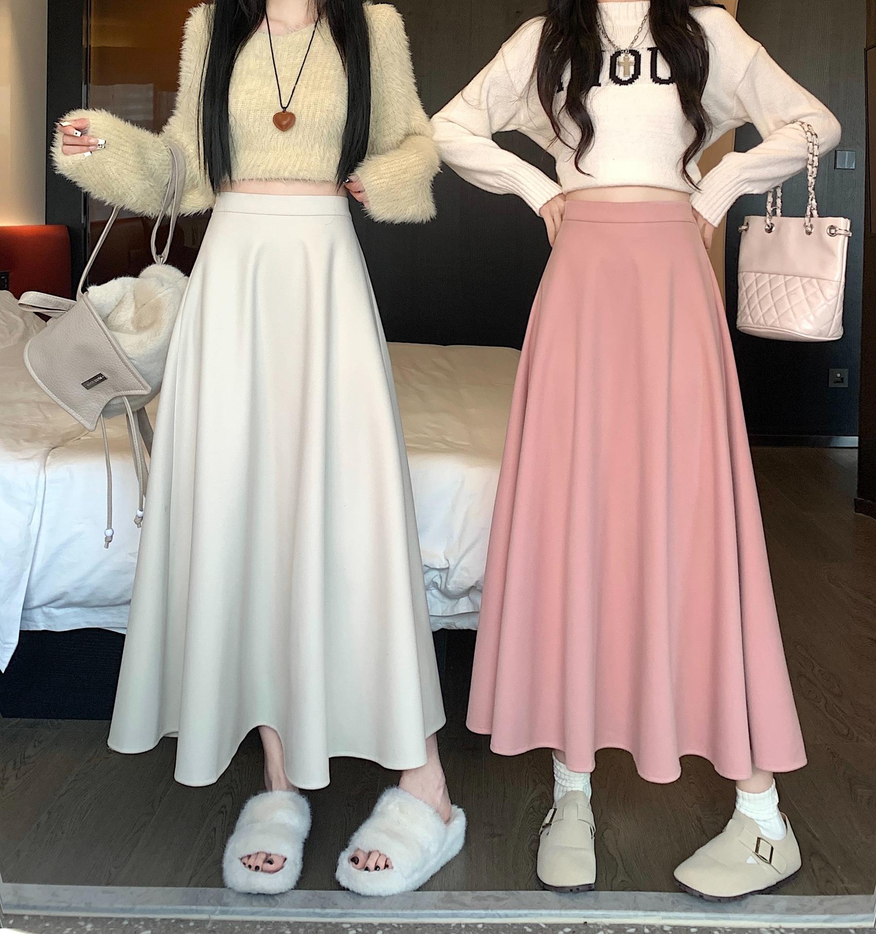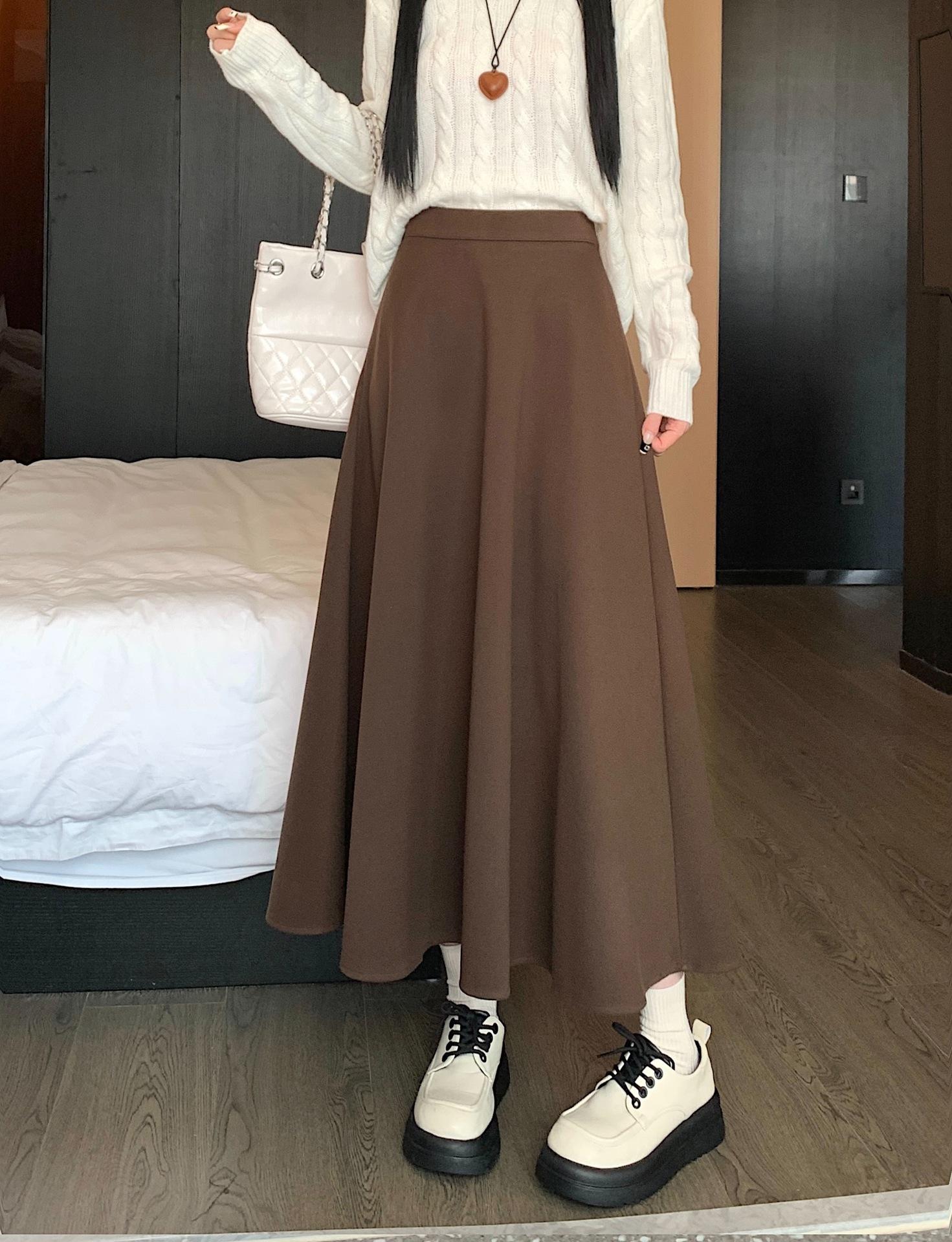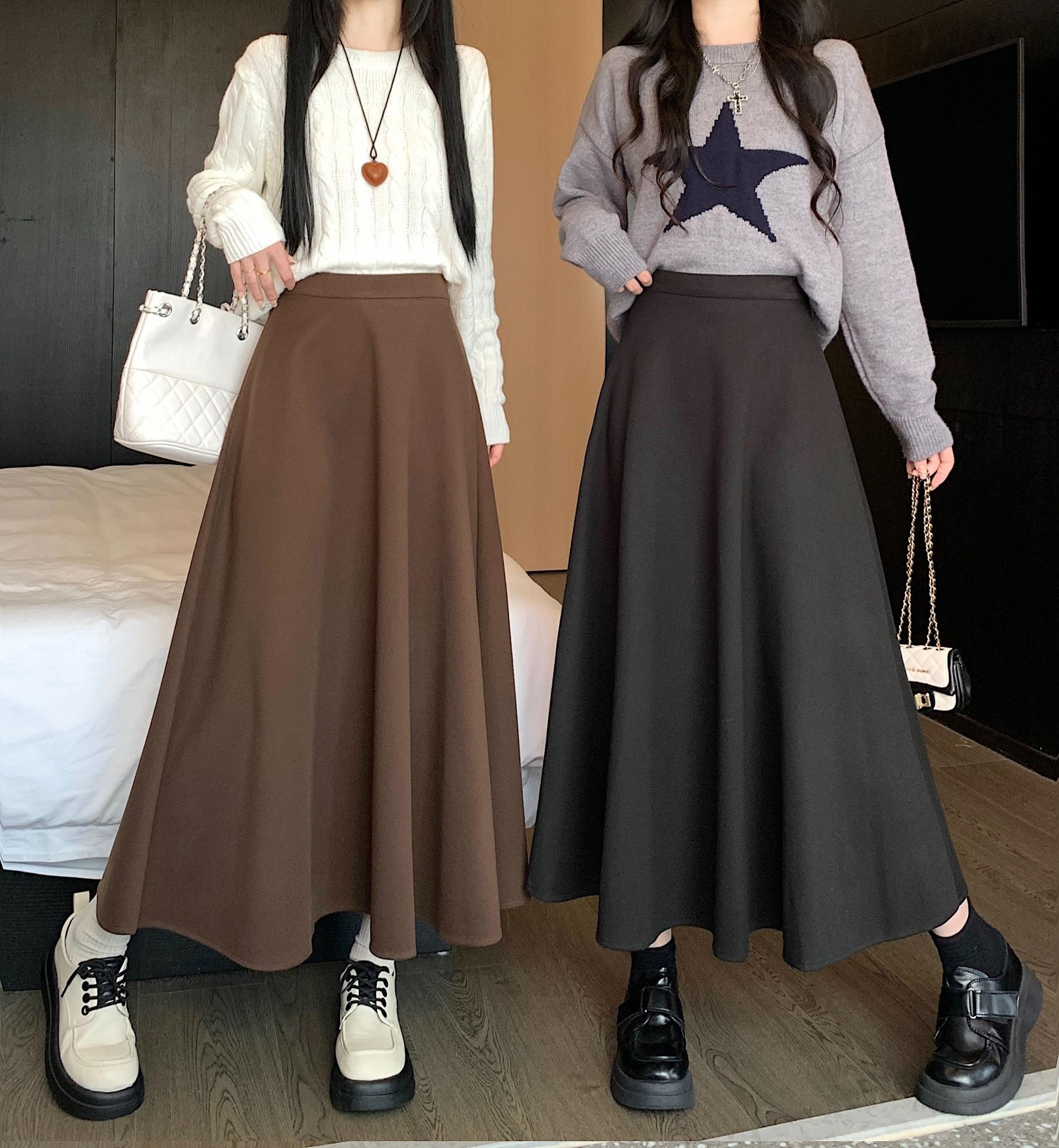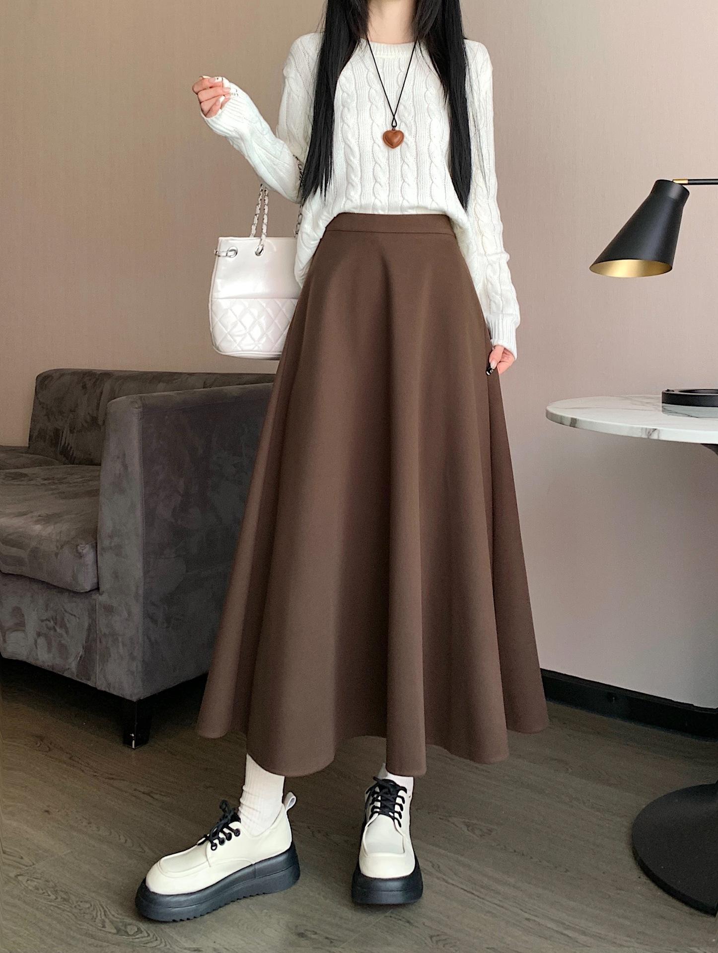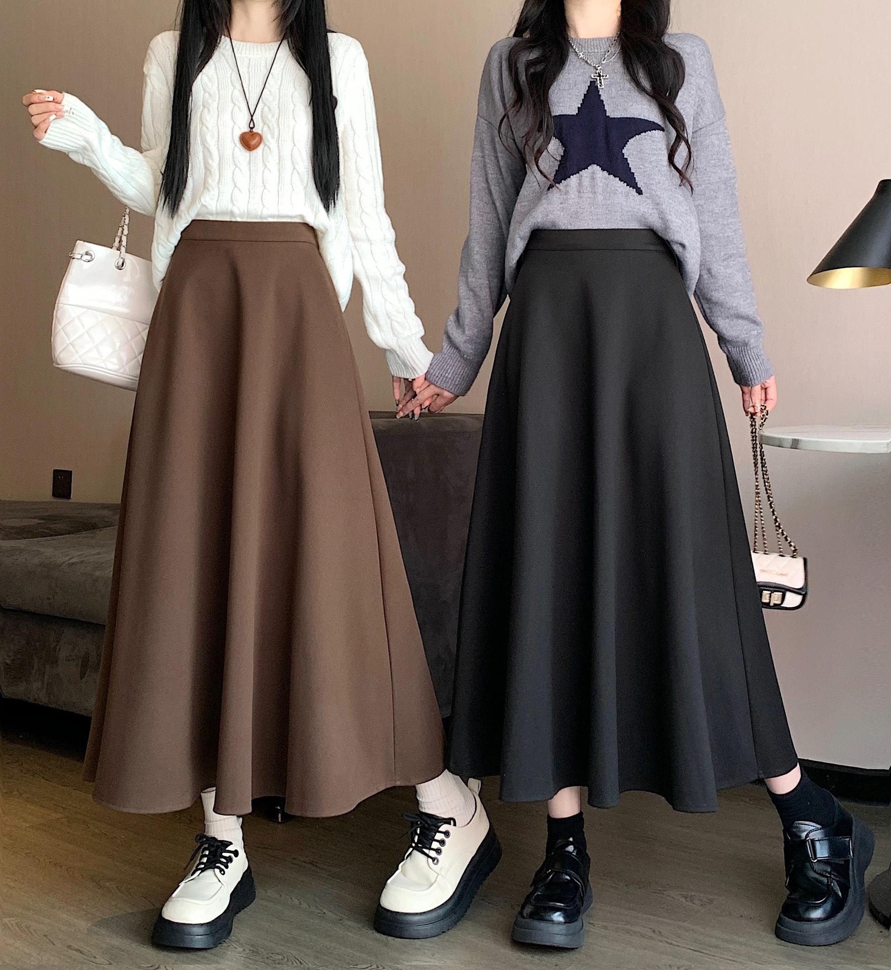 Falda Traje de Medio Cuerpo de Cintura Alta Mujer Otoño e Invierno Nuevo Versátil Adelgazante Falda Paraguas de Vuelo Grande Midi Línea A Falda Plisada