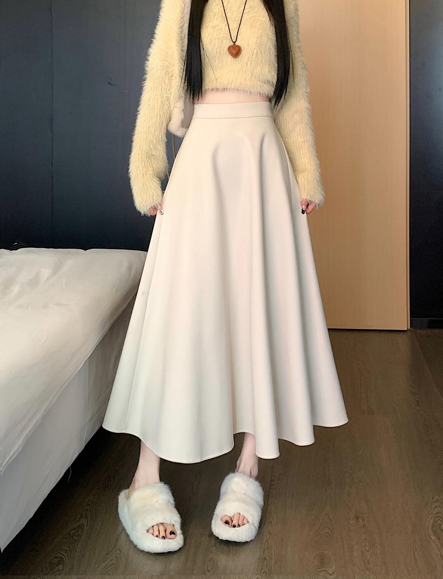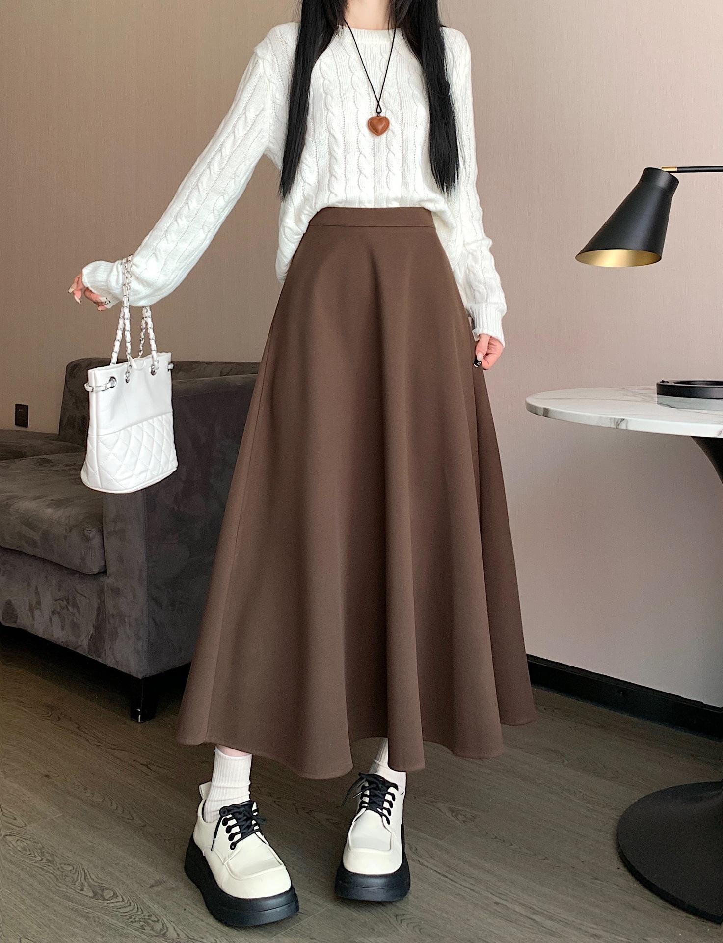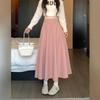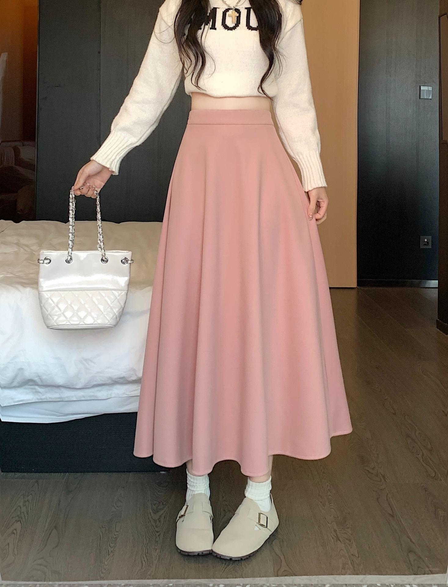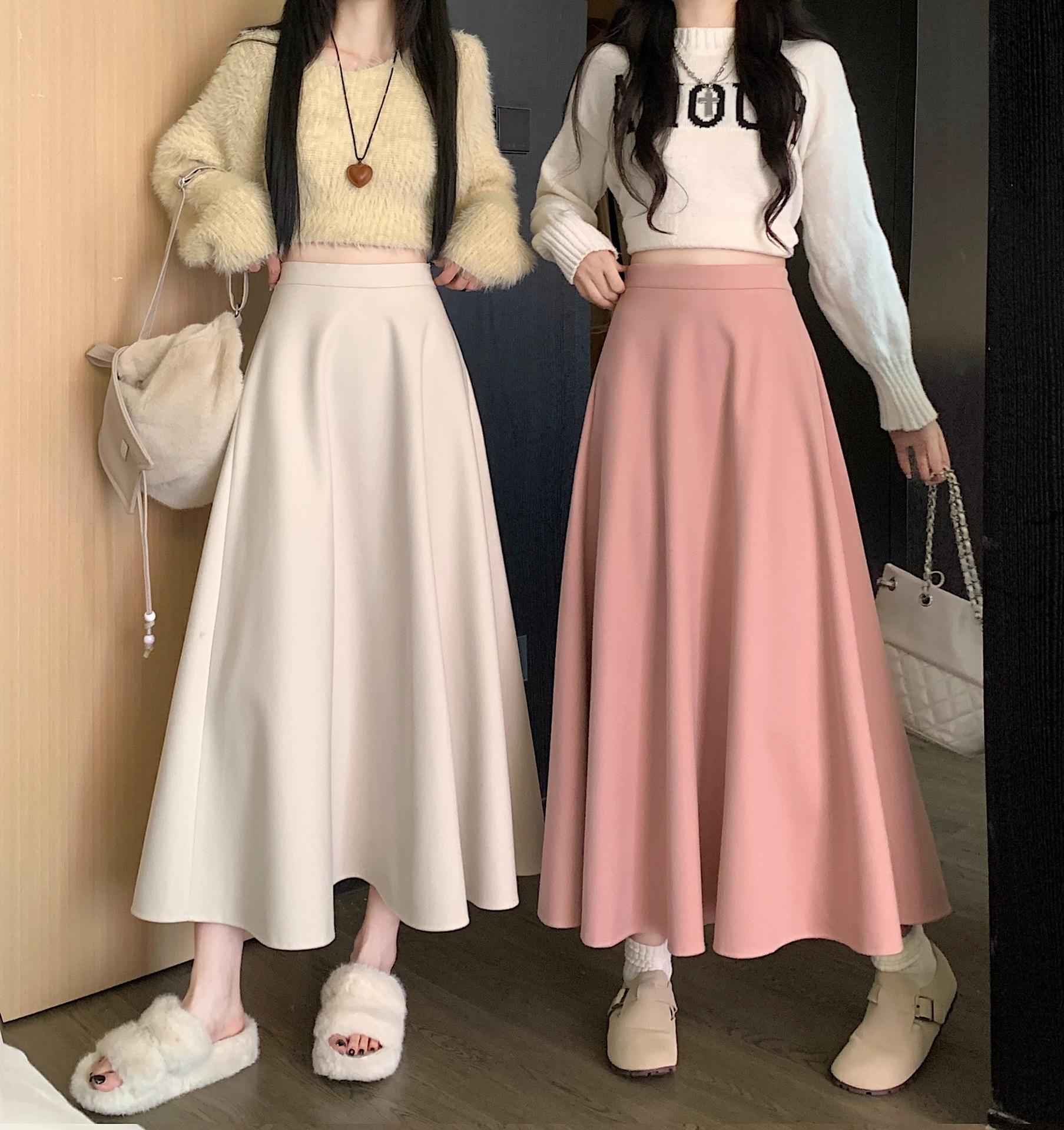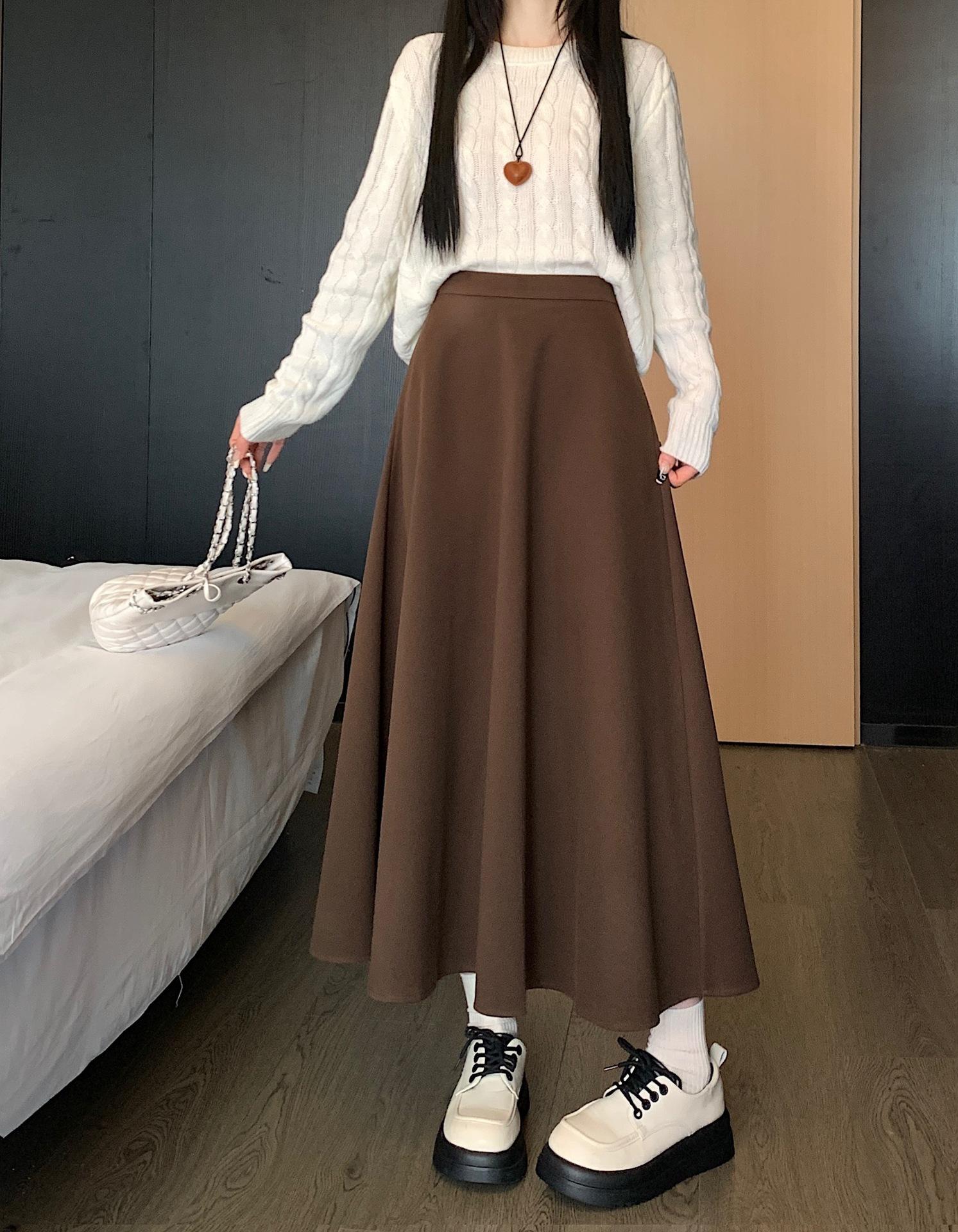 Falda Traje de Medio Cuerpo de Cintura Alta Mujer Otoño e Invierno Nuevo Versátil Adelgazante Falda Paraguas de Vuelo Grande Midi Línea A Falda Plisada