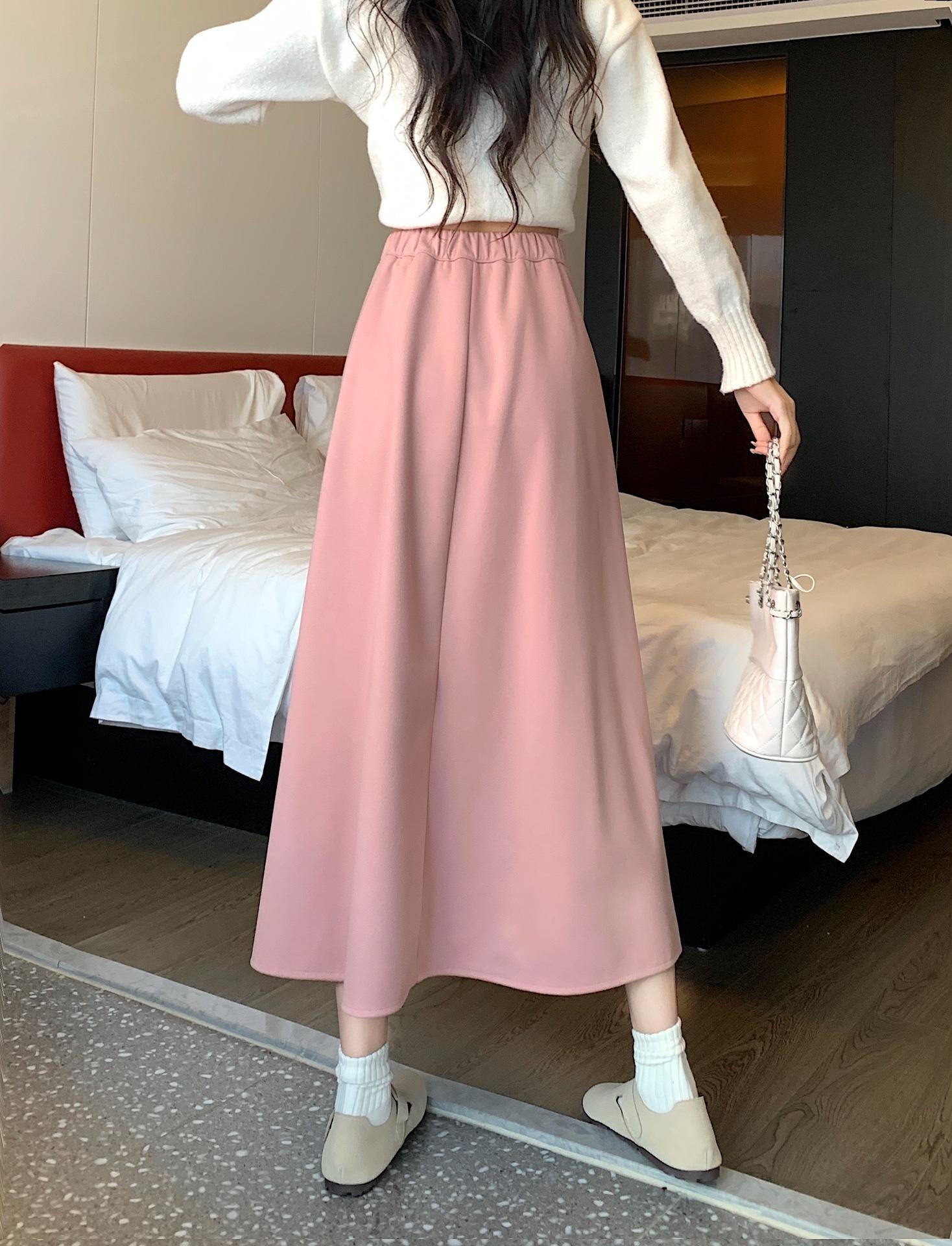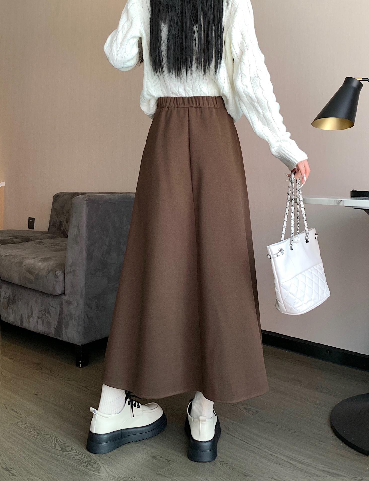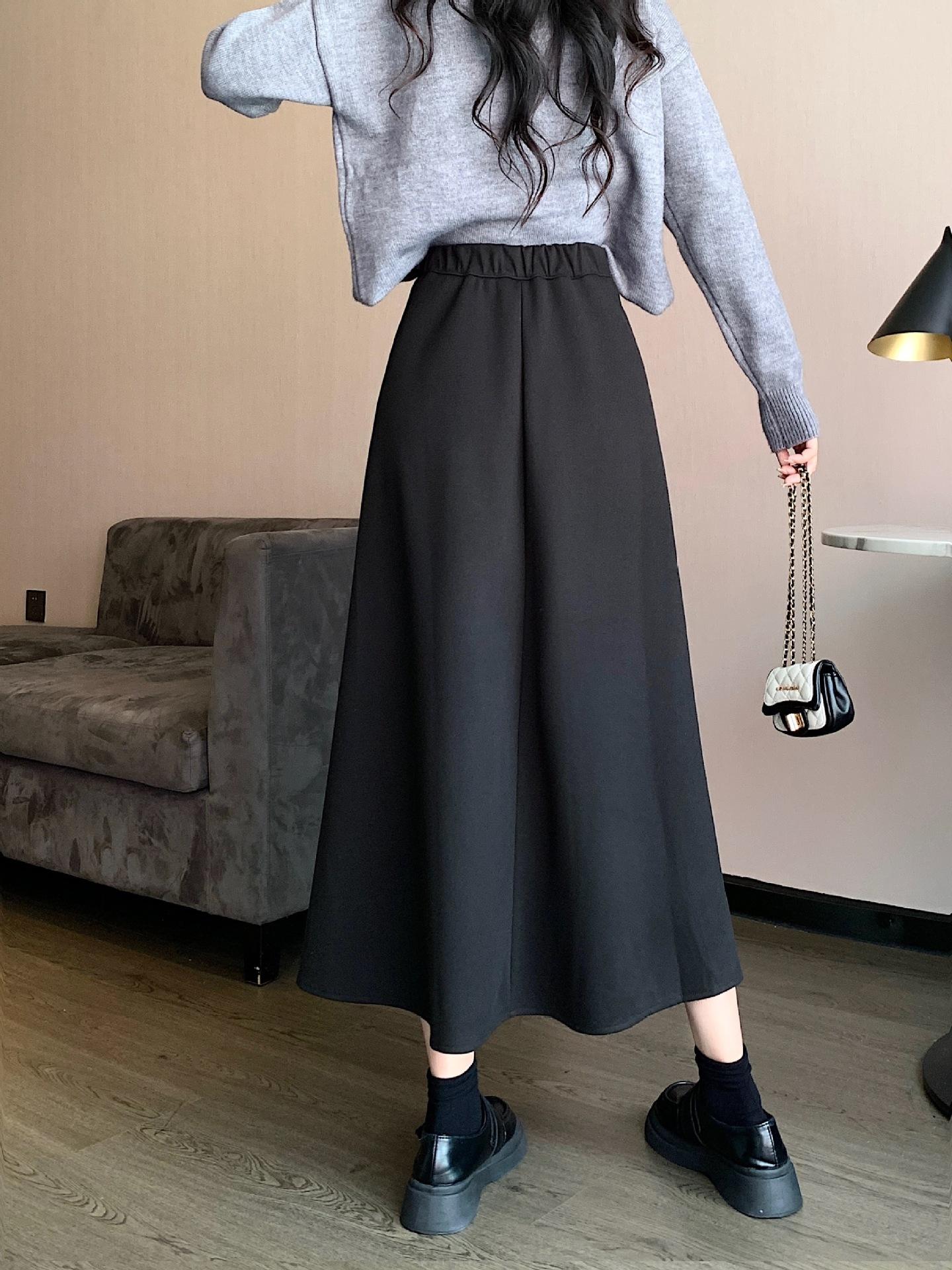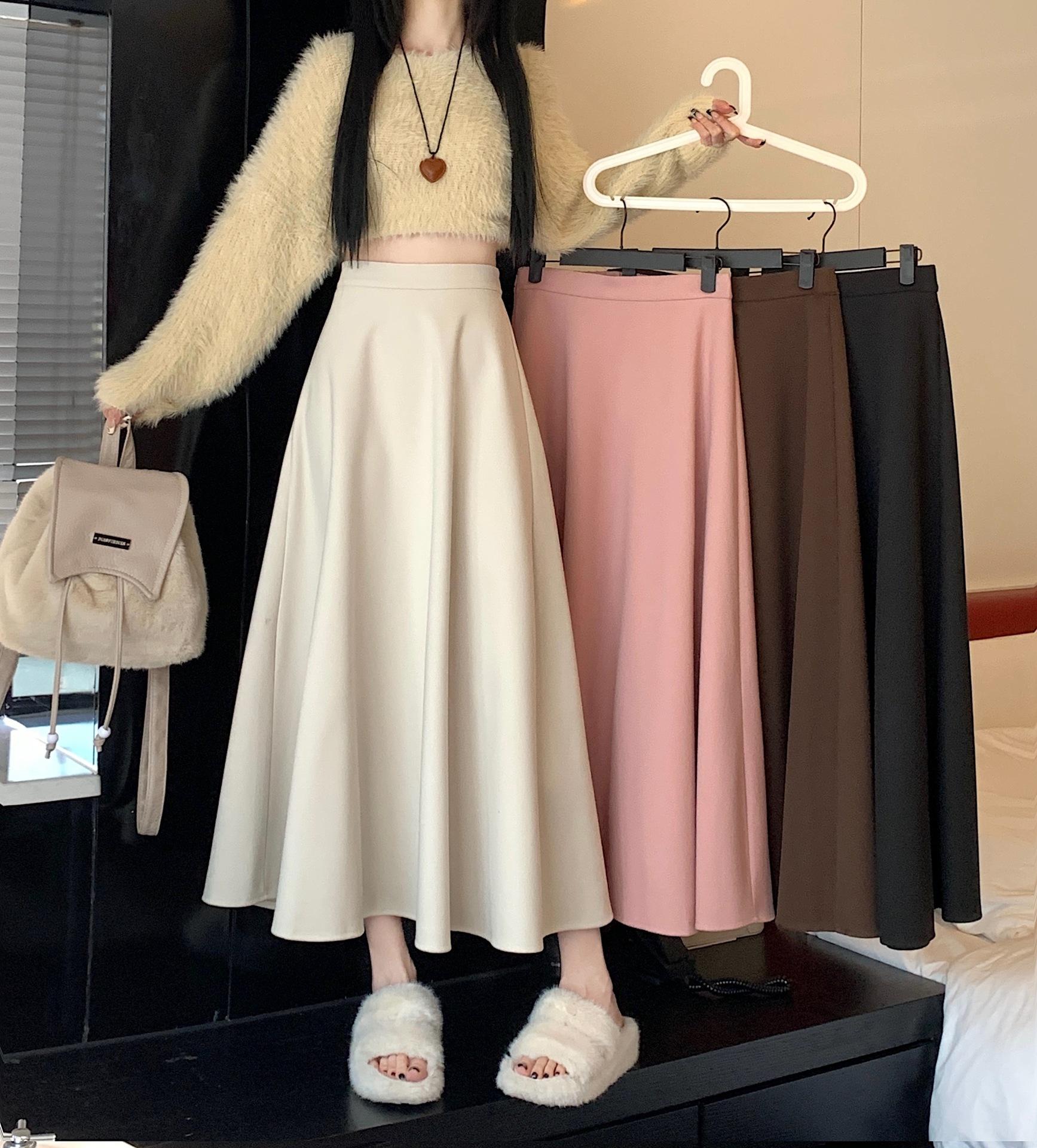 Falda Traje de Medio Cuerpo de Cintura Alta Mujer Otoño e Invierno Nuevo Versátil Adelgazante Falda Paraguas de Vuelo Grande Midi Línea A Falda Plisada