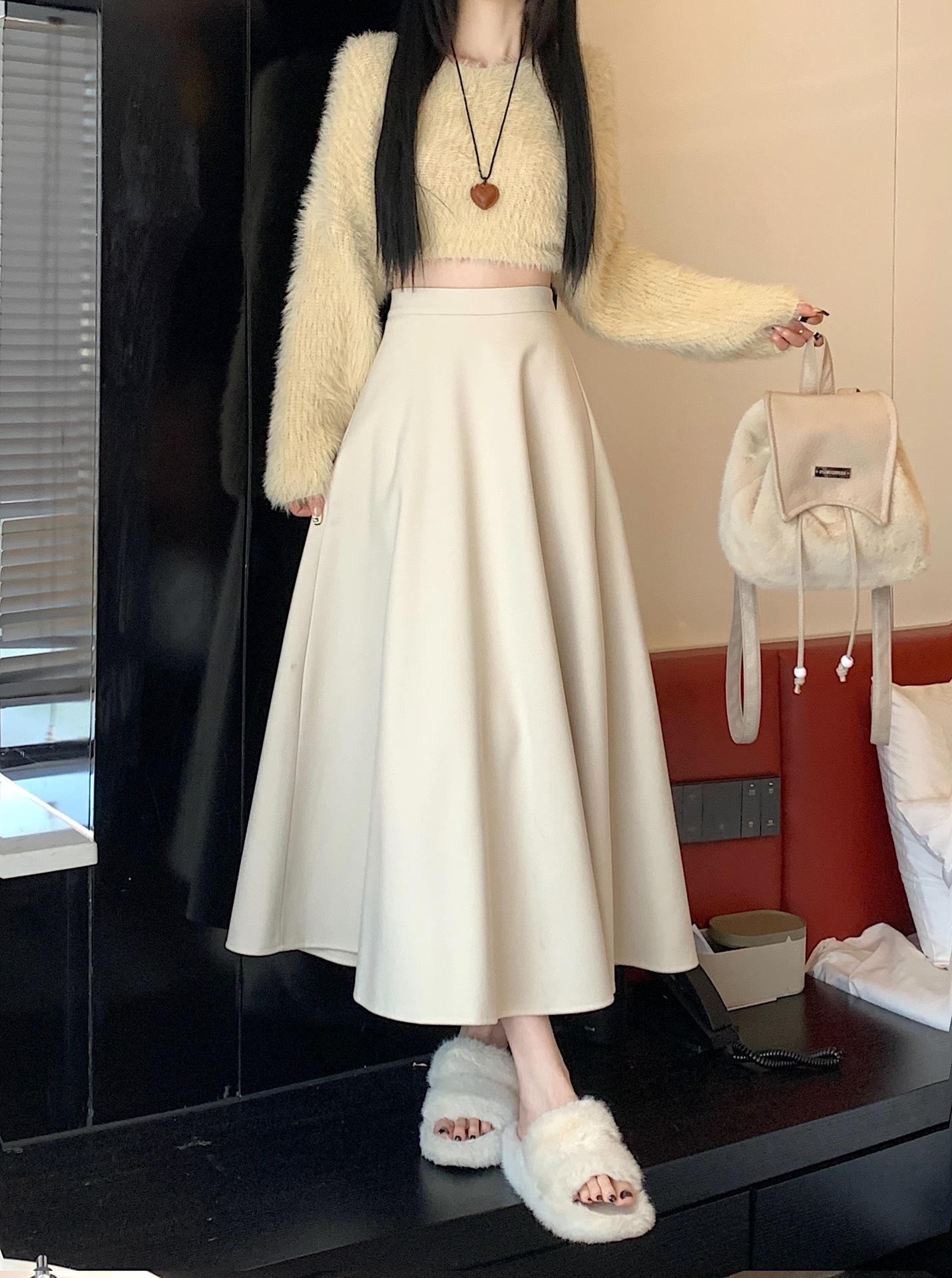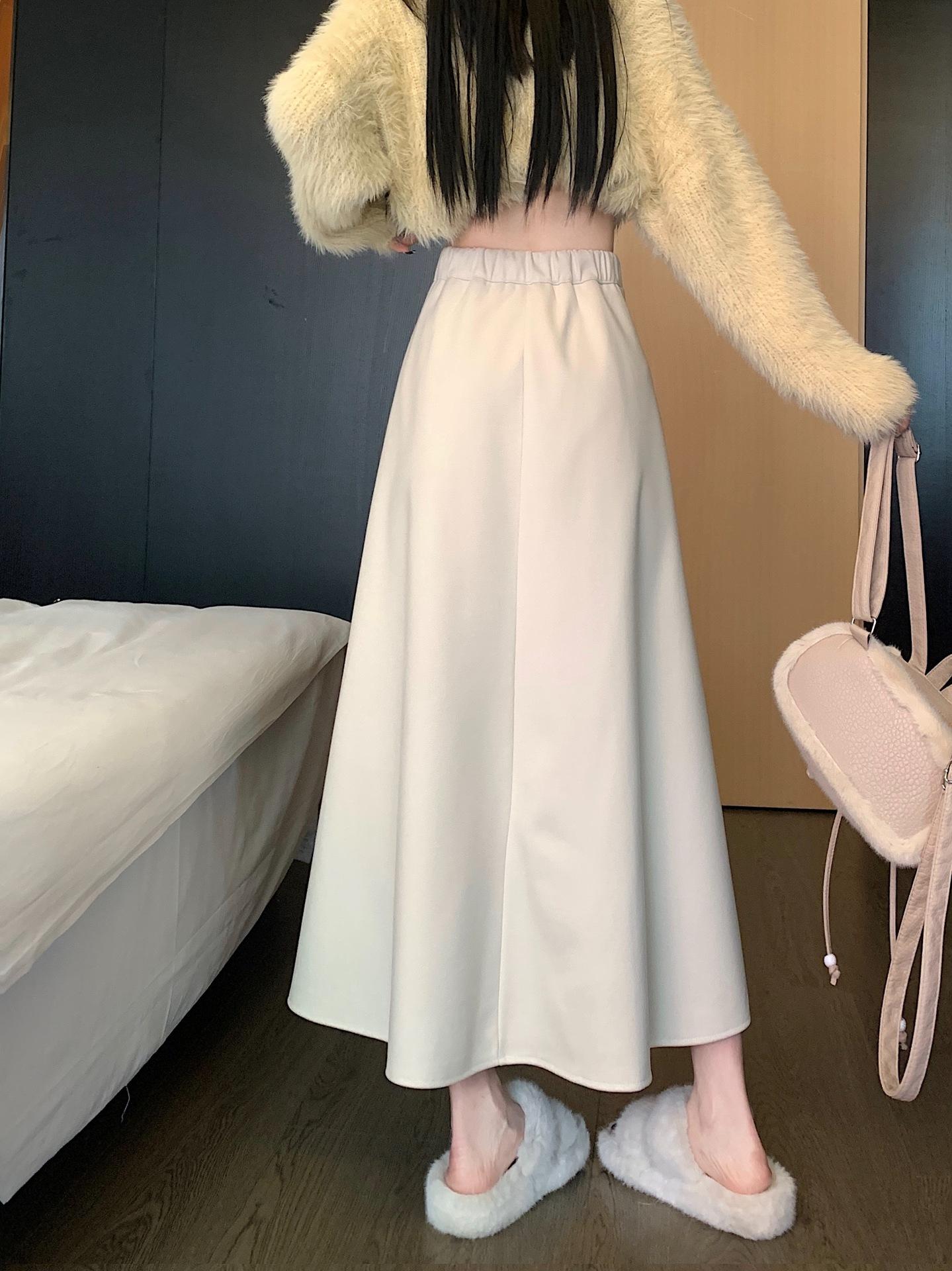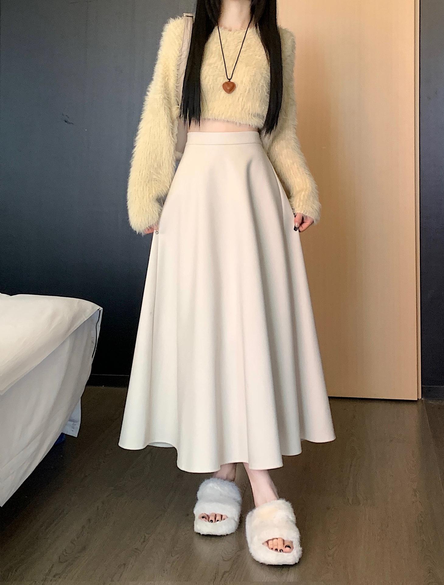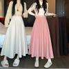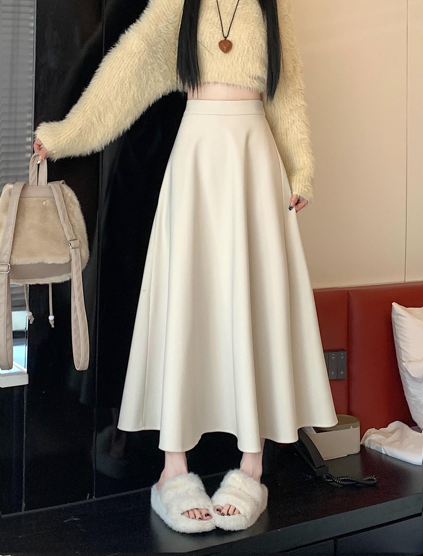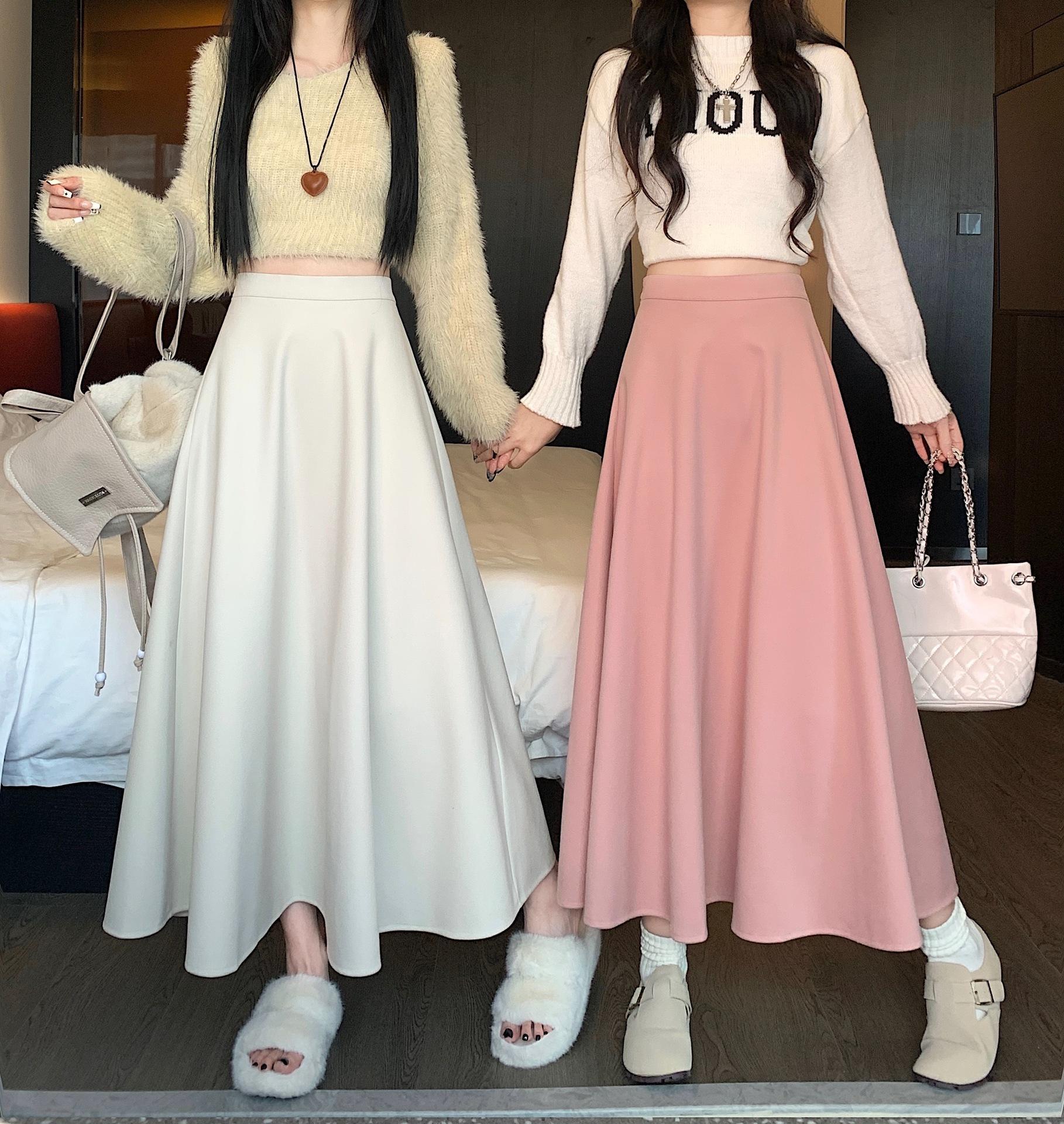 Falda Traje de Medio Cuerpo de Cintura Alta Mujer Otoño e Invierno Nuevo Versátil Adelgazante Falda Paraguas de Vuelo Grande Midi Línea A Falda Plisada