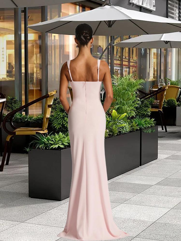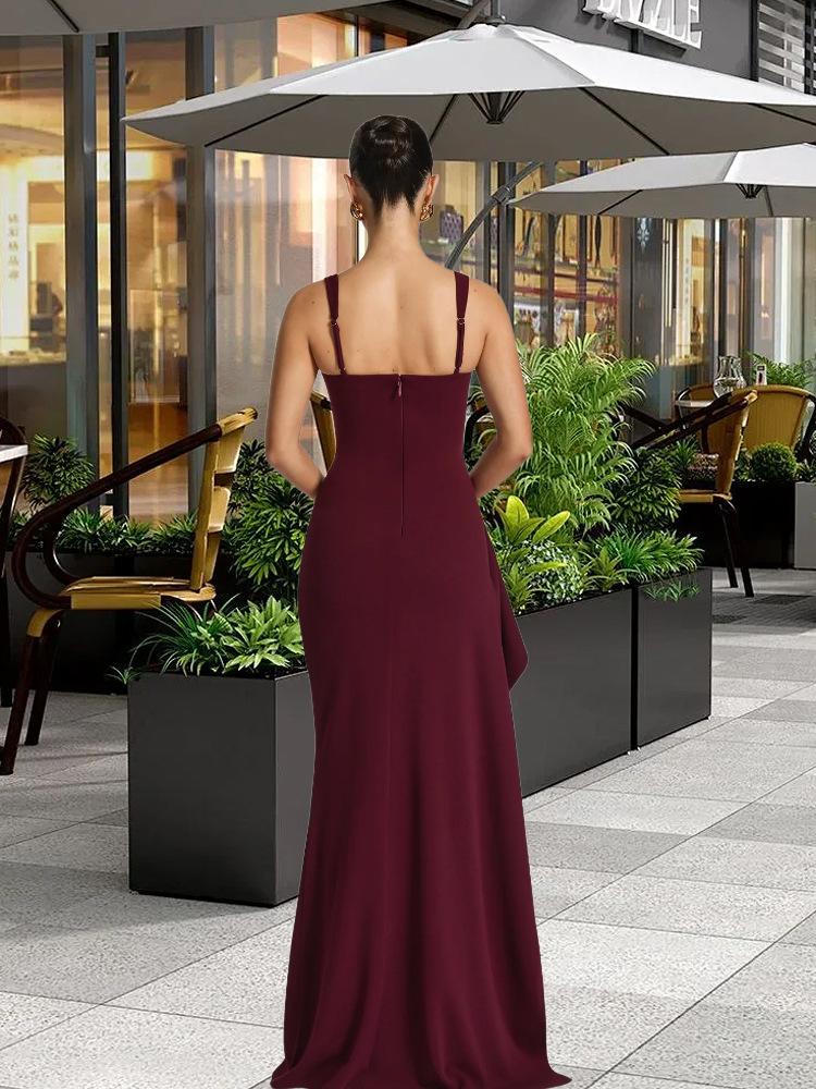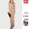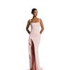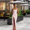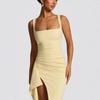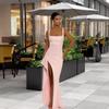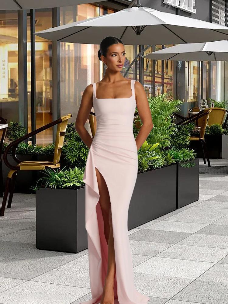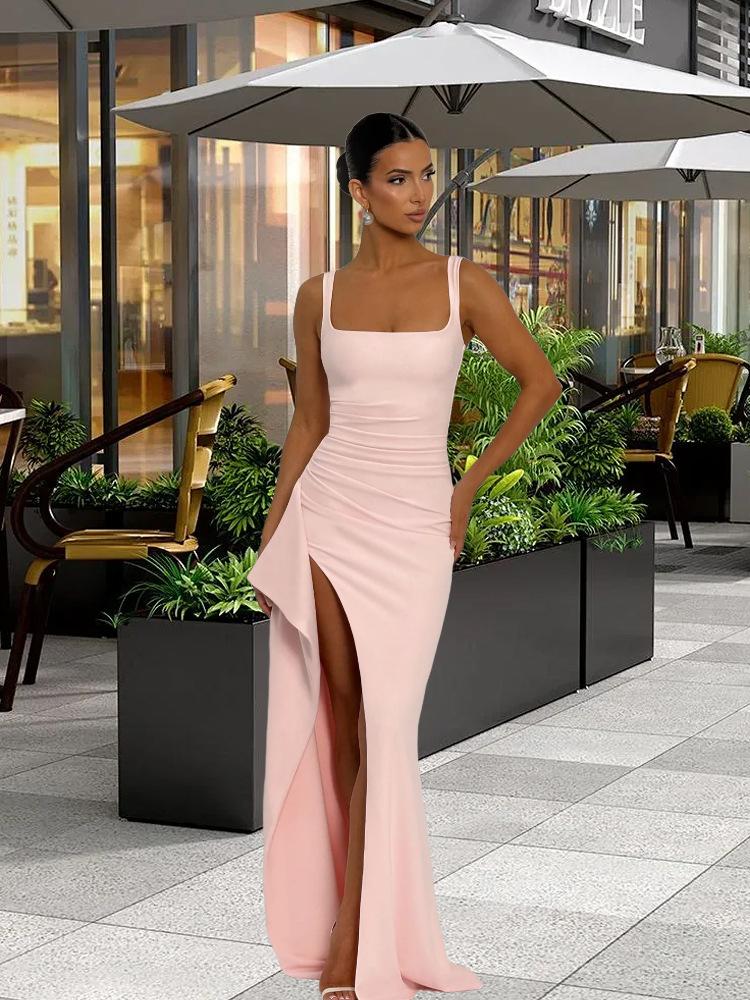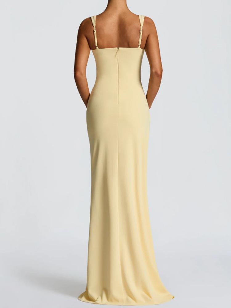 Vestido de Verano para Mujer Europeo y Americano 2025 Nuevo Color Puro Sexy Ajustado Moda Cintura Abertura Asimétrica Falda Larga Tirantes
