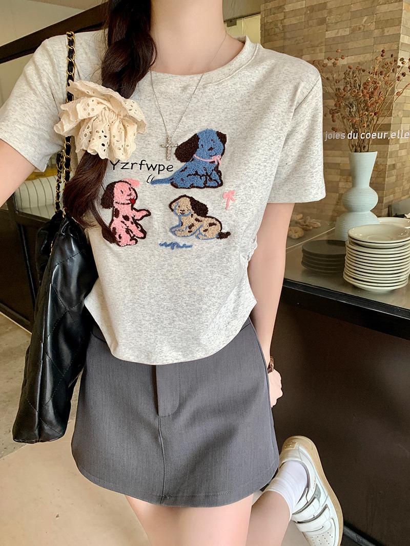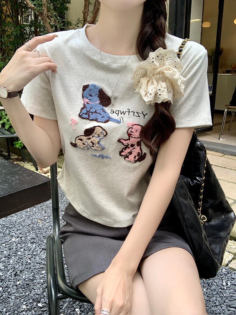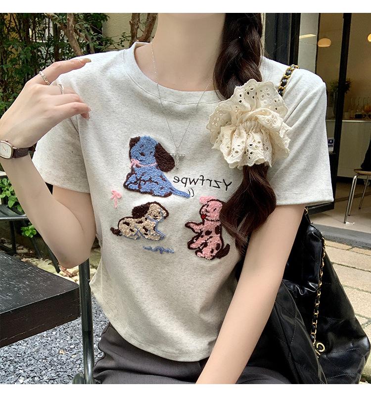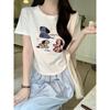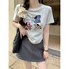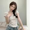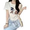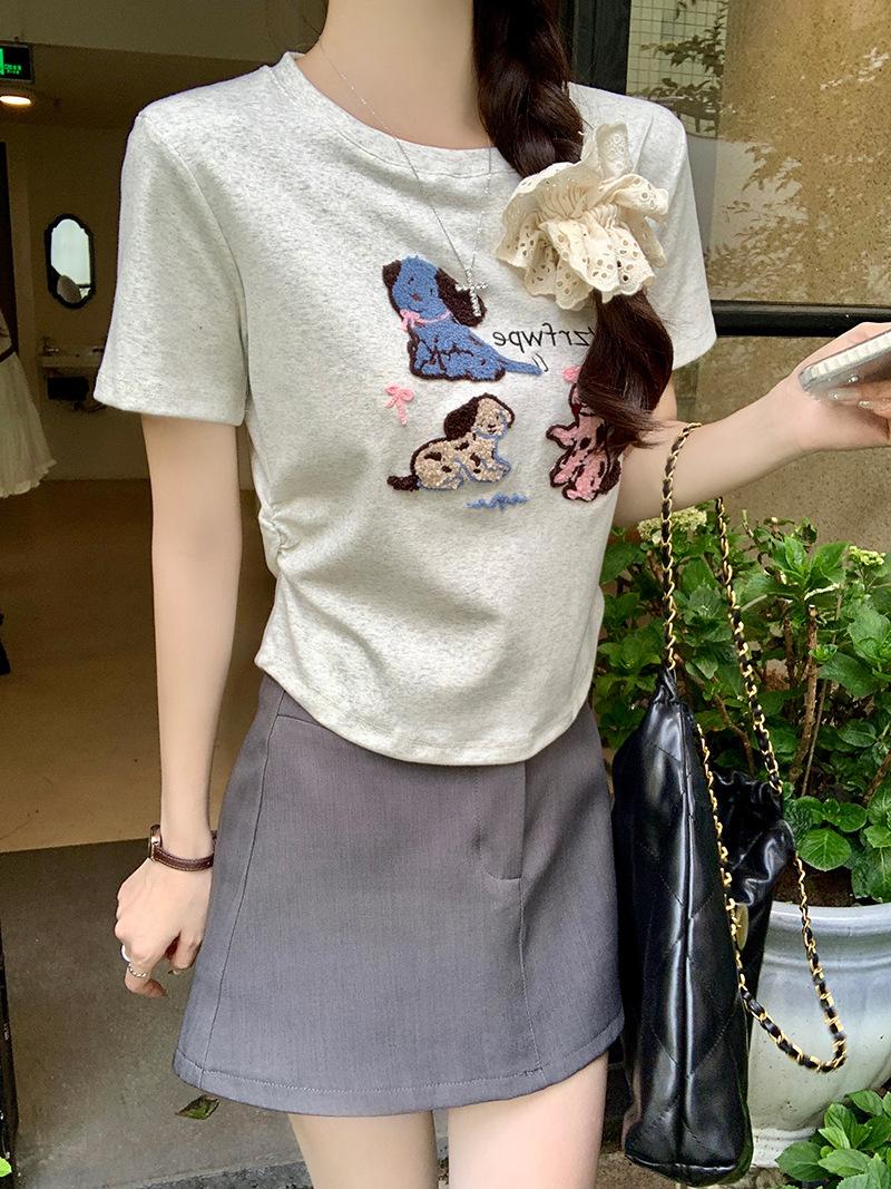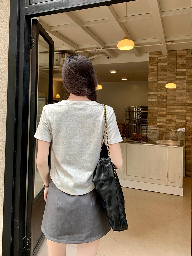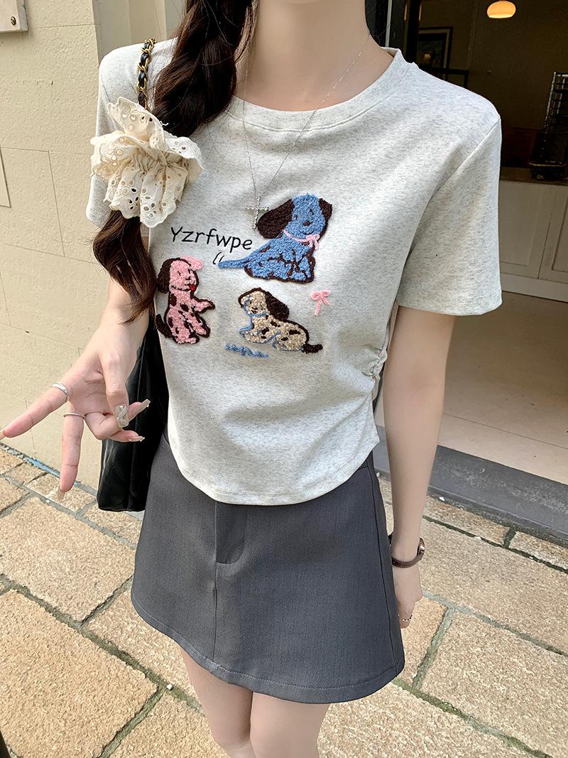 Playera de Manga Corta Dulce y Picante Reductora de Edad para Mujer en Verano, Aspecto Adelgazante, Diseño de Cintura Plisada, Top de Hombro Derecho Nicho y Chic