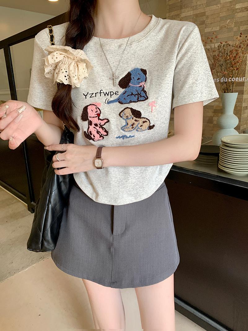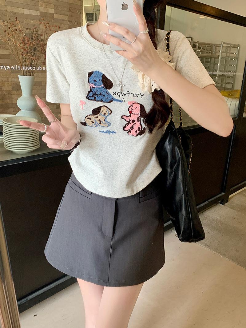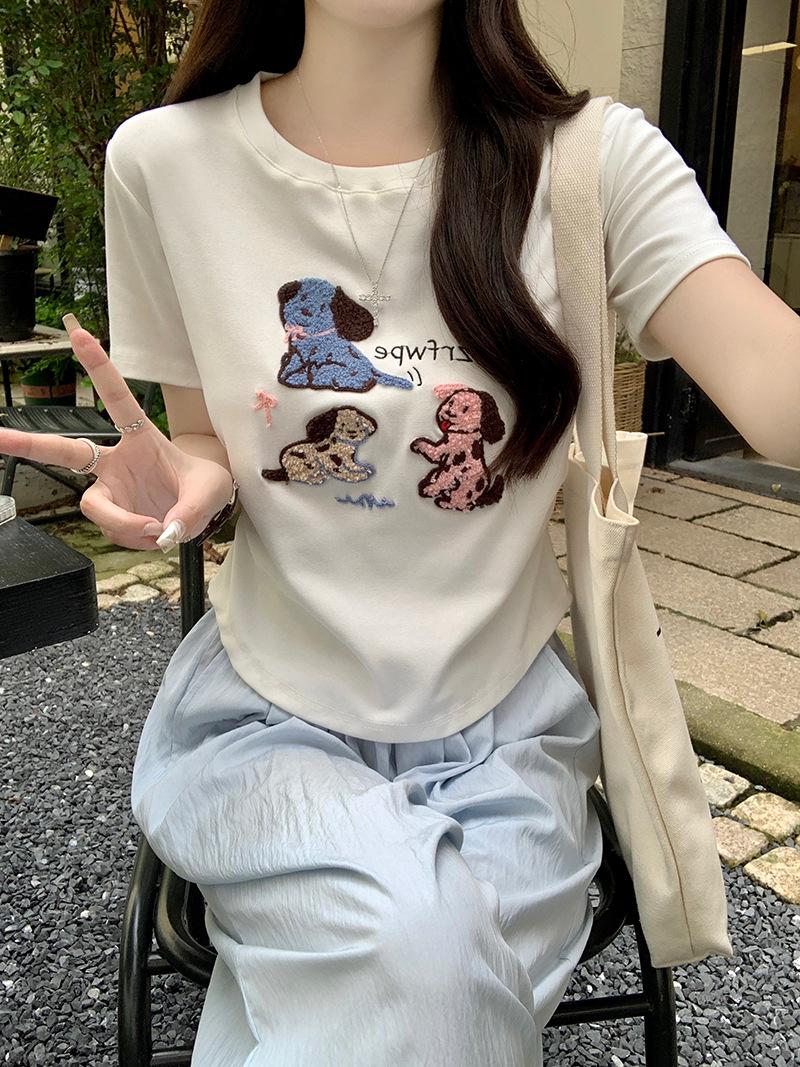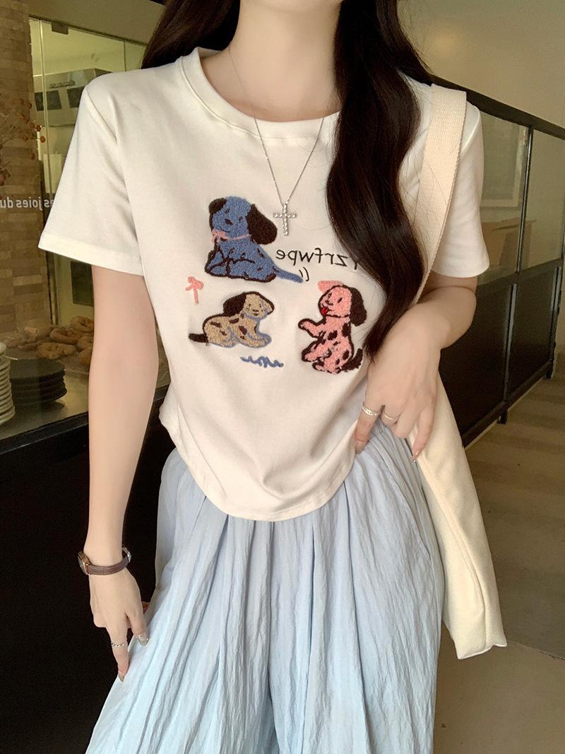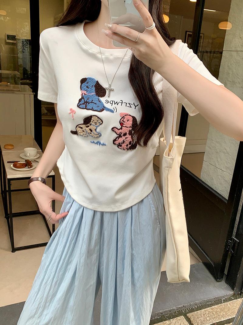 Playera de Manga Corta Dulce y Picante Reductora de Edad para Mujer en Verano, Aspecto Adelgazante, Diseño de Cintura Plisada, Top de Hombro Derecho Nicho y Chic