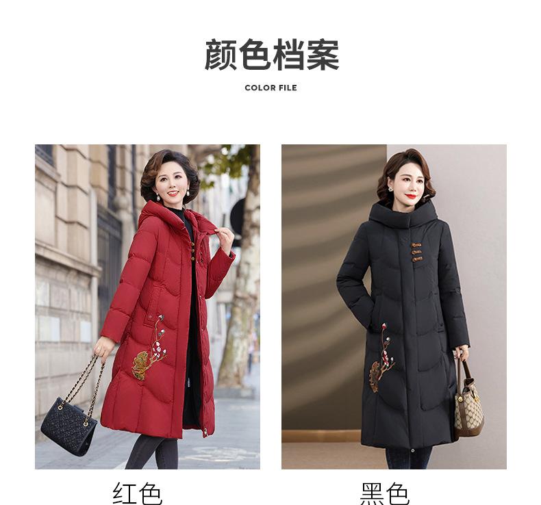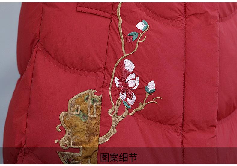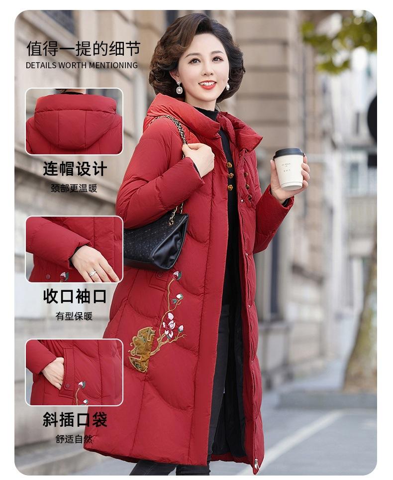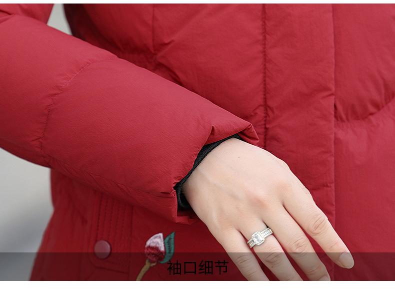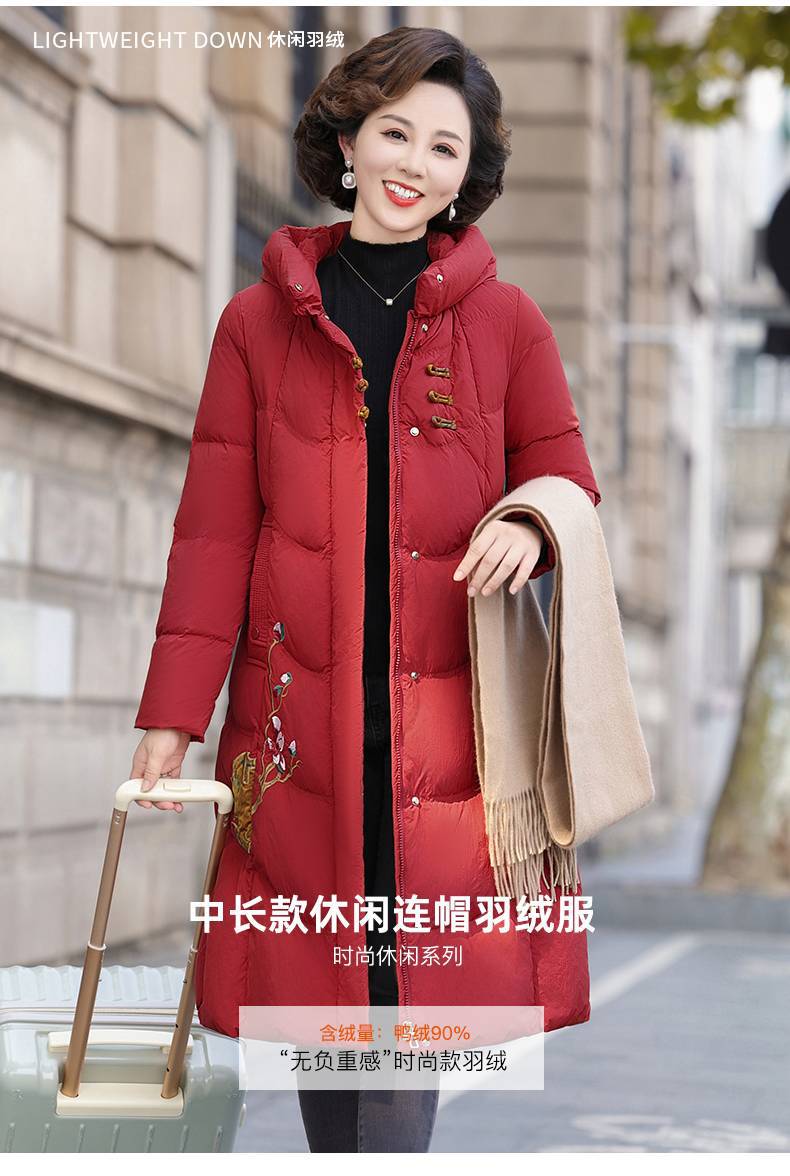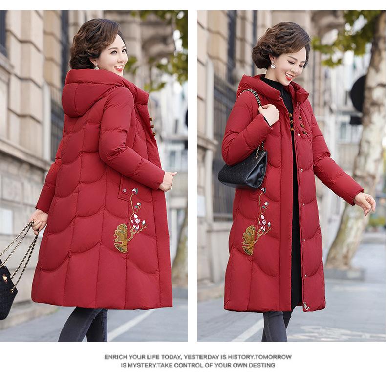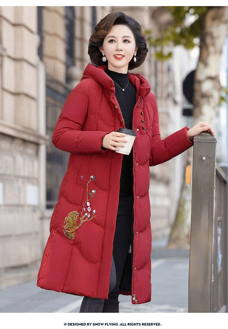 Snow Flying Chaqueta Larga de Plumón para Mujer 2025 Nueva Gruesa Cálida con Capucha Bordada Plumón de Pato Blanco Chaqueta de Invierno para Mamá