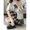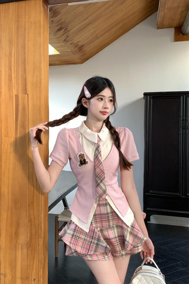 Traje jk estilo universitario verano red oso falso dos piezas camisa falda uniforme cuadros traje de dos piezas