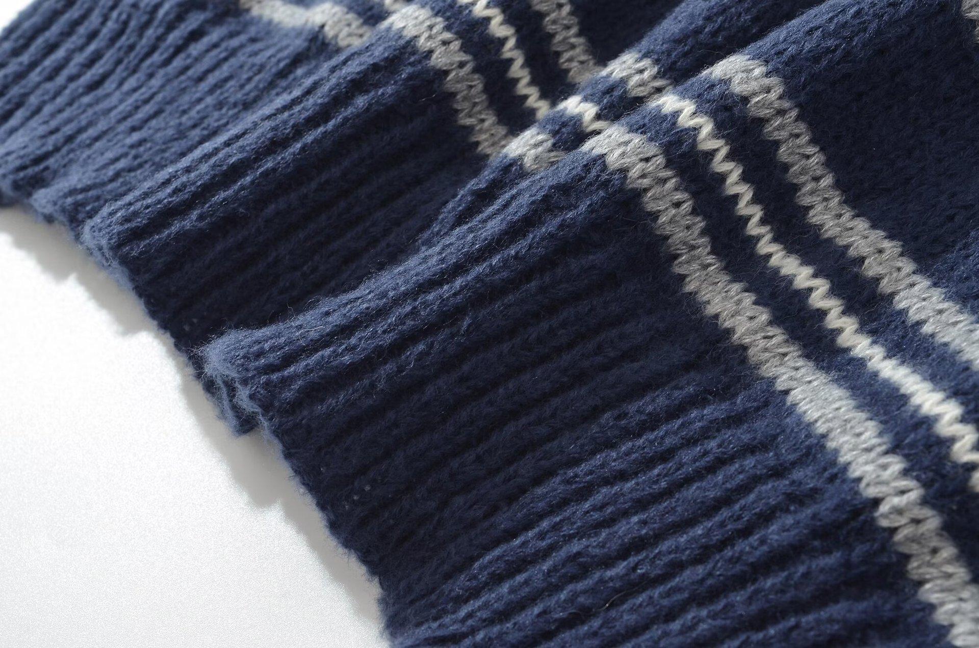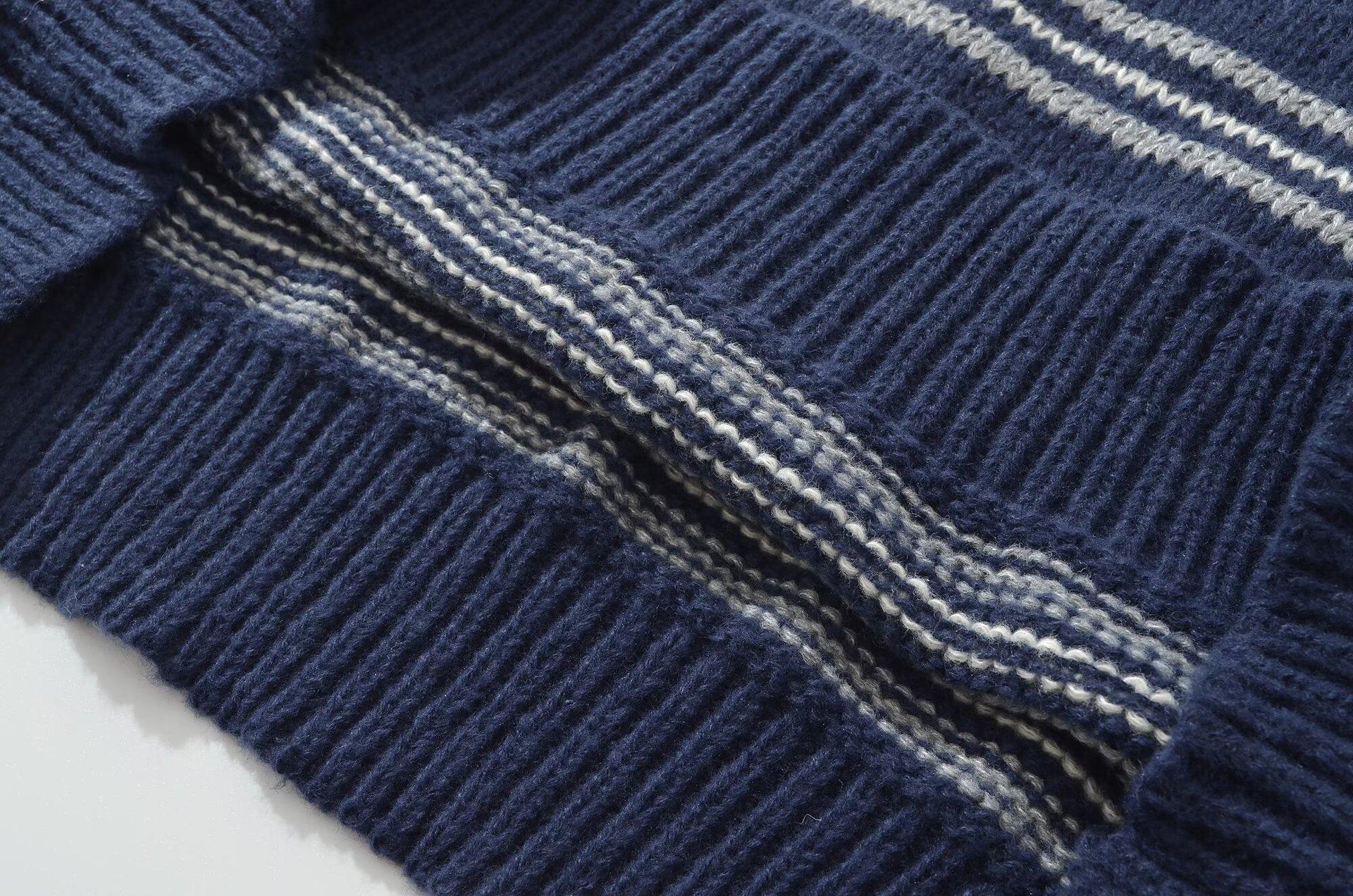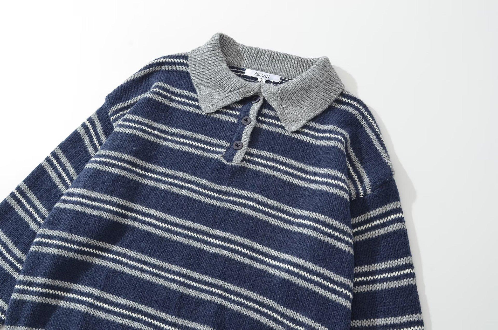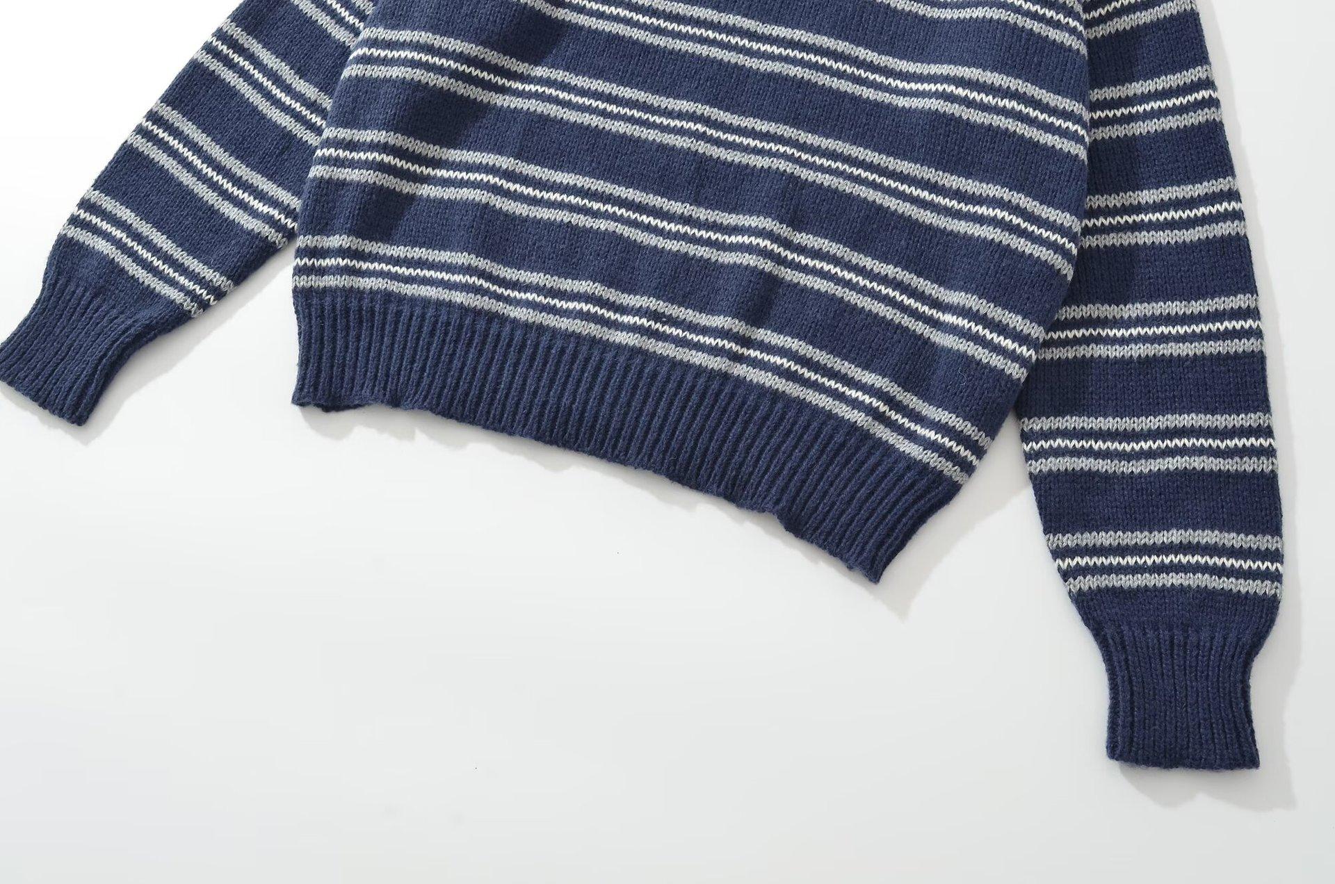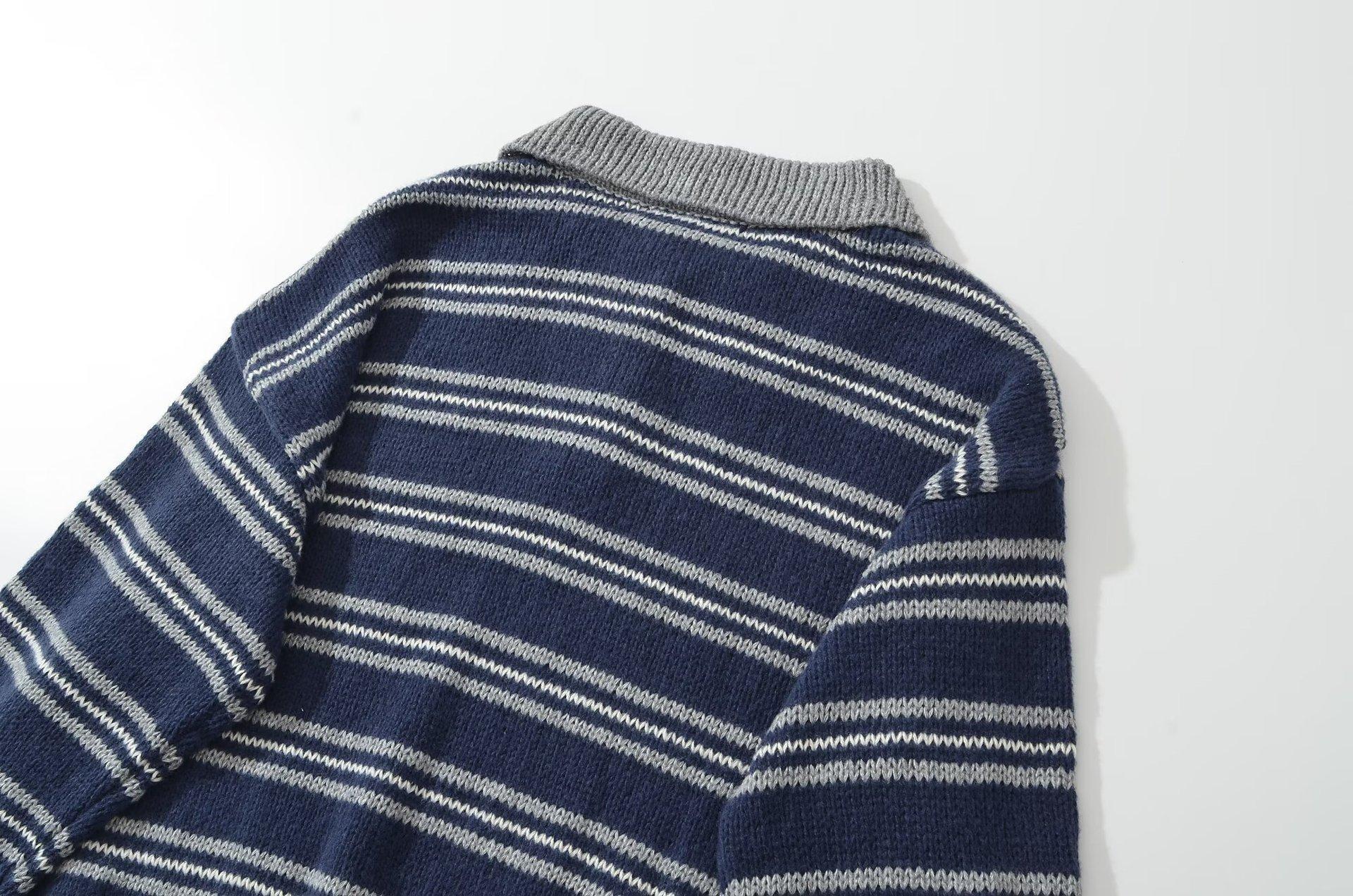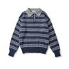 Ropa de Verano para Mujer 2025 Nuevo Estilo Europeo y Americano Moda Sencillo Versátil Manga Larga Solapa Rayado Suéter Tejido
