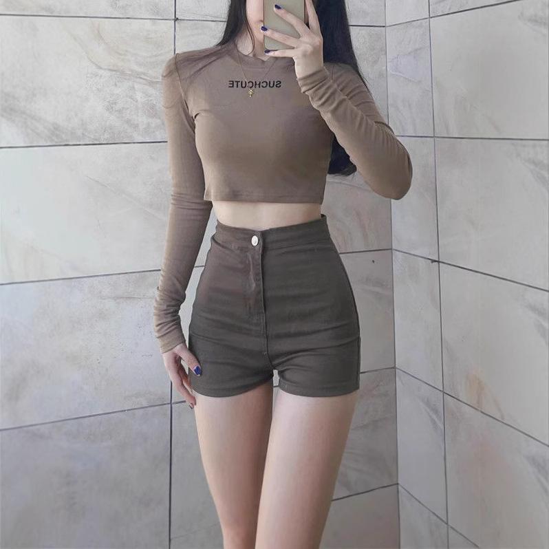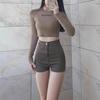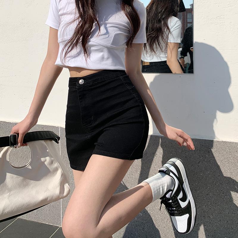 Shorts de mezclilla elástica de cintura alta 2025 para mujer Verano Nuevo estilo coreano Look adelgazante Versátil Ajustado A-line Hot pants