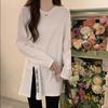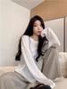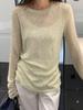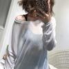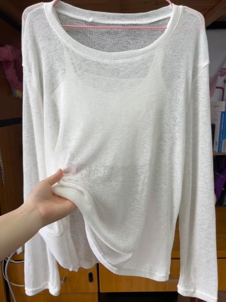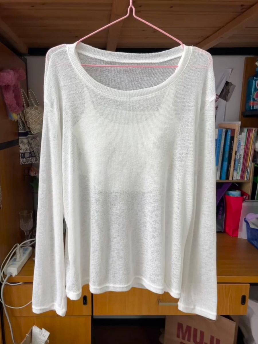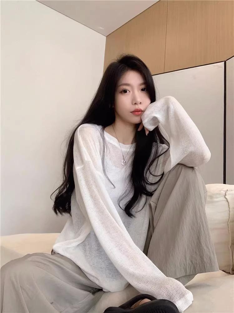 Blusa Blanca de Protección Solar para Mujer Estilo Francés Relajado Casual Holgada Camiseta Principios de Primavera Delgada Ligeramente Transparente Manga Larga Top de Punto