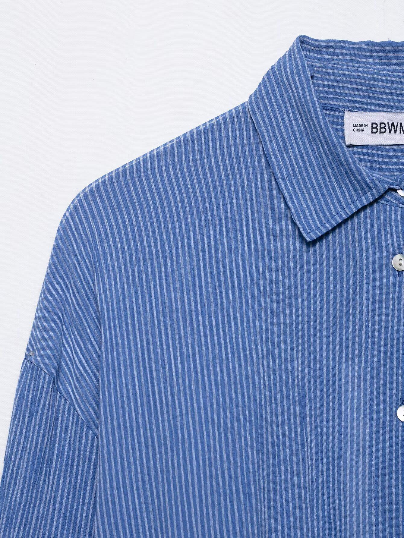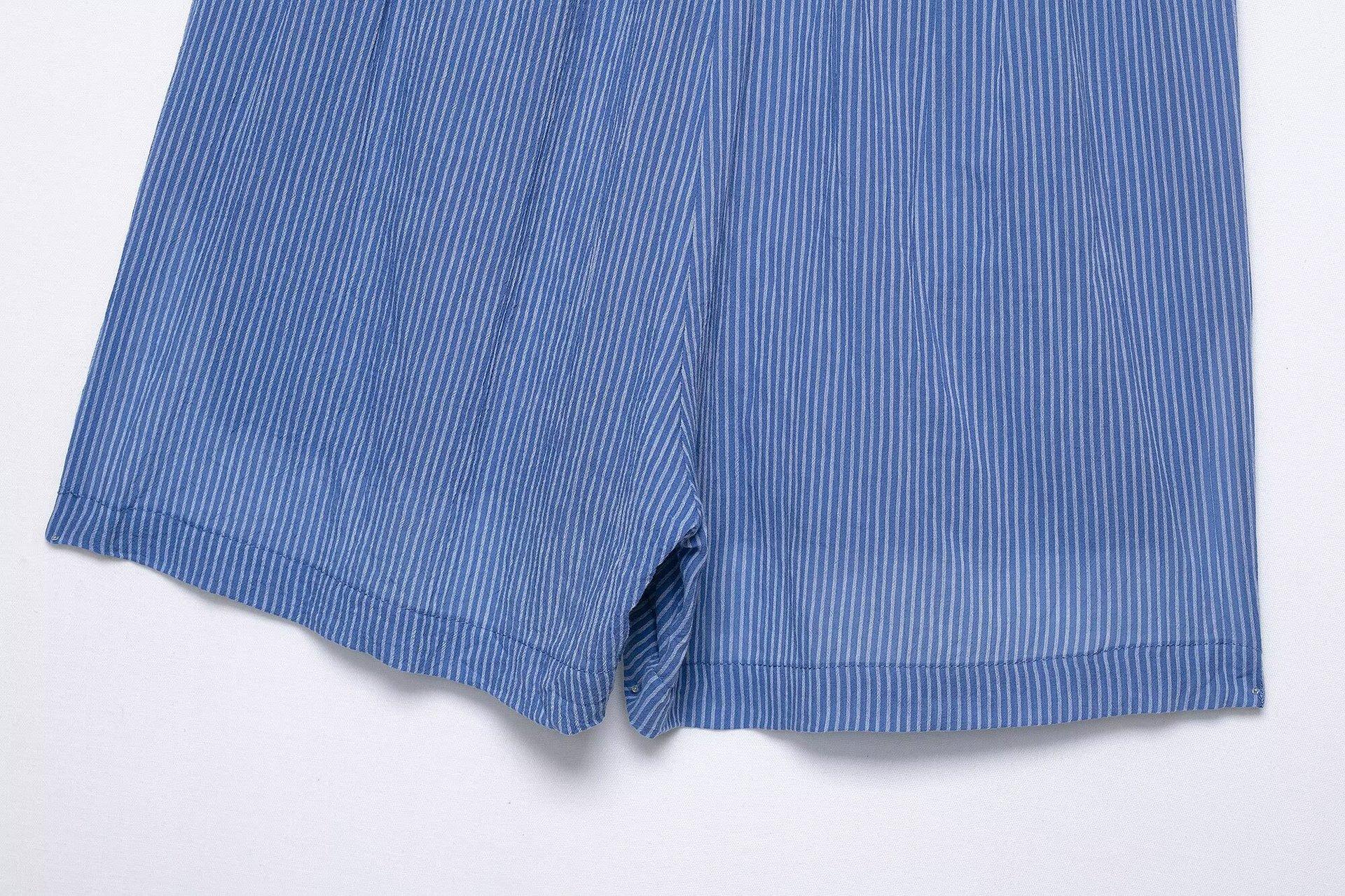 Aliexpress Transfronterizo Ropa Europea y Americana al por Mayor 2025 Principios de Primavera Nuevo Camisa Larga a Rayas Shorts
