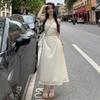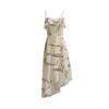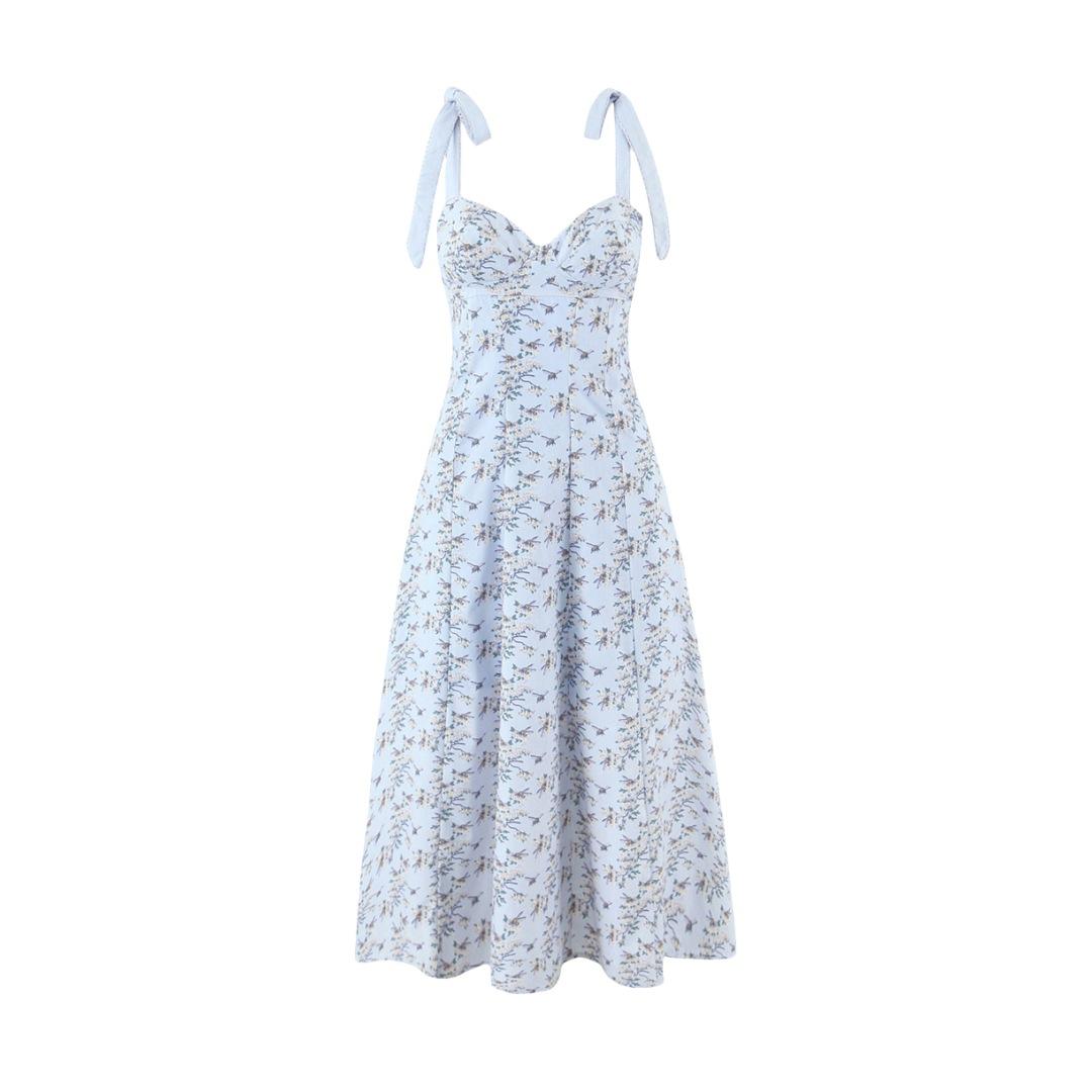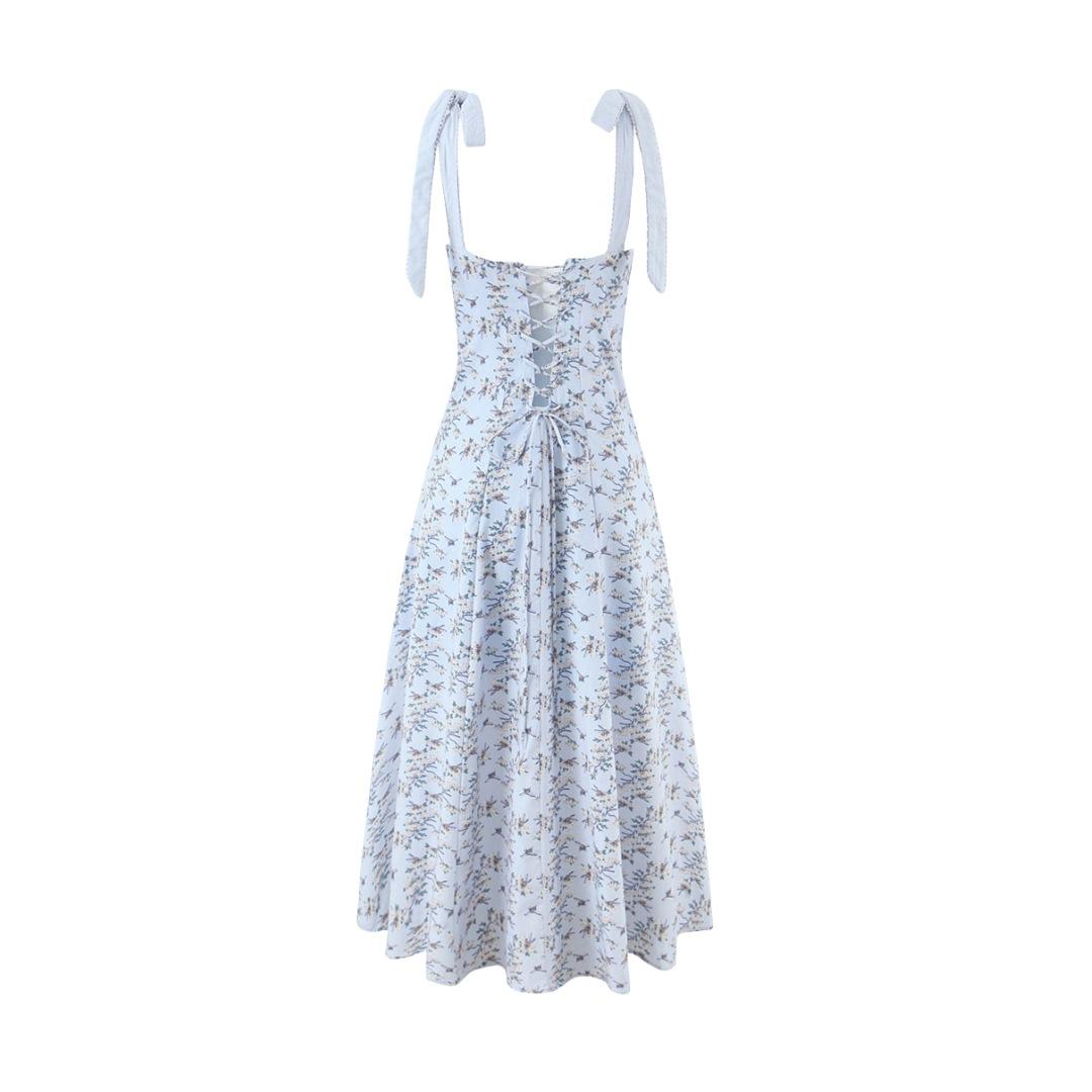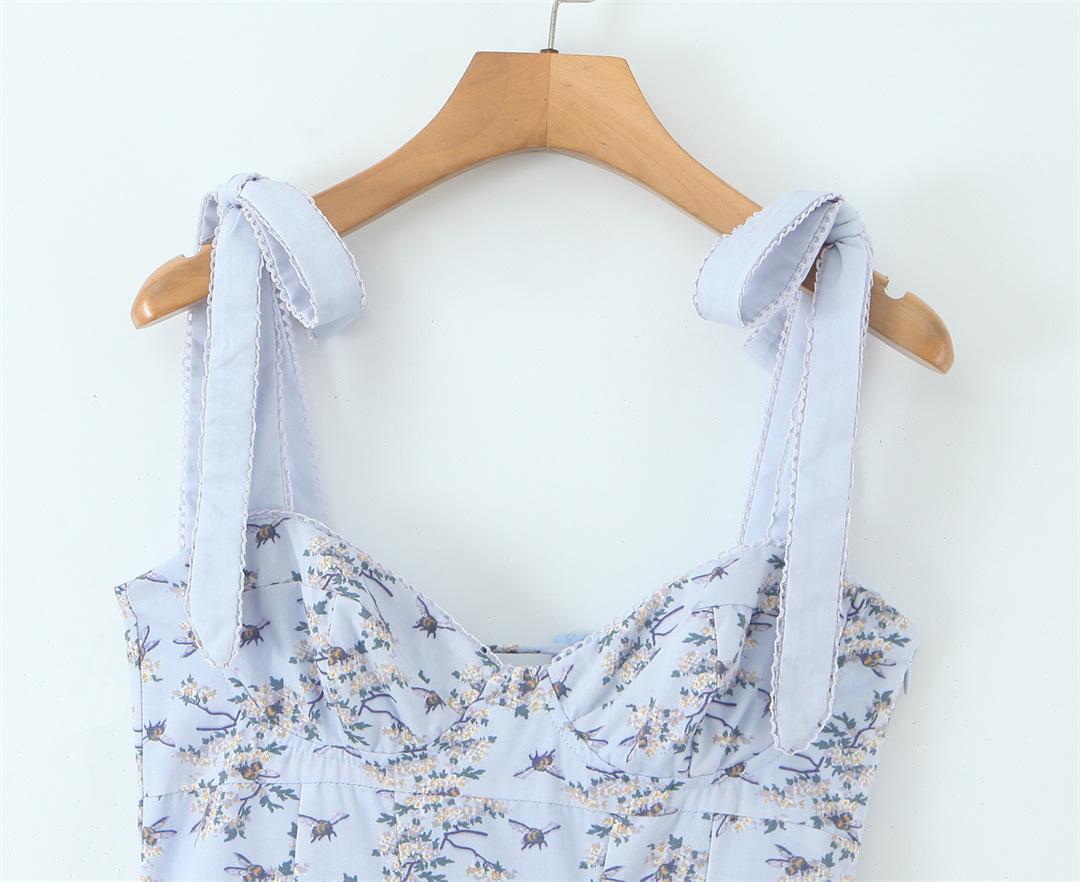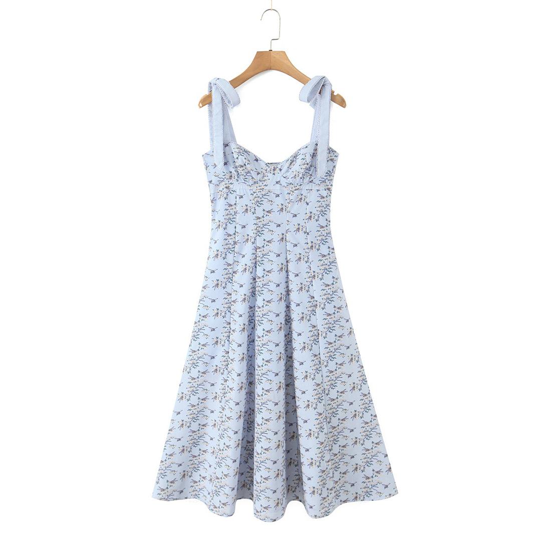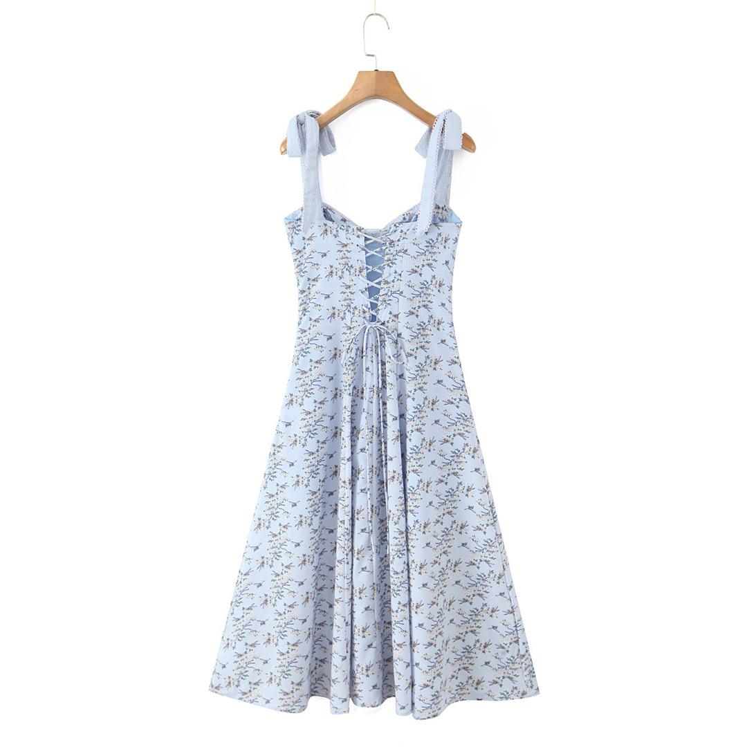 Vestido Floral de Tirantes para Mujer Diseño Nicho Europeo y Americano Tirantes Cruzados en Espalda Hueco Ajustado Falda Midi