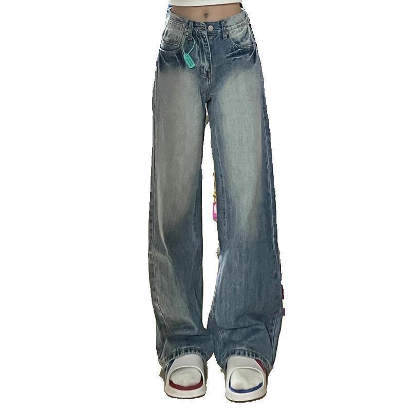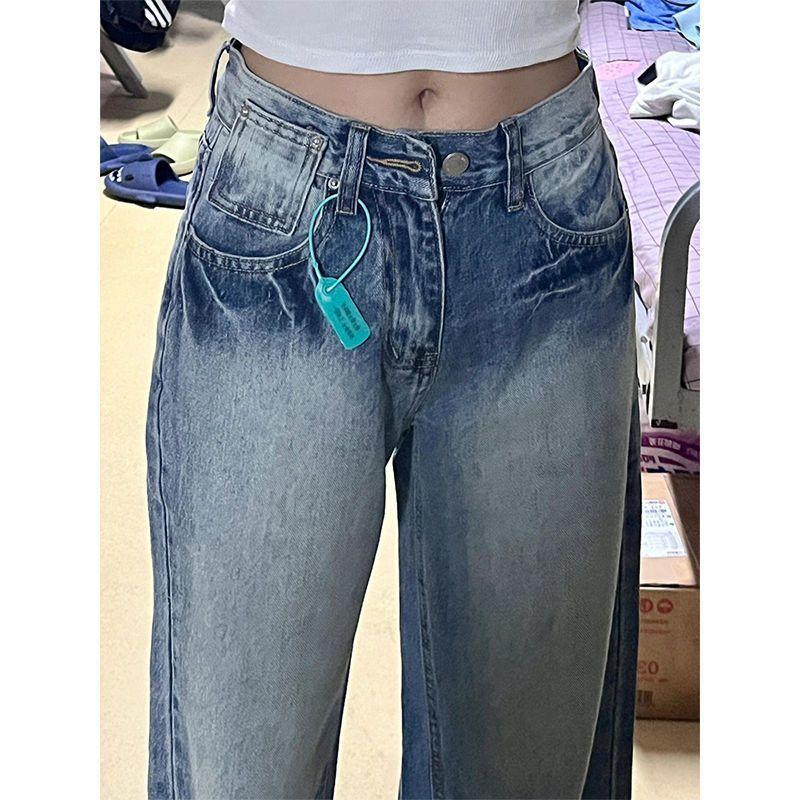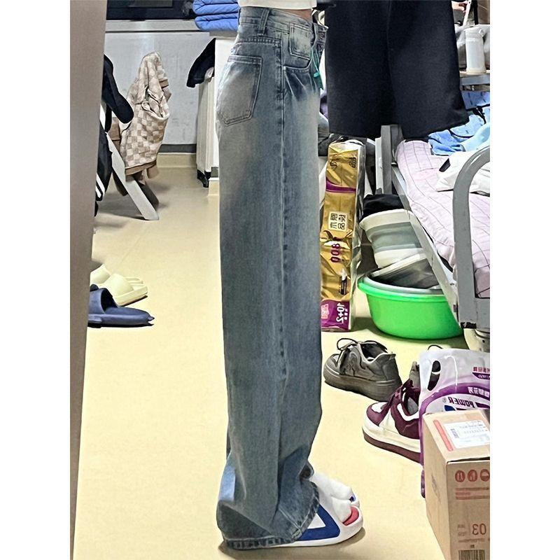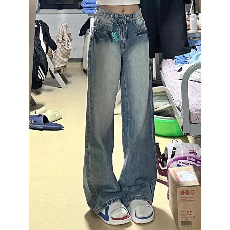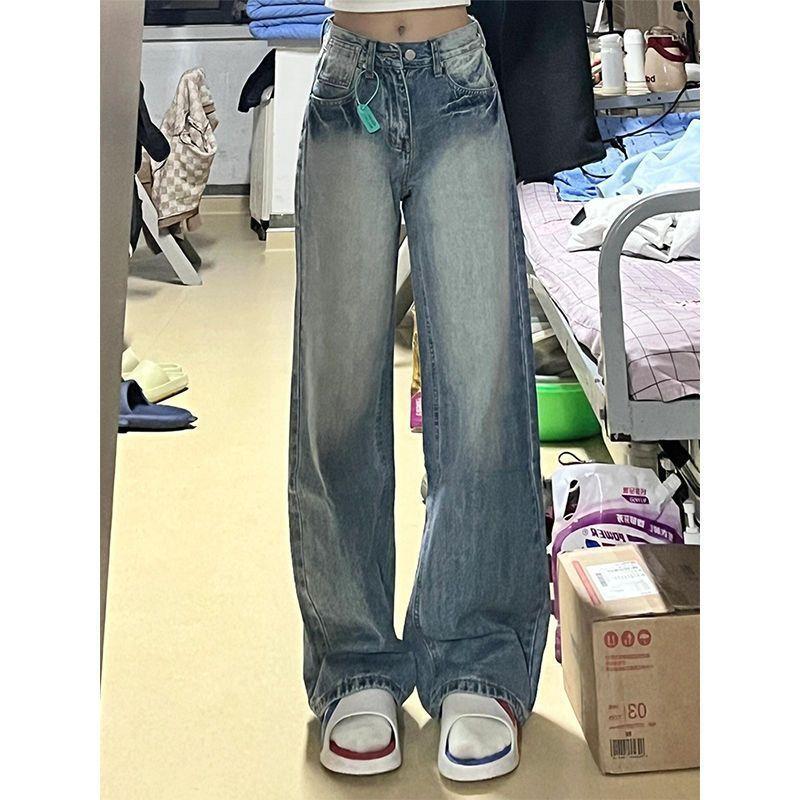 Jeans Rectos Retro Americanos Primavera/Verano 2024 Nuevos Lavados Cintura Alta Sueltos Pierna Ancha