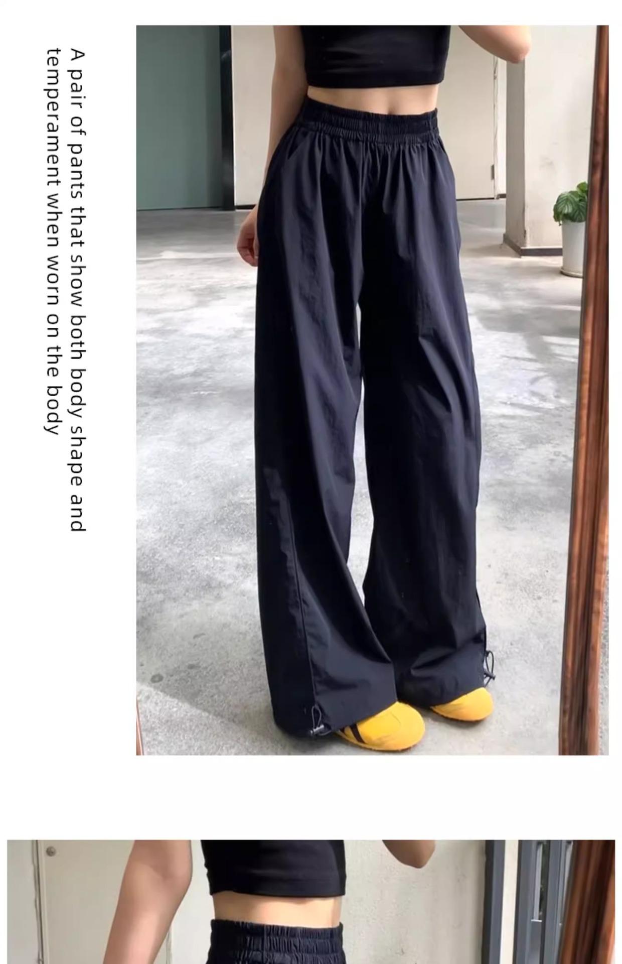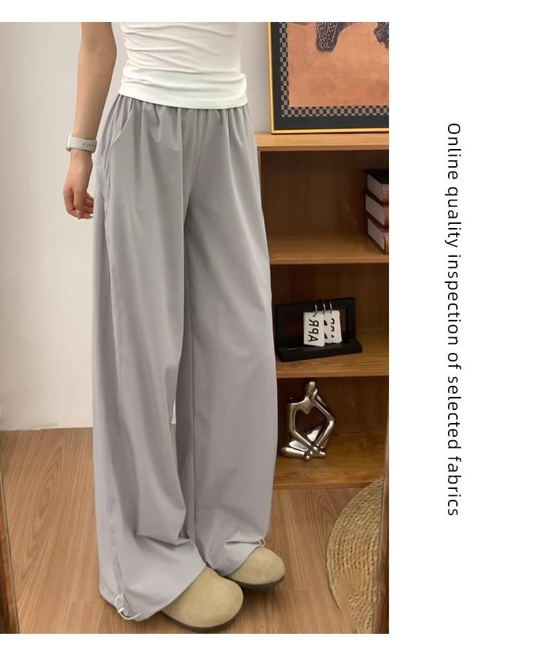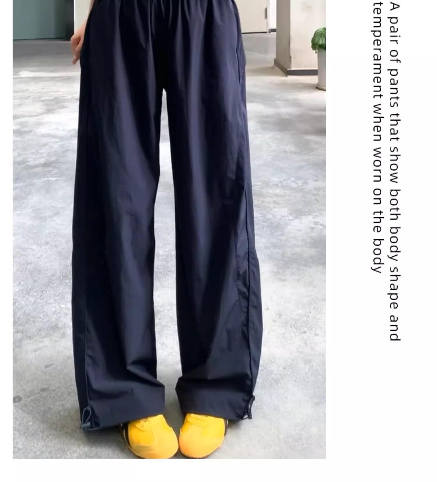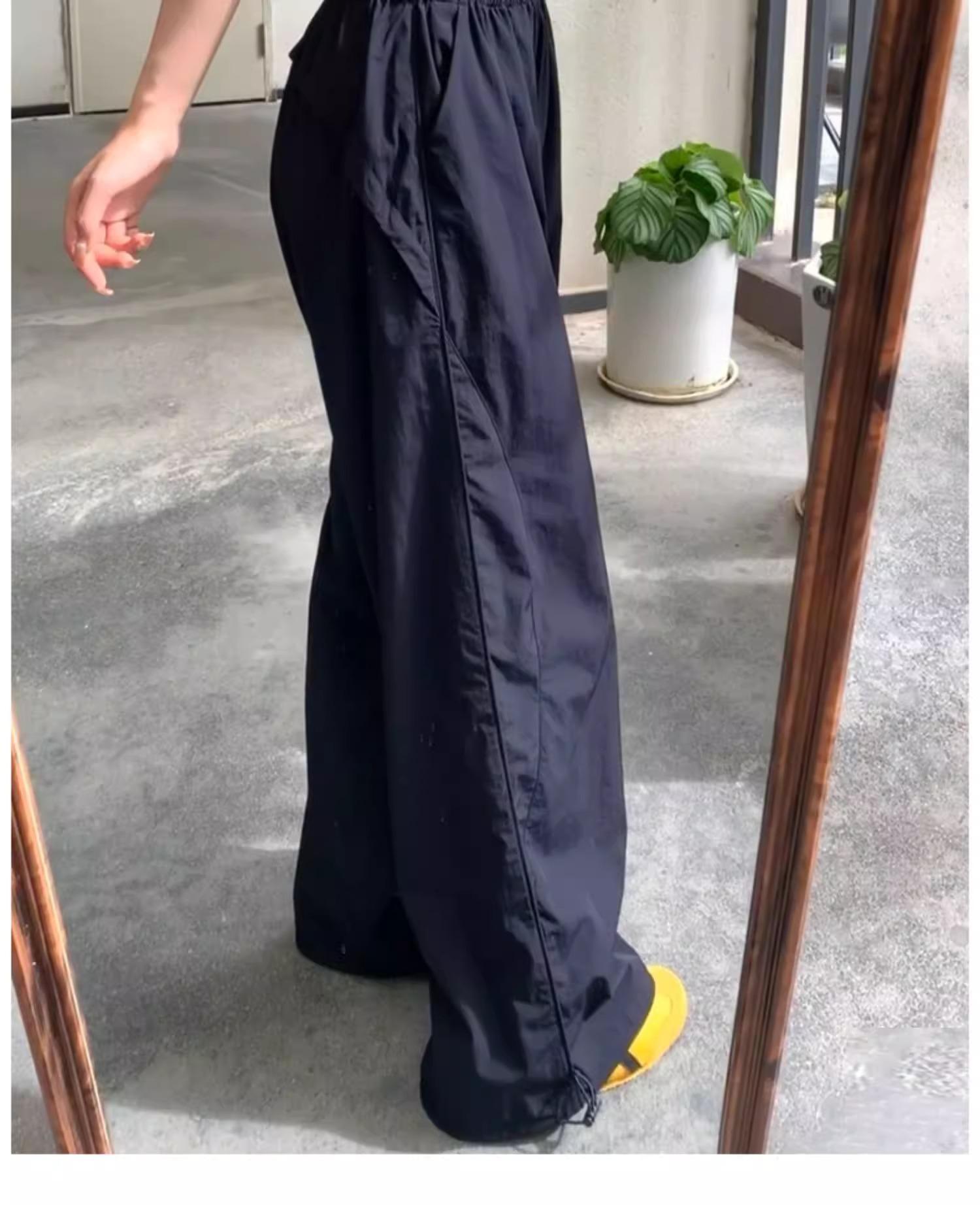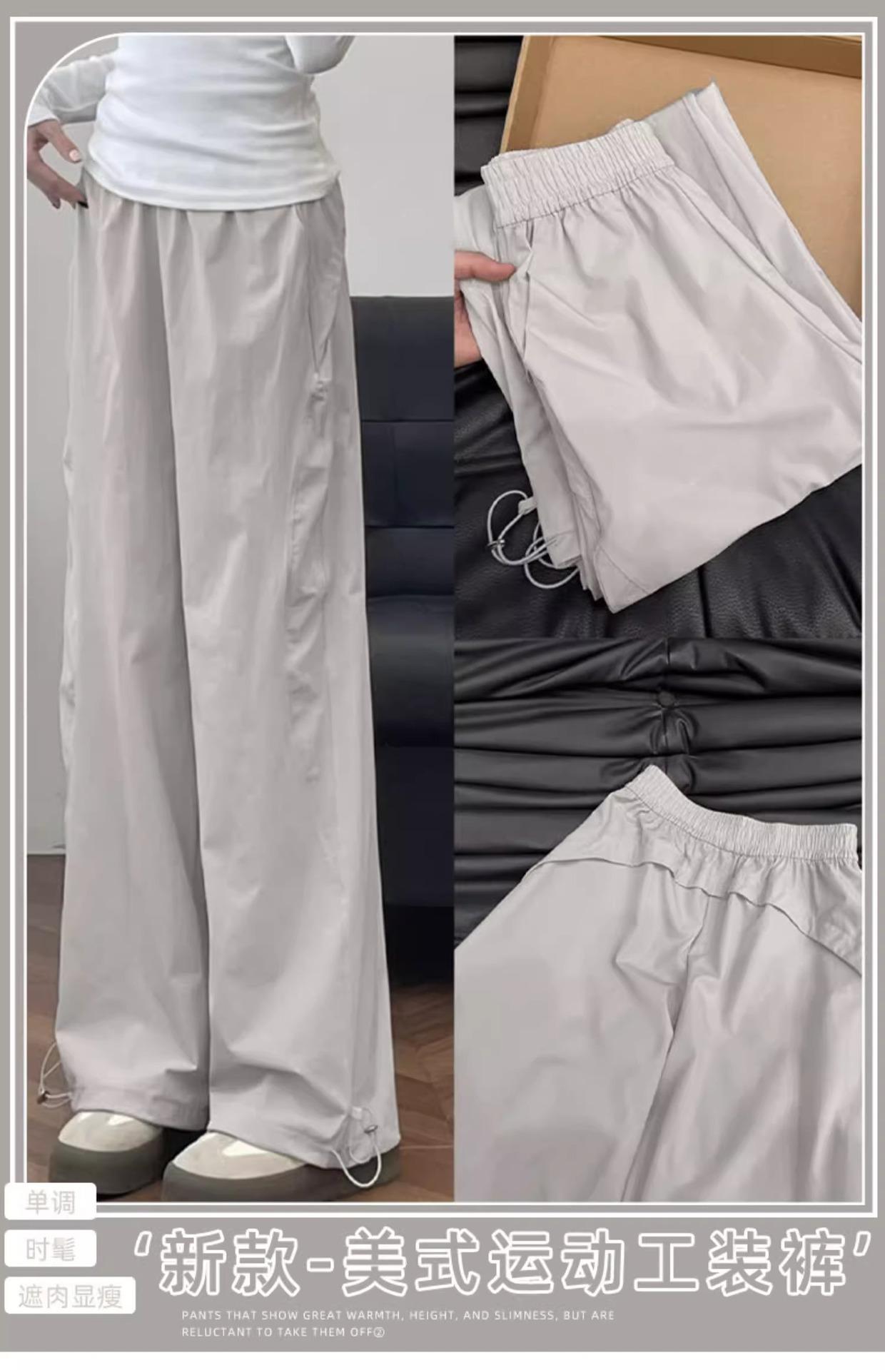 Pantalones deportivos retro de secado rápido para mujer 2025 Verano Nuevo Cintura alta Sueltos Slim Casual Pantalones largos Ropa de trabajo americana