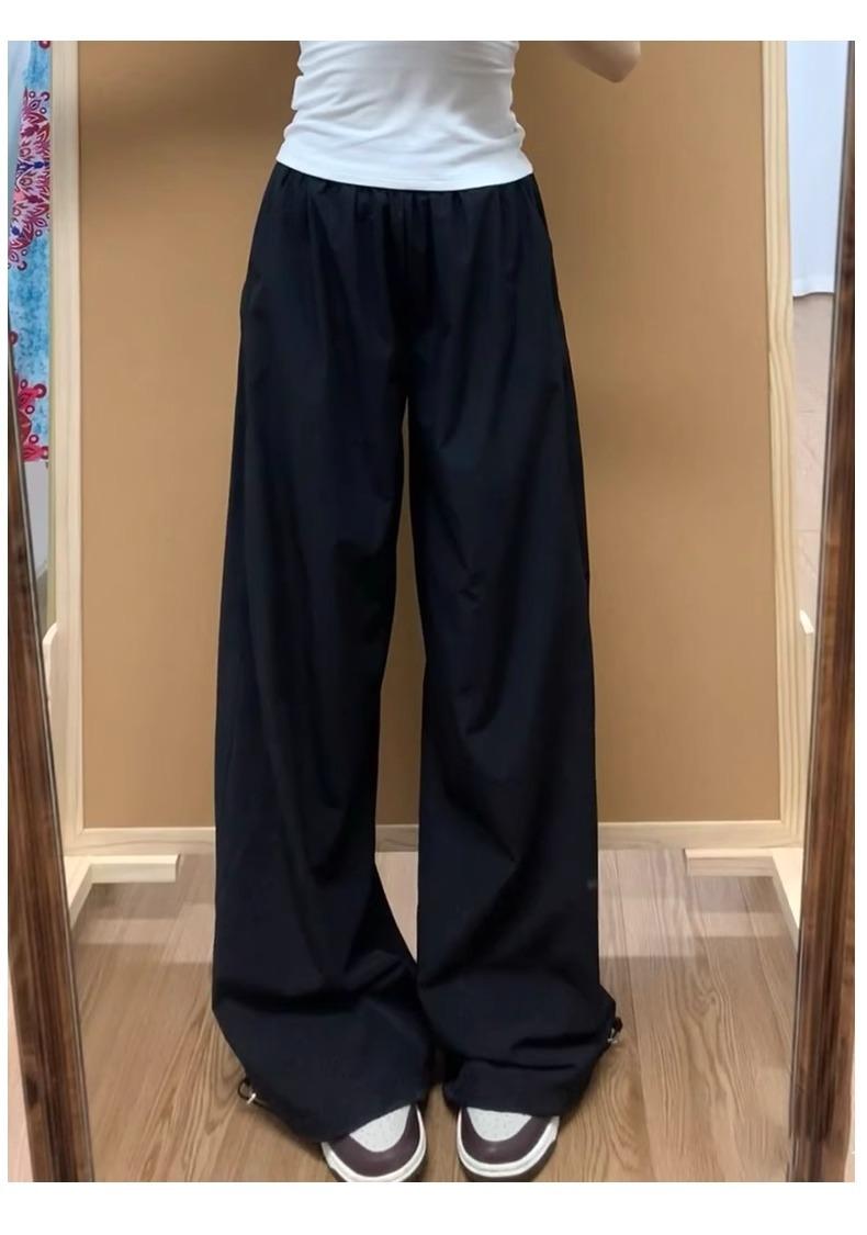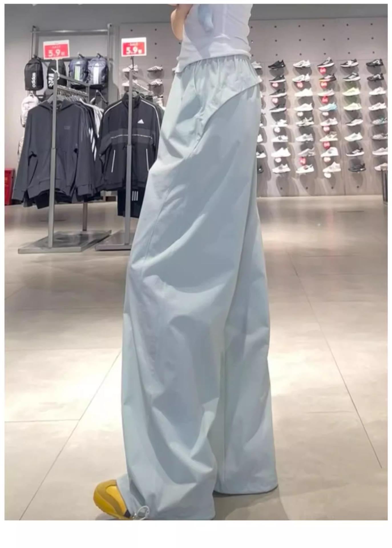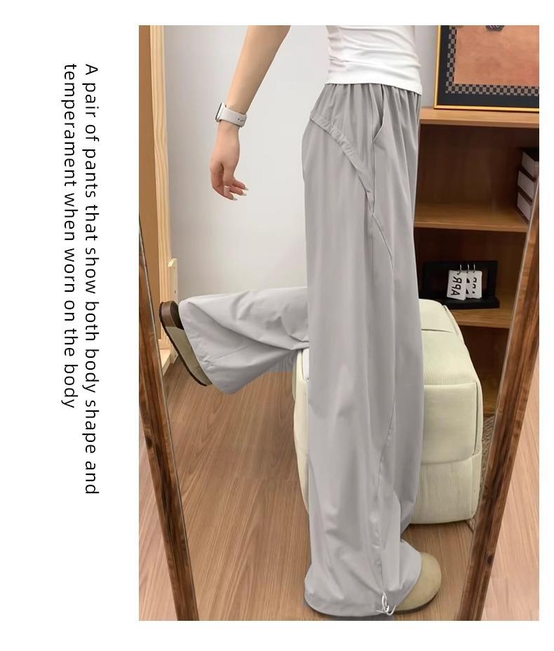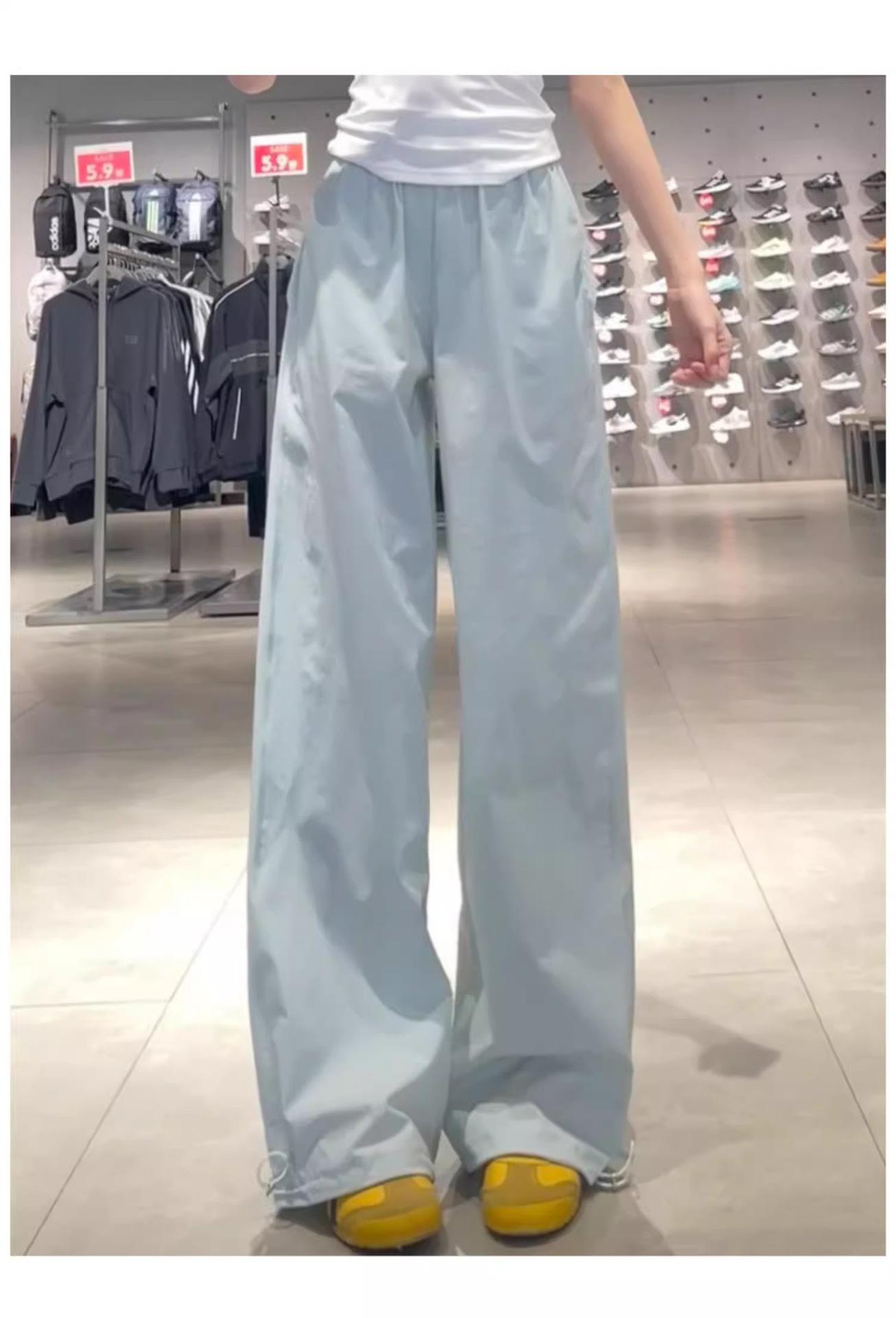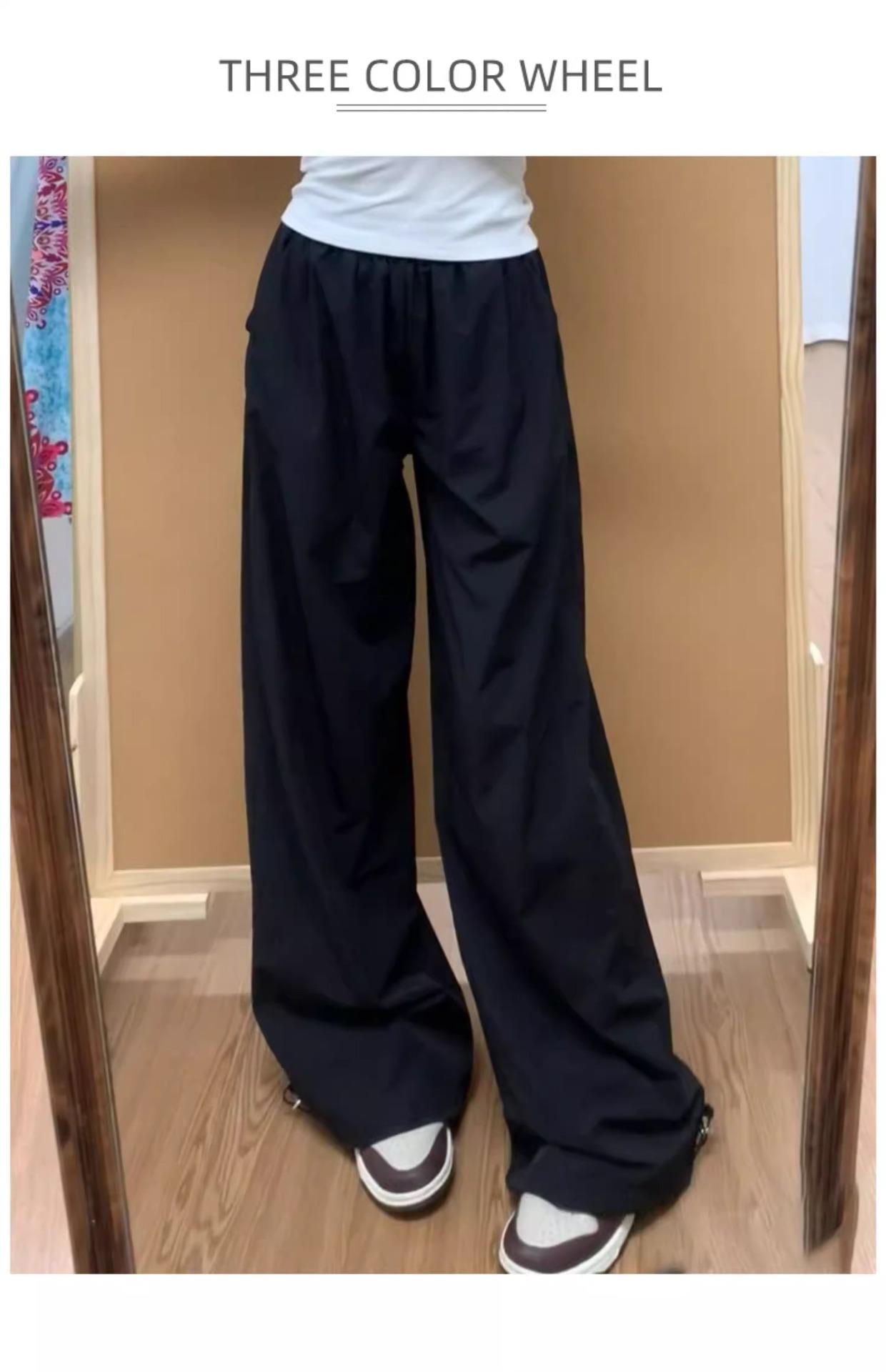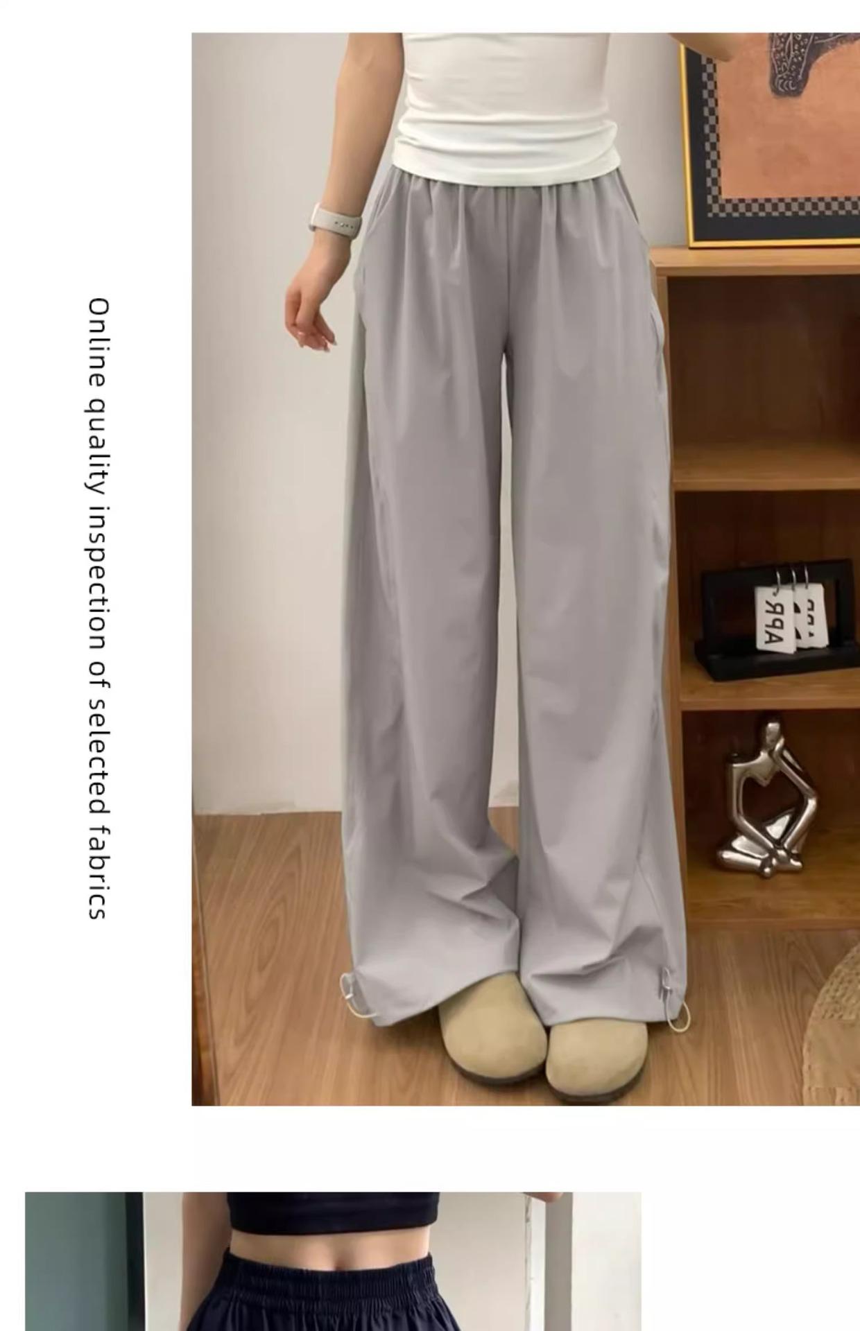 Pantalones deportivos retro de secado rápido para mujer 2025 Verano Nuevo Cintura alta Sueltos Slim Casual Pantalones largos Ropa de trabajo americana