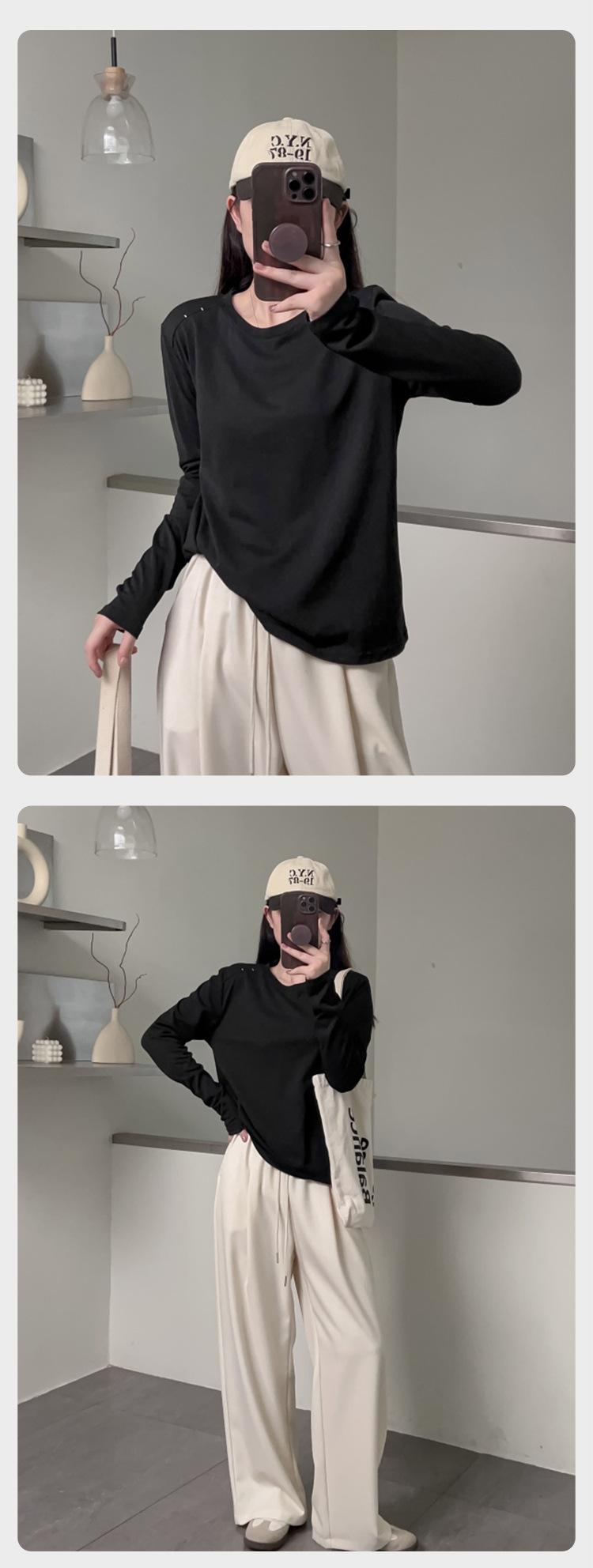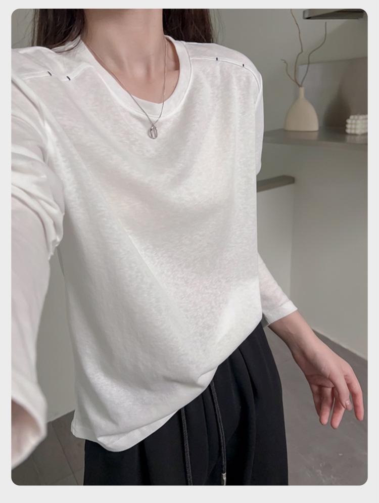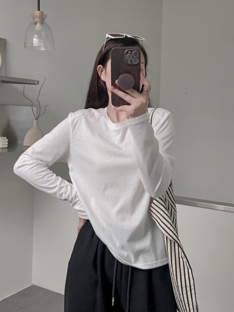 Playera Básica de Manga Larga y Cuello Redondo de Color Sólido para Mujer Otoño 2025 Nuevo Diseño Sentido Casual Temperamento Ropa Interior Top ZWT