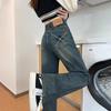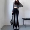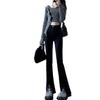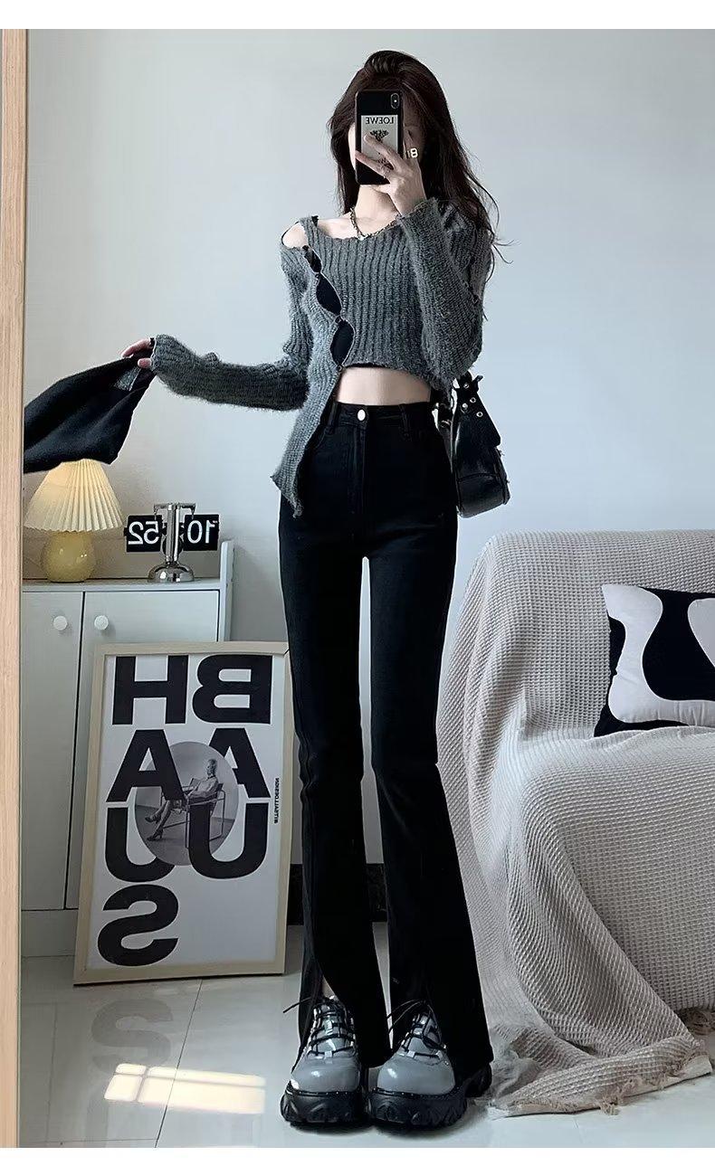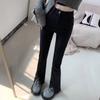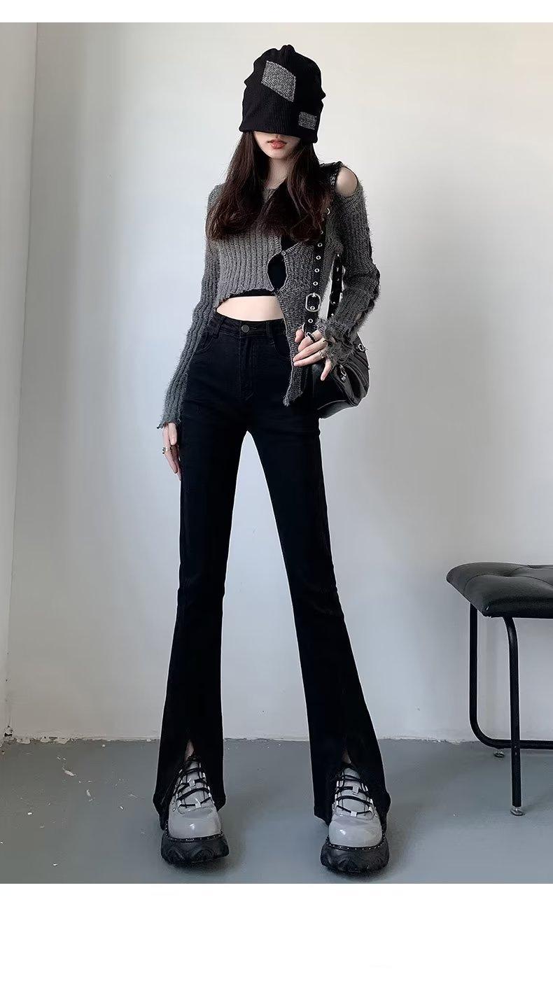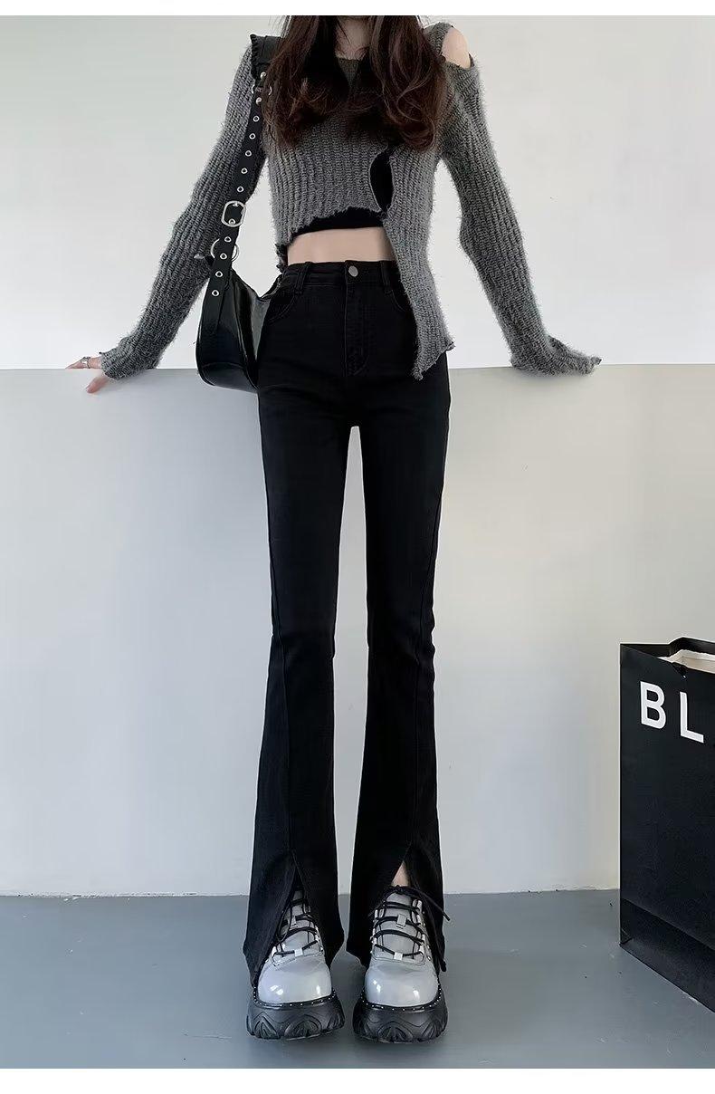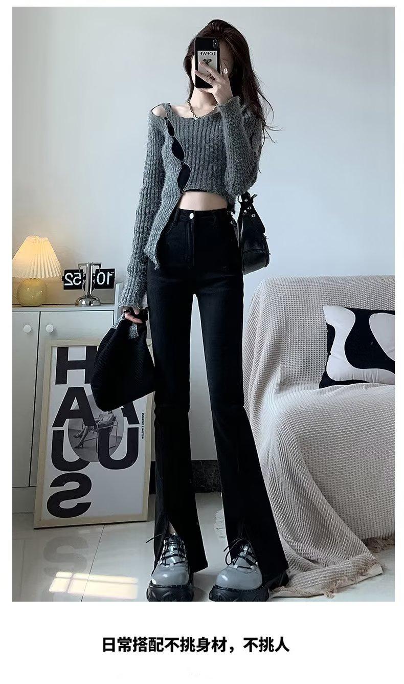 Jeans Rectos Negros con Abertura Edición Estrecha para Mujer Primavera y Otoño 2025 Nuevos Cintura Alta Adelgazantes Pantalones de Pierna Ancha Pequeños