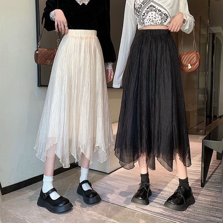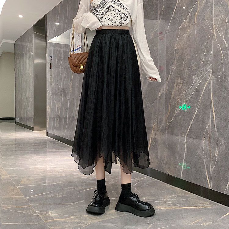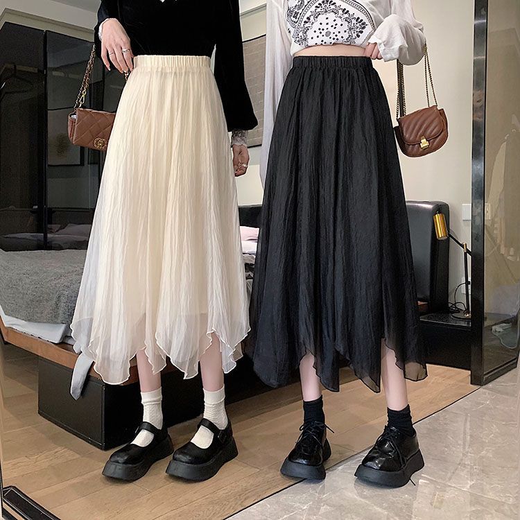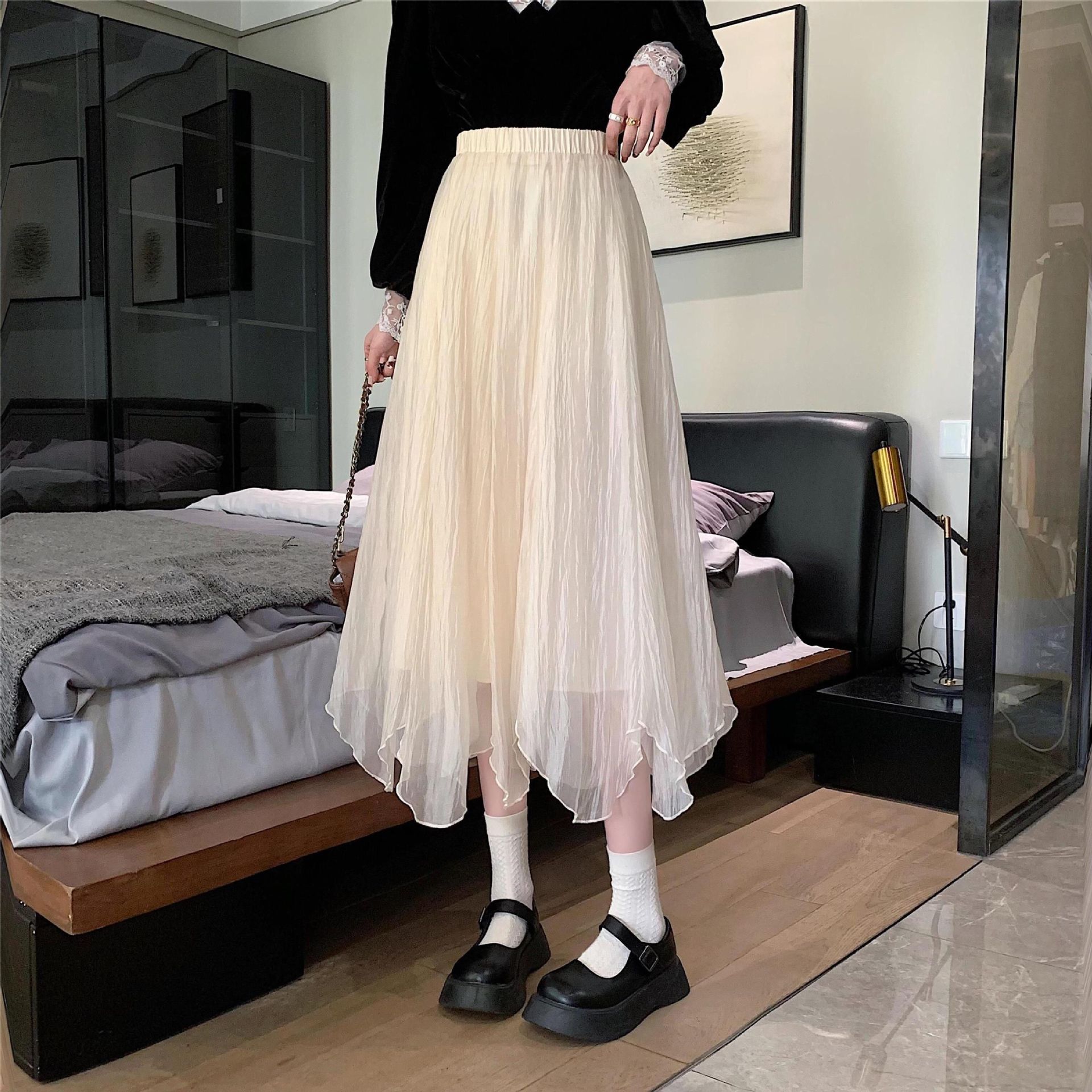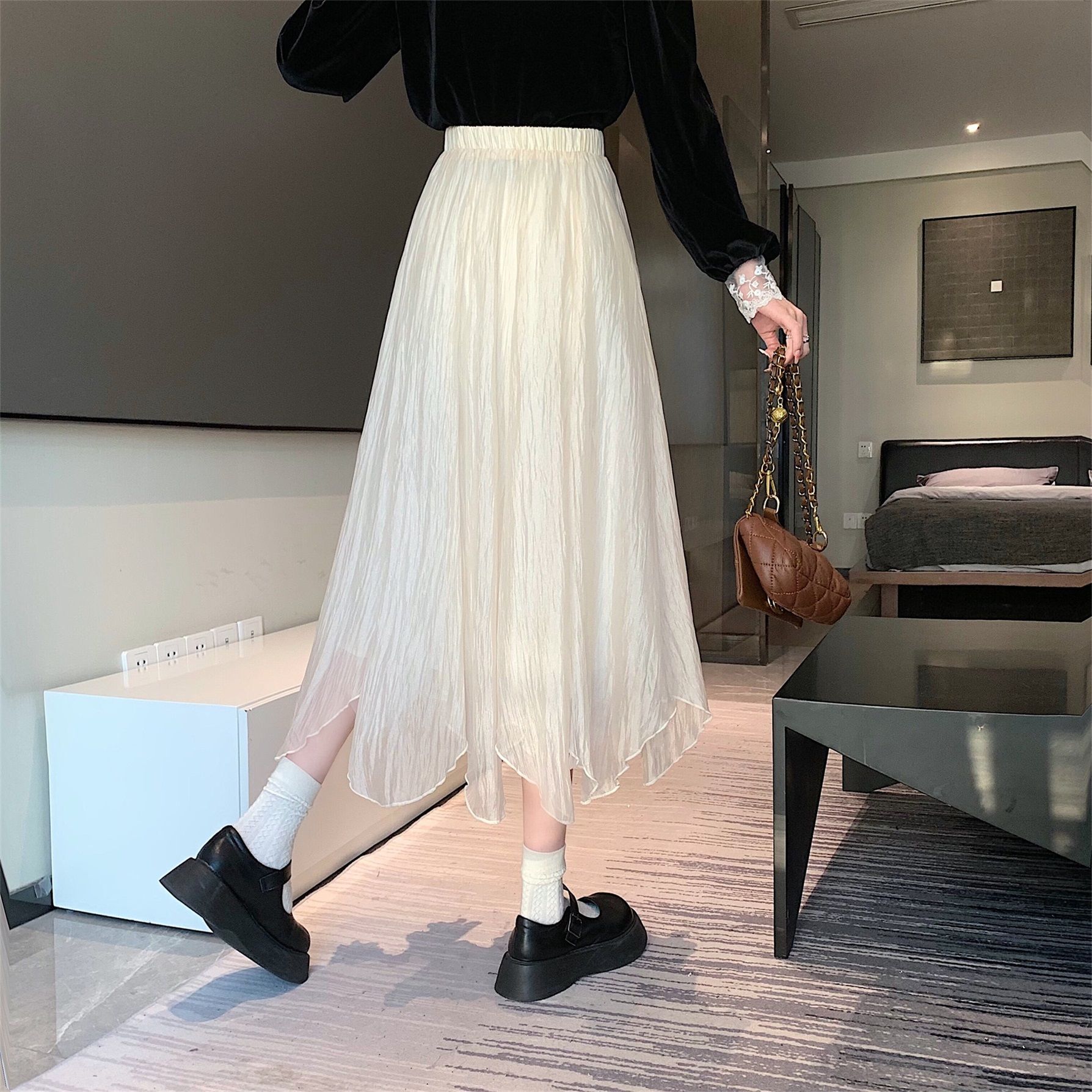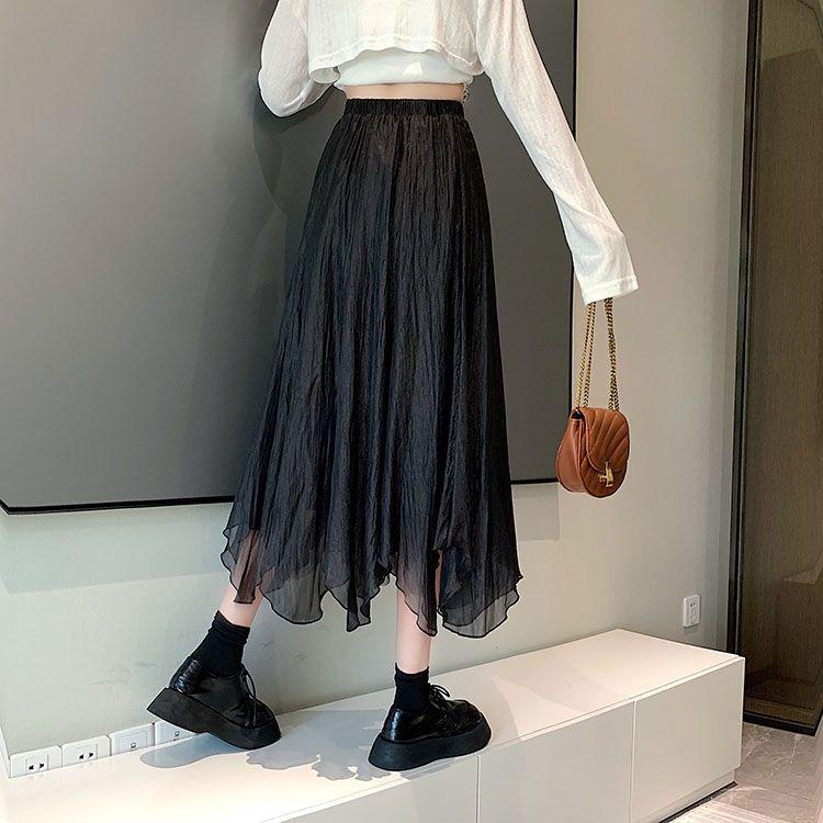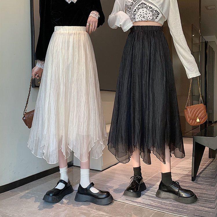 Primavera y Verano 2025 Nueva Falda de Gasa de Hada Línea A de Cintura Alta Suave Falda Larga Irregular Falda de Tencel para Mujer