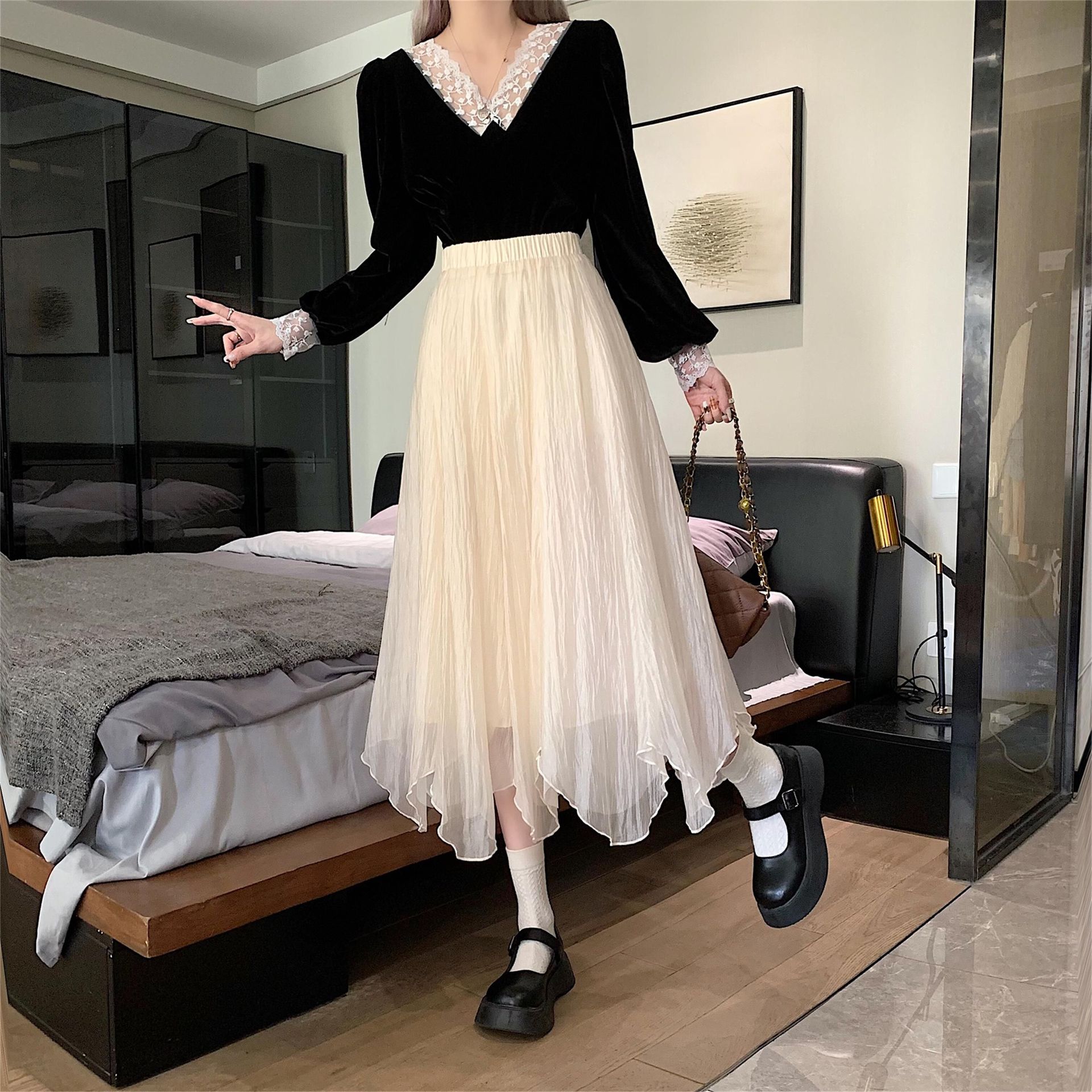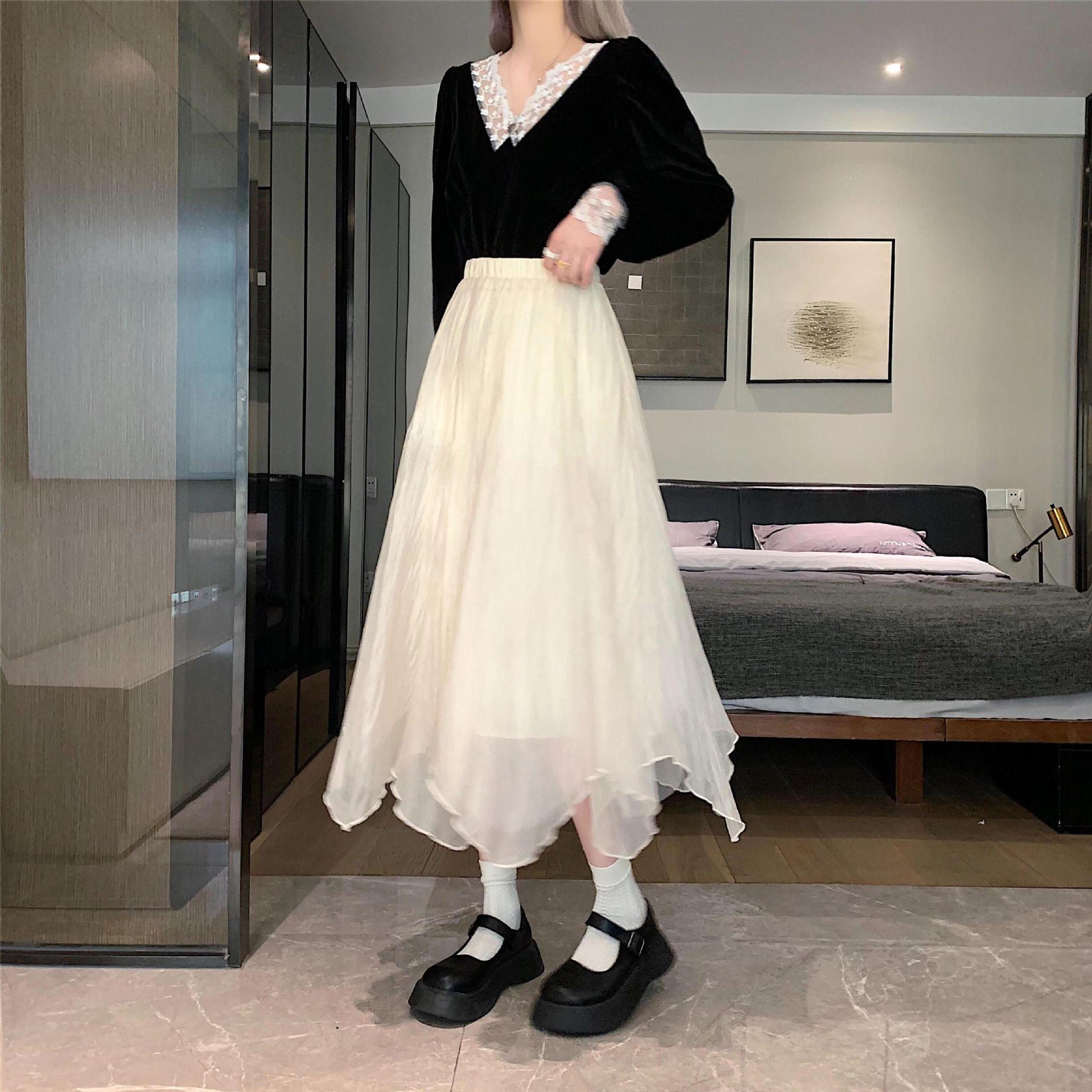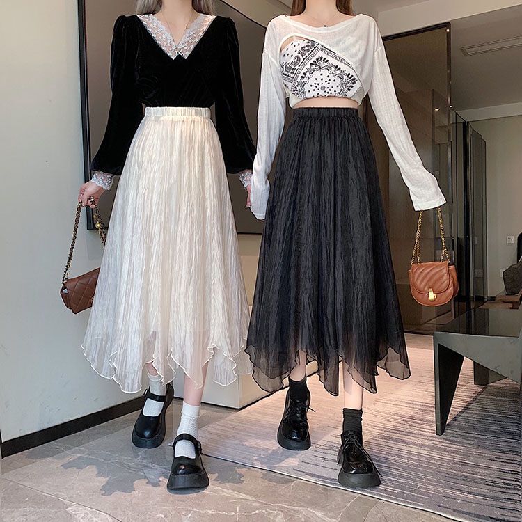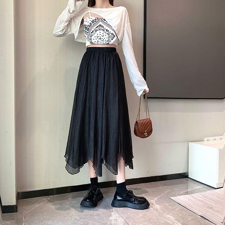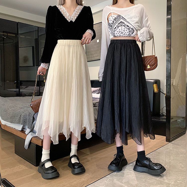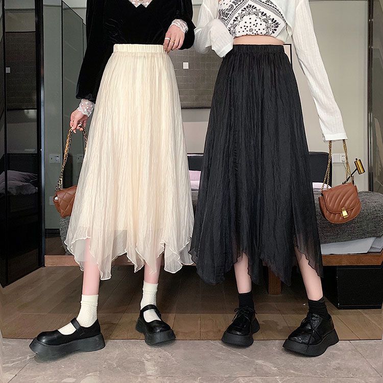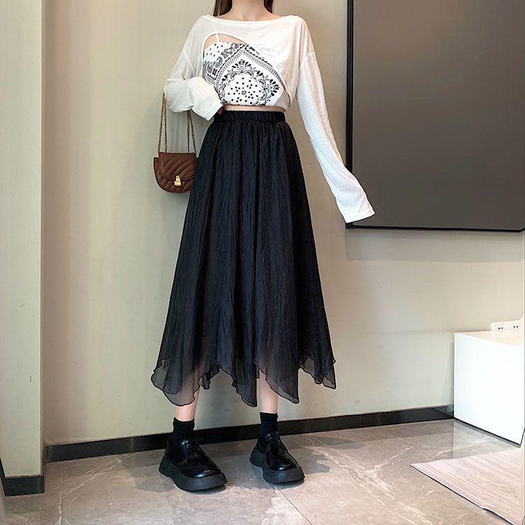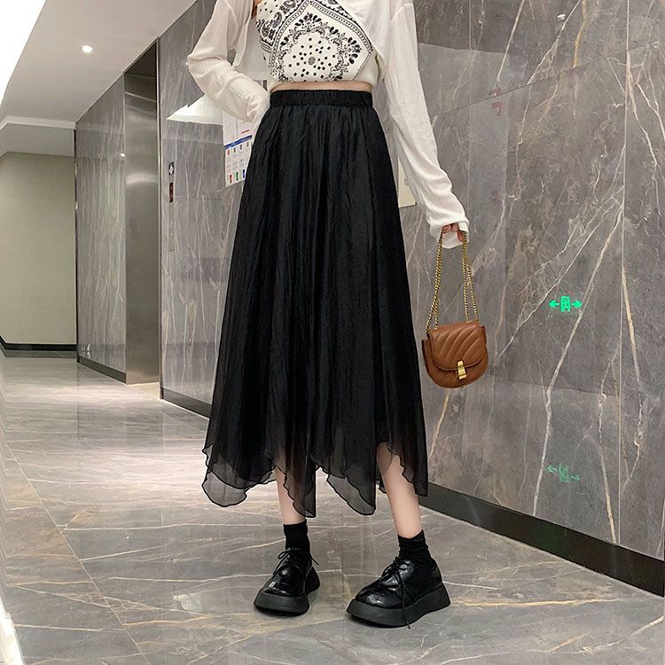 Primavera y Verano 2025 Nueva Falda de Gasa de Hada Línea A de Cintura Alta Suave Falda Larga Irregular Falda de Tencel para Mujer