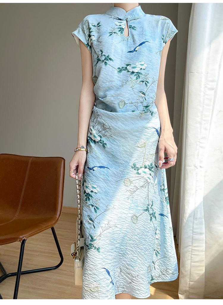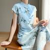 Vestido cheongsam mejorado de estilo nacional chino, nuevo y elegante, de verano 2024, para mujer, estampado y teñido, largo y combinable.