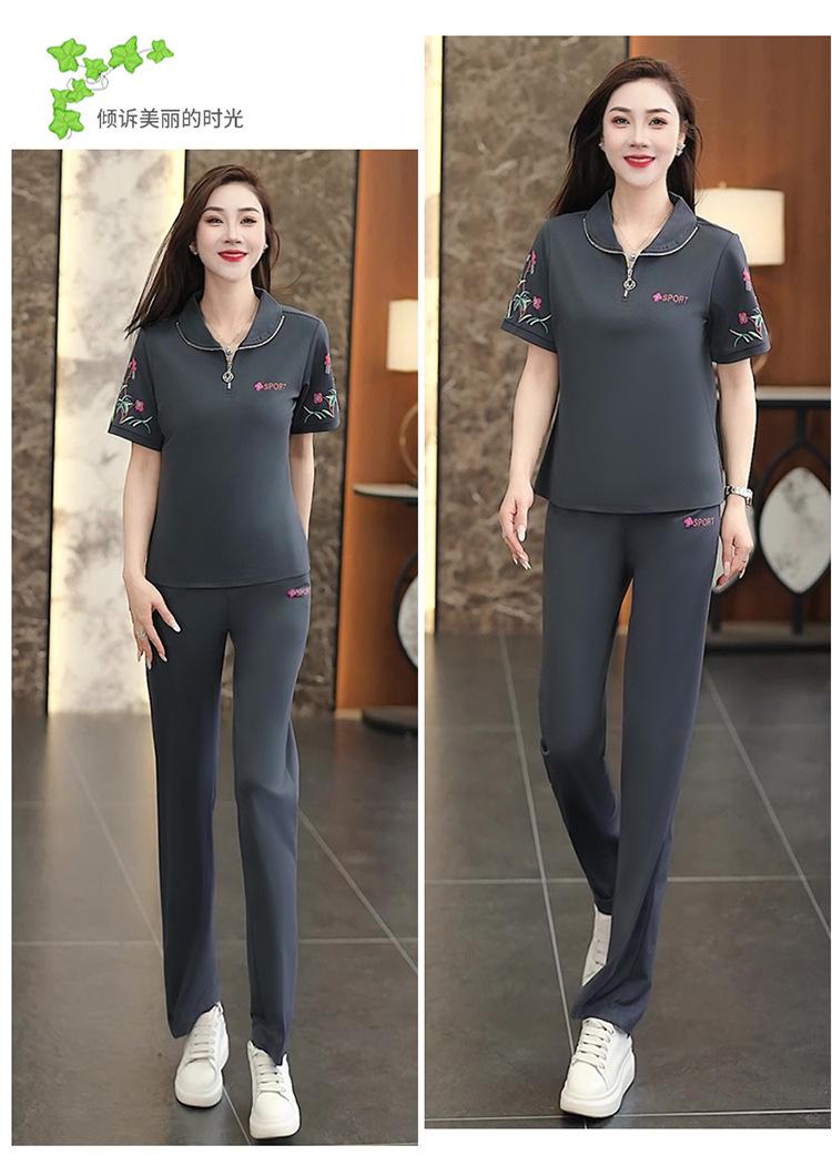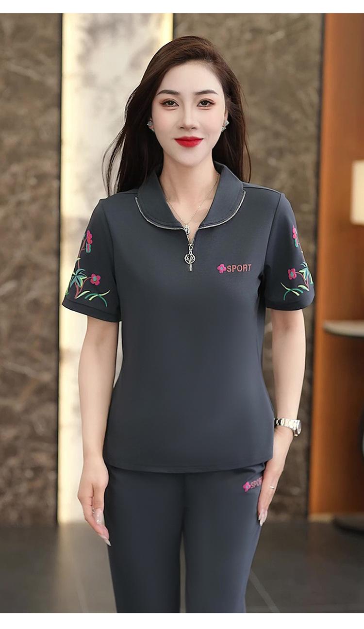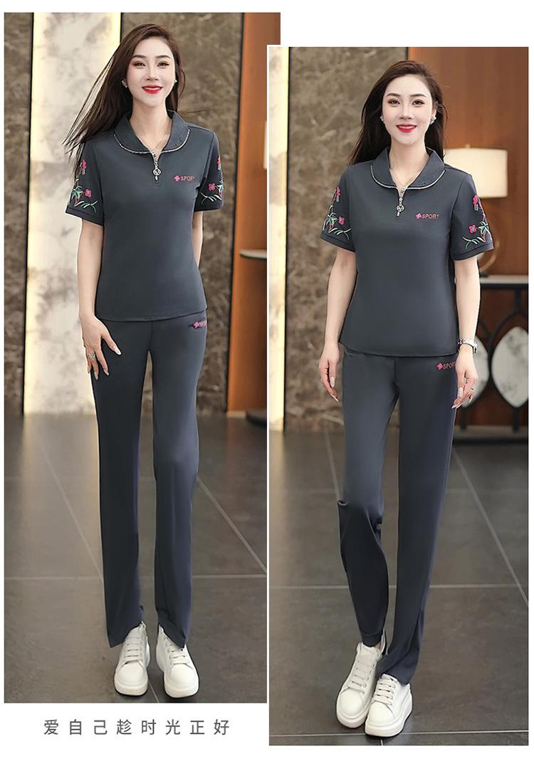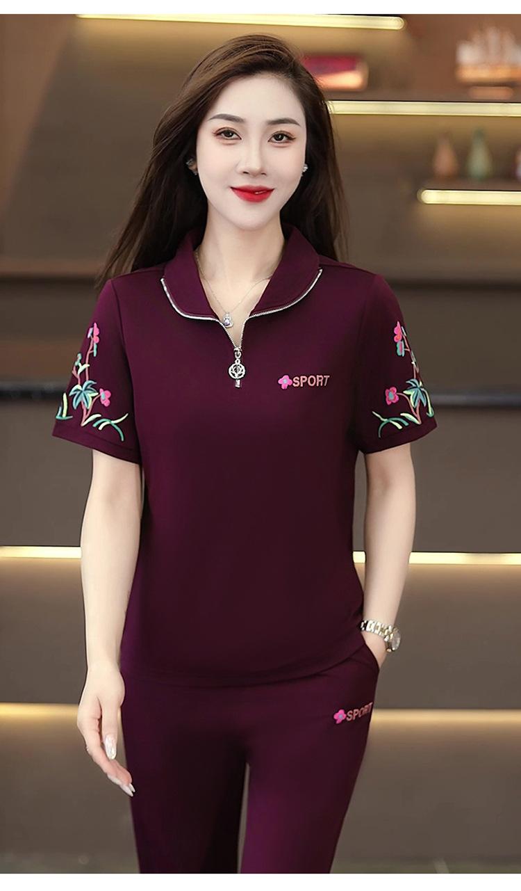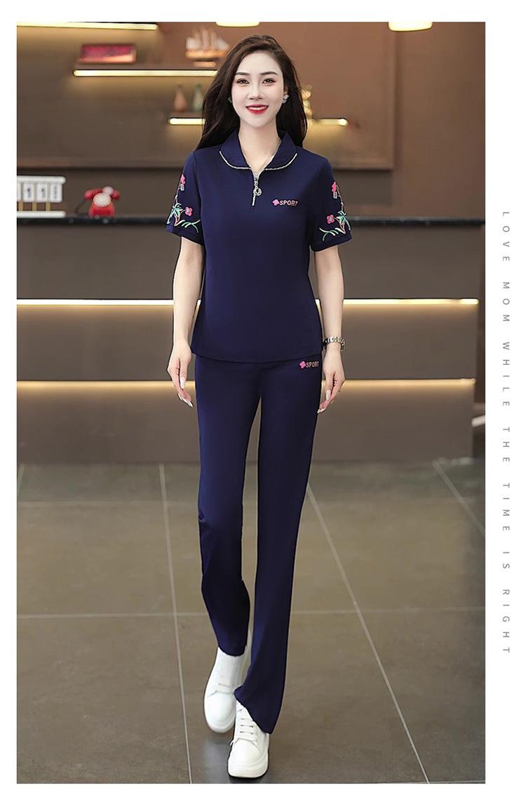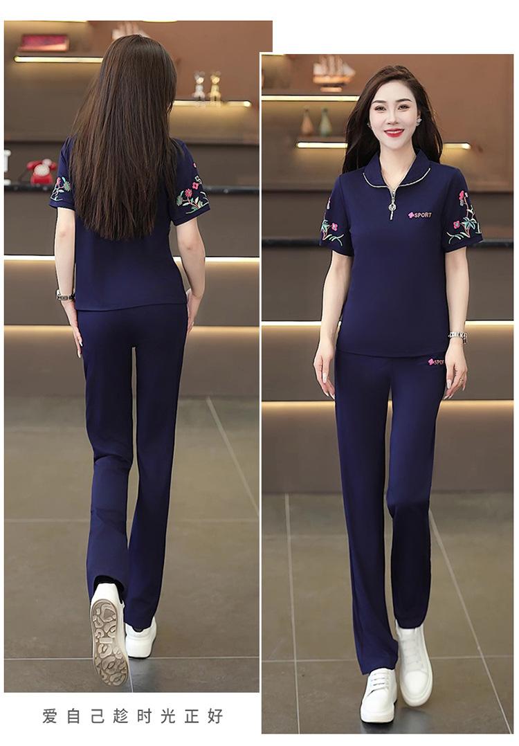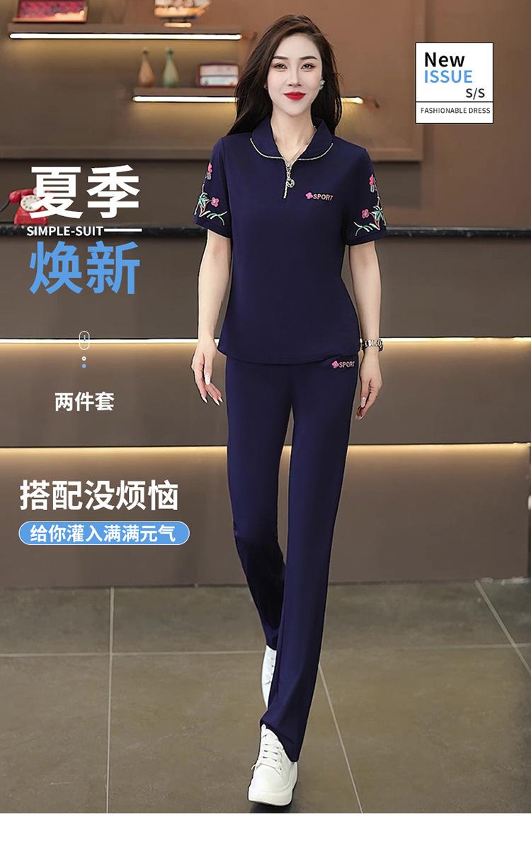 Traje Deportivo Casual de Seda de Hielo para Mujer, Nuevo Estilo de Verano, Tops Slim Bordados de Manga Corta, Pantalones de Pierna Ancha, Conjunto Moderno de Dos Piezas