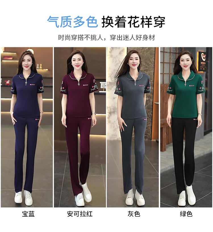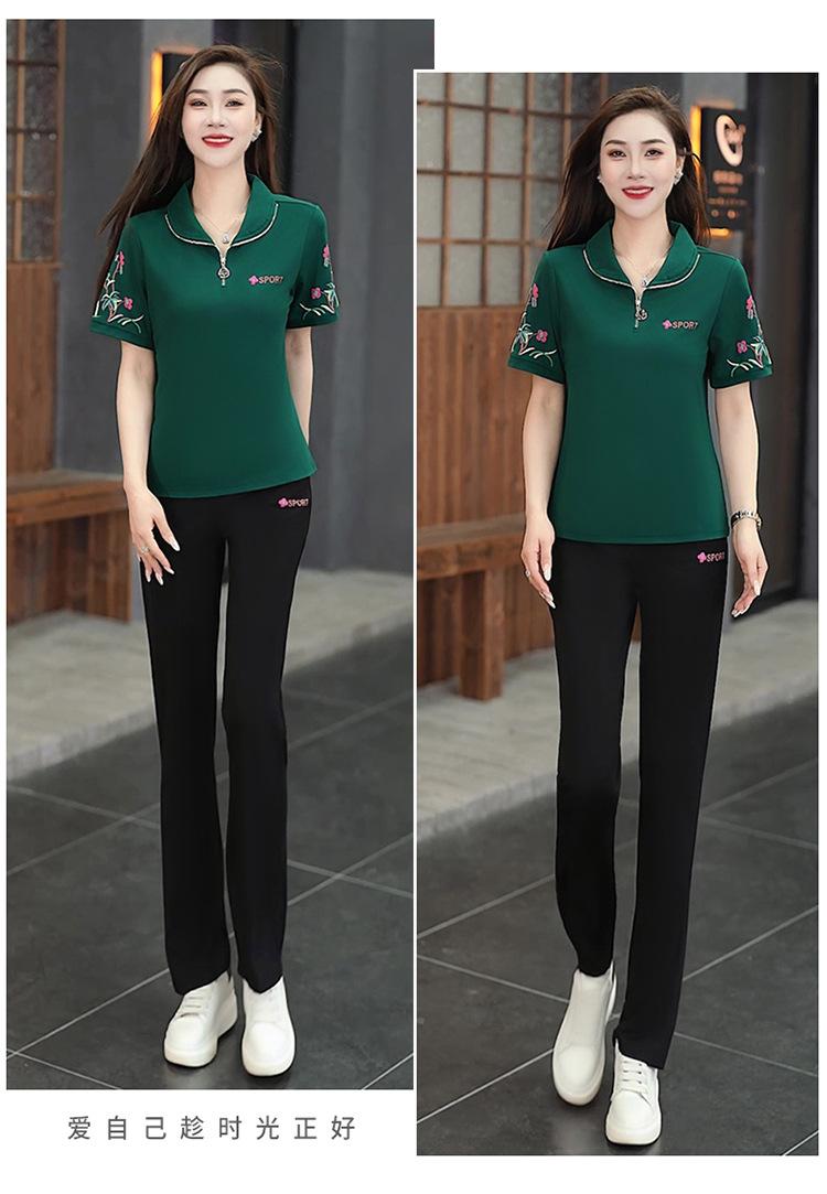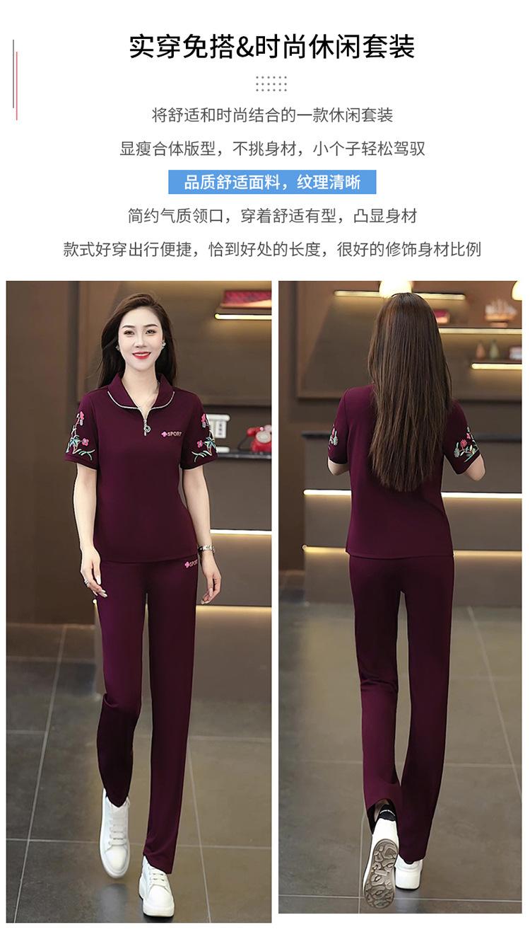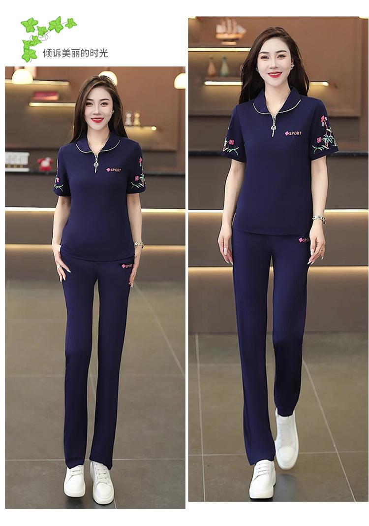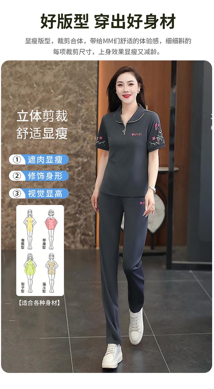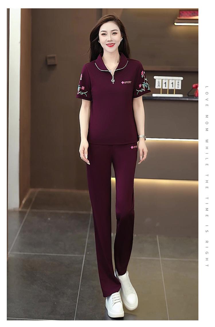 Traje Deportivo Casual de Seda de Hielo para Mujer, Nuevo Estilo de Verano, Tops Slim Bordados de Manga Corta, Pantalones de Pierna Ancha, Conjunto Moderno de Dos Piezas