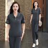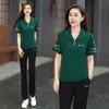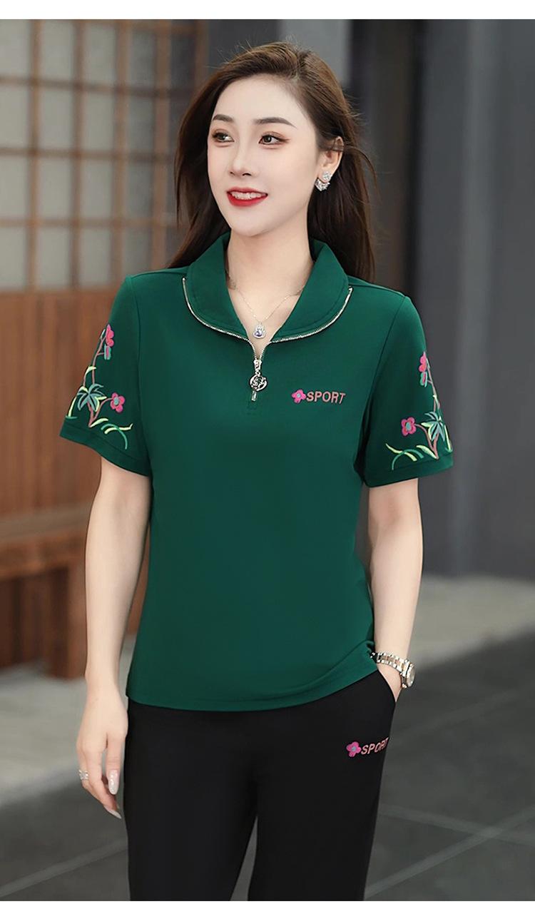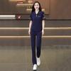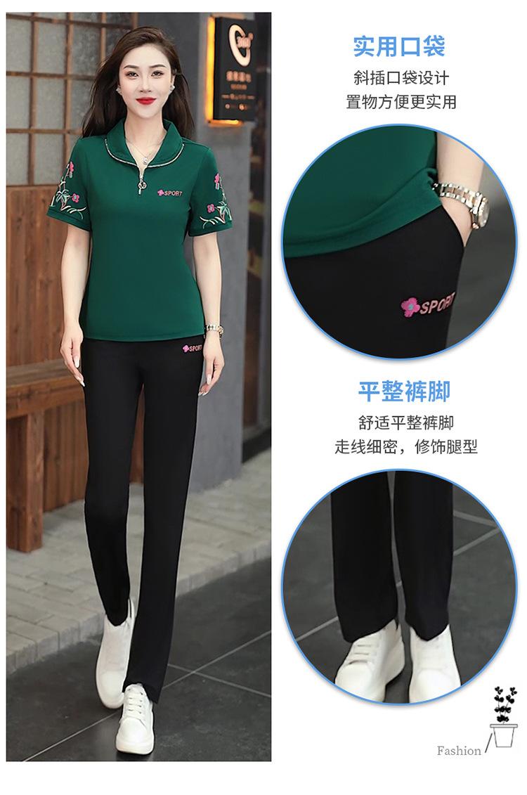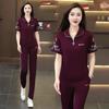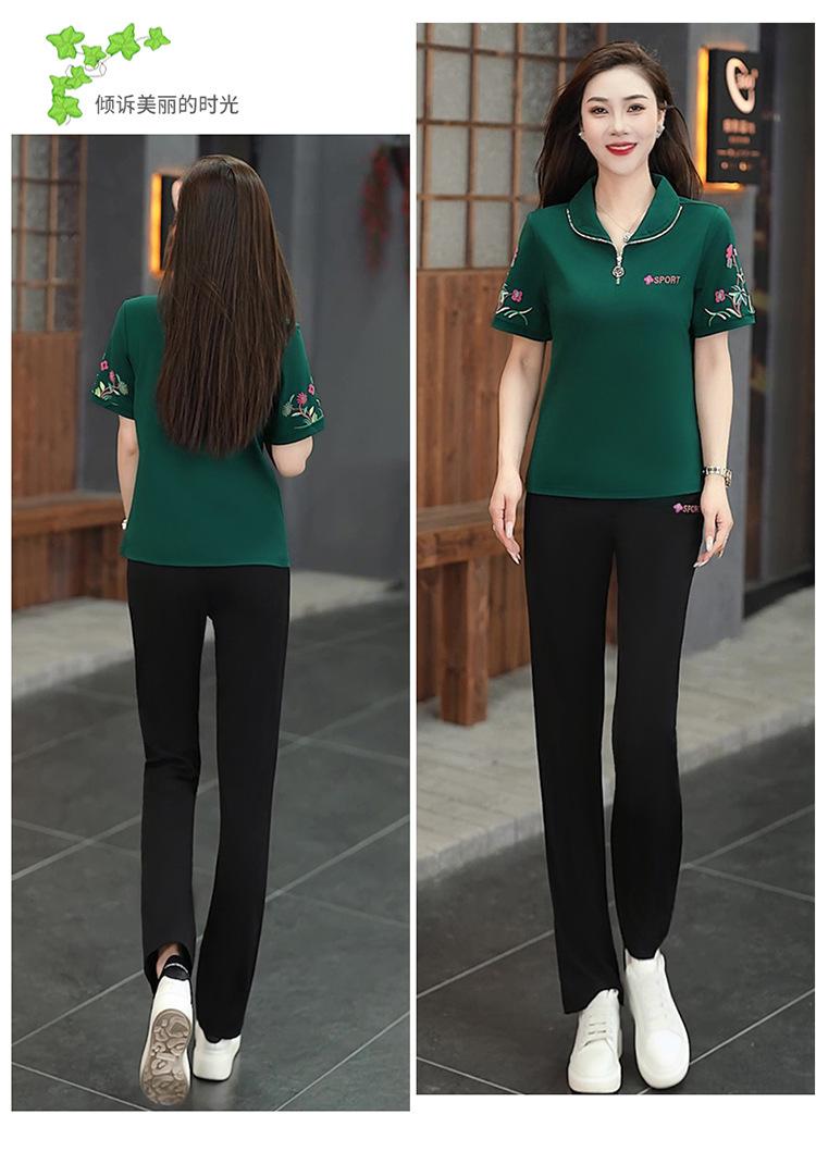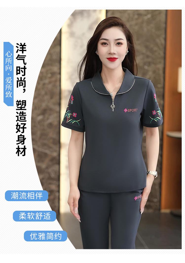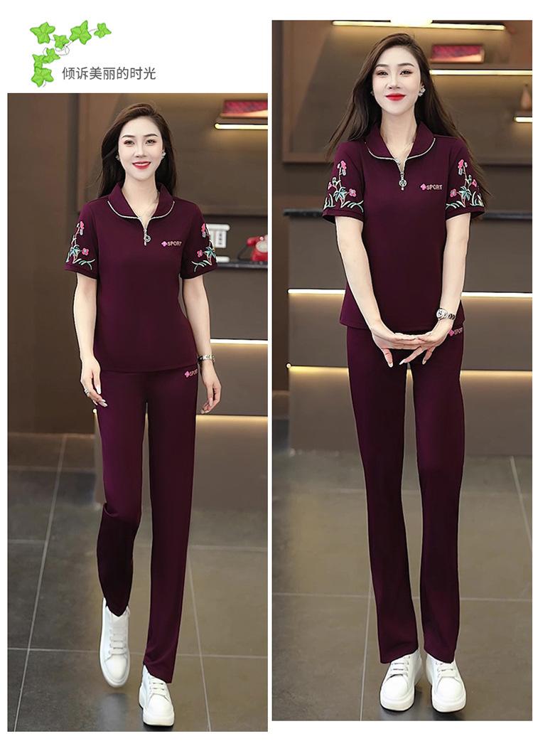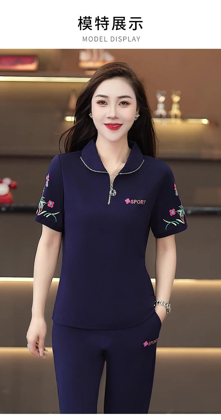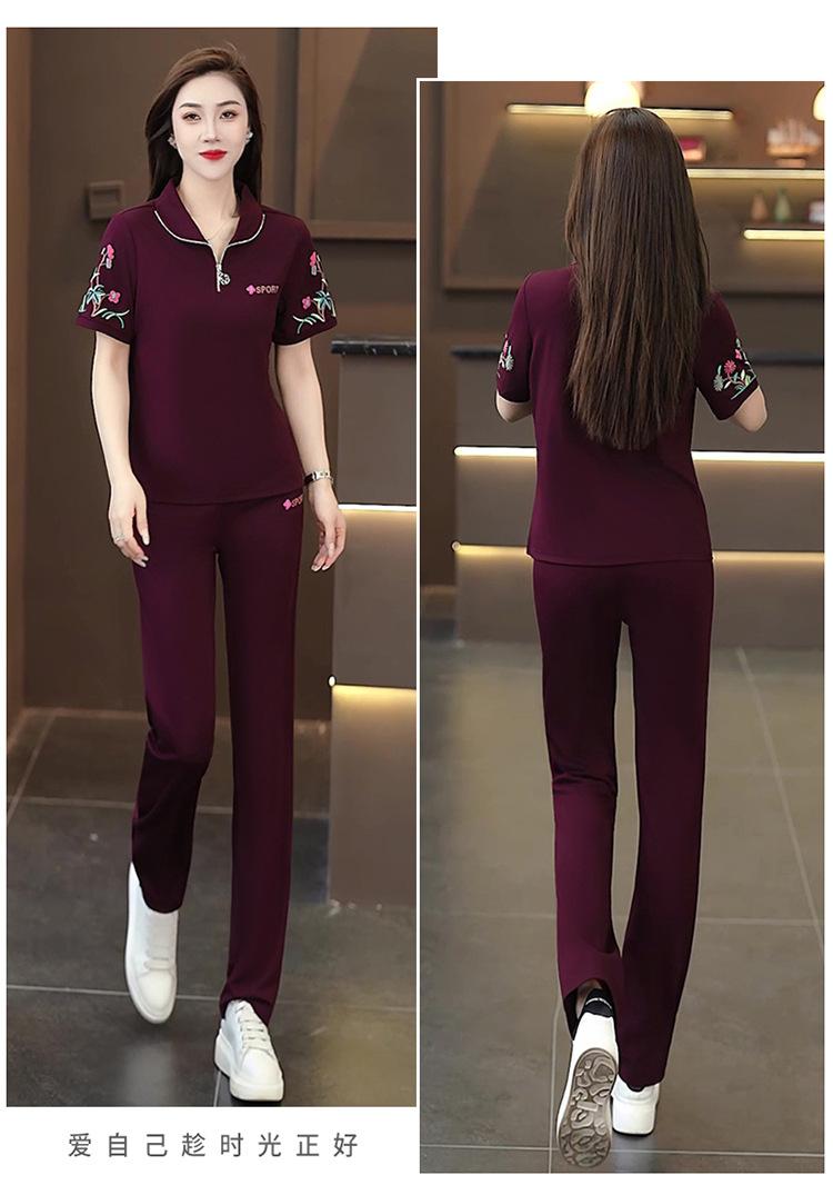 Traje Deportivo Casual de Seda de Hielo para Mujer, Nuevo Estilo de Verano, Tops Slim Bordados de Manga Corta, Pantalones de Pierna Ancha, Conjunto Moderno de Dos Piezas