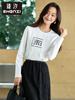 Camiseta de Cuello Redondo Bordada con Letra Zhenxi Nueva para Mujer Manga Larga Bordado Digital Blanco Hombro Derecho Top Sq965