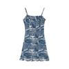 Verano 2022 Nueva Llegada Vestido Ajustado Sexy con Abertura Lateral y Tirantes Estampado Pintura a Tinta Vintage Vestido Largo para Vacaciones en la Playa
