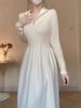 Otoño e invierno nuevo temperamento elegante cremallera vestido interior para mujer adelgazante de cintura midi sobre la rodilla vestido de lana línea A