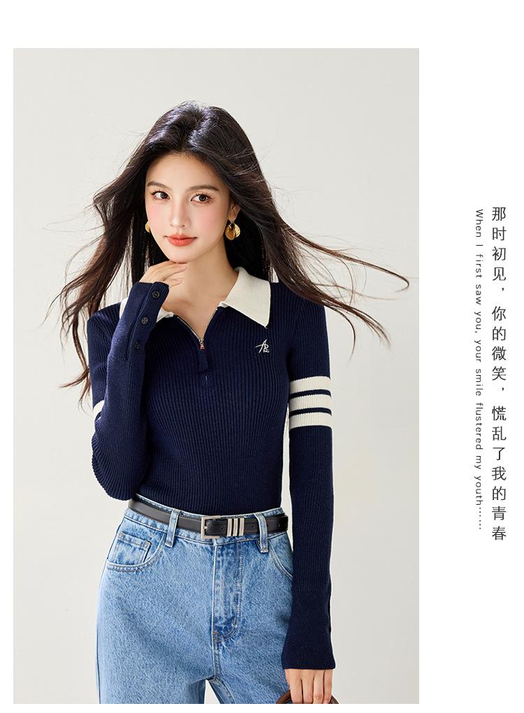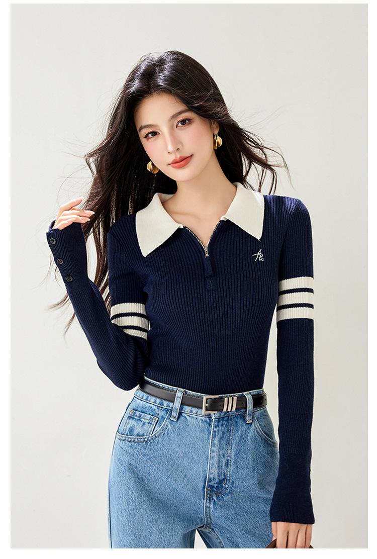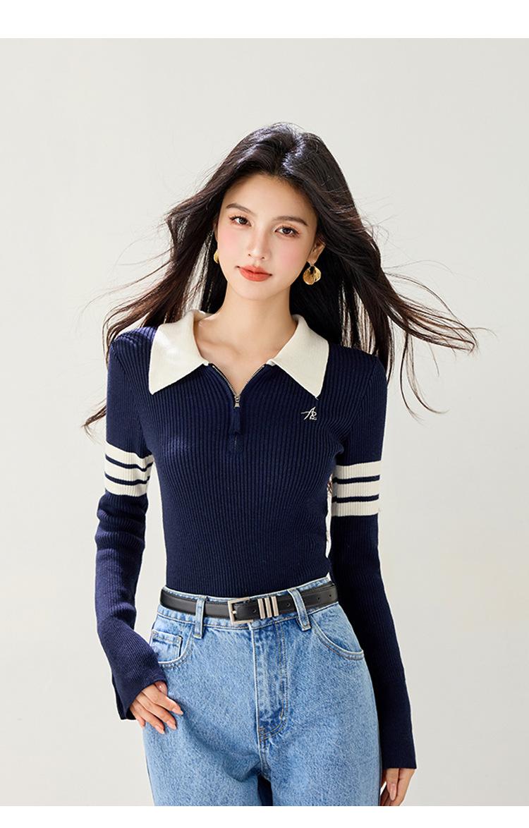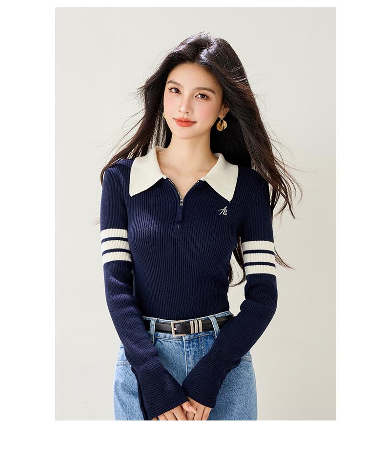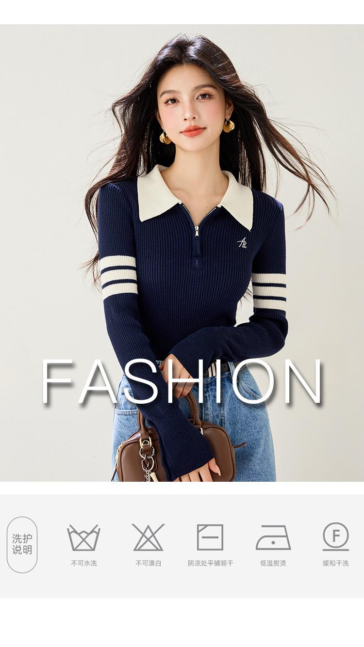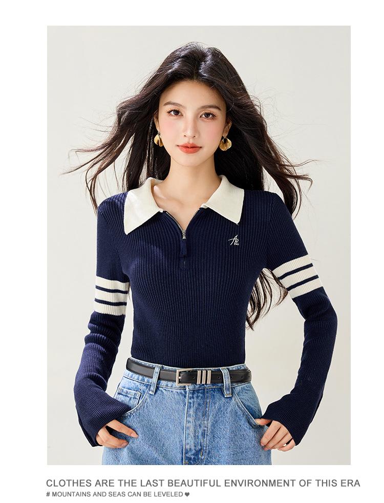Suéter de Punto Ajustado de Media Cremallera Retro Americano 2025 para Mujer, Estilo Nuevo de Otoño e Invierno, Capa Interior Base, A5848