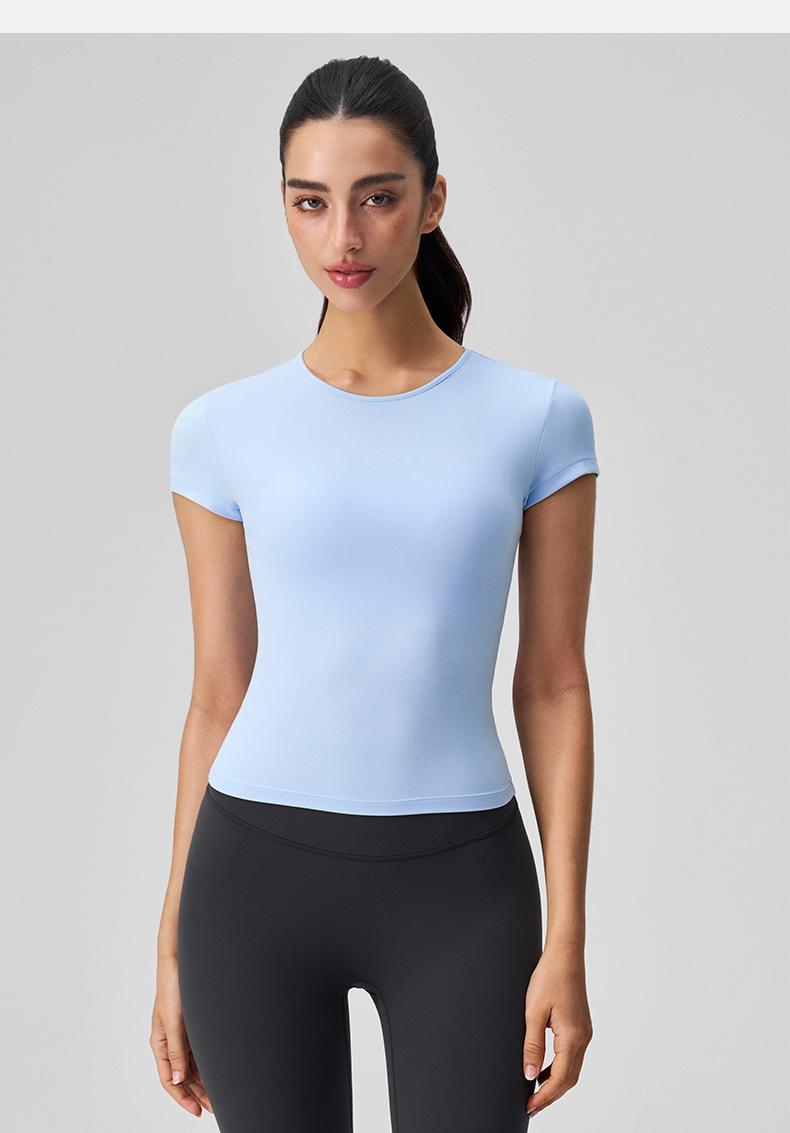 Tops de Yoga de Verano para Mujer, Alta Elasticidad, Ropa de Yoga Cómoda de Sensación Desnuda, Adelgazantes, de Secado Rápido, Mangas Cortas Deportivas para Correr Transpirables
