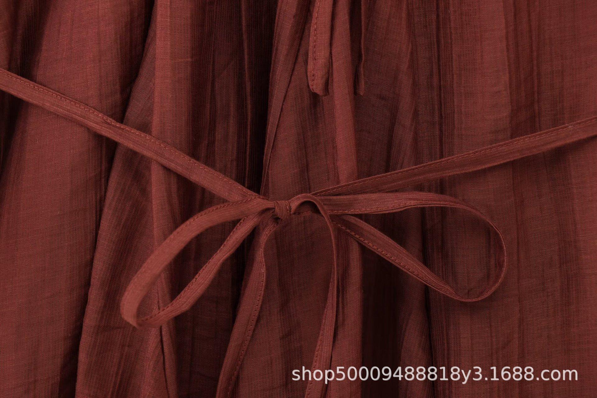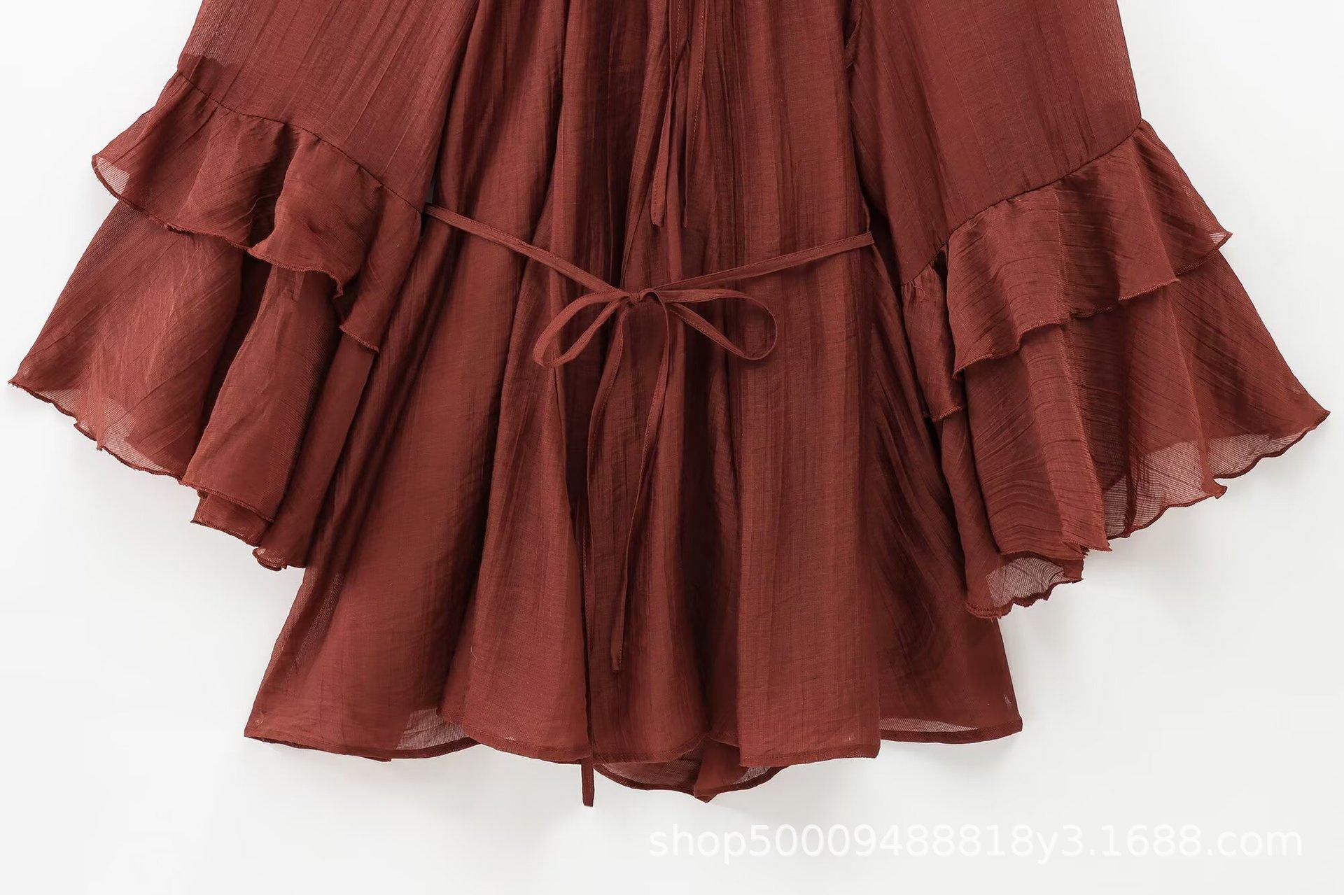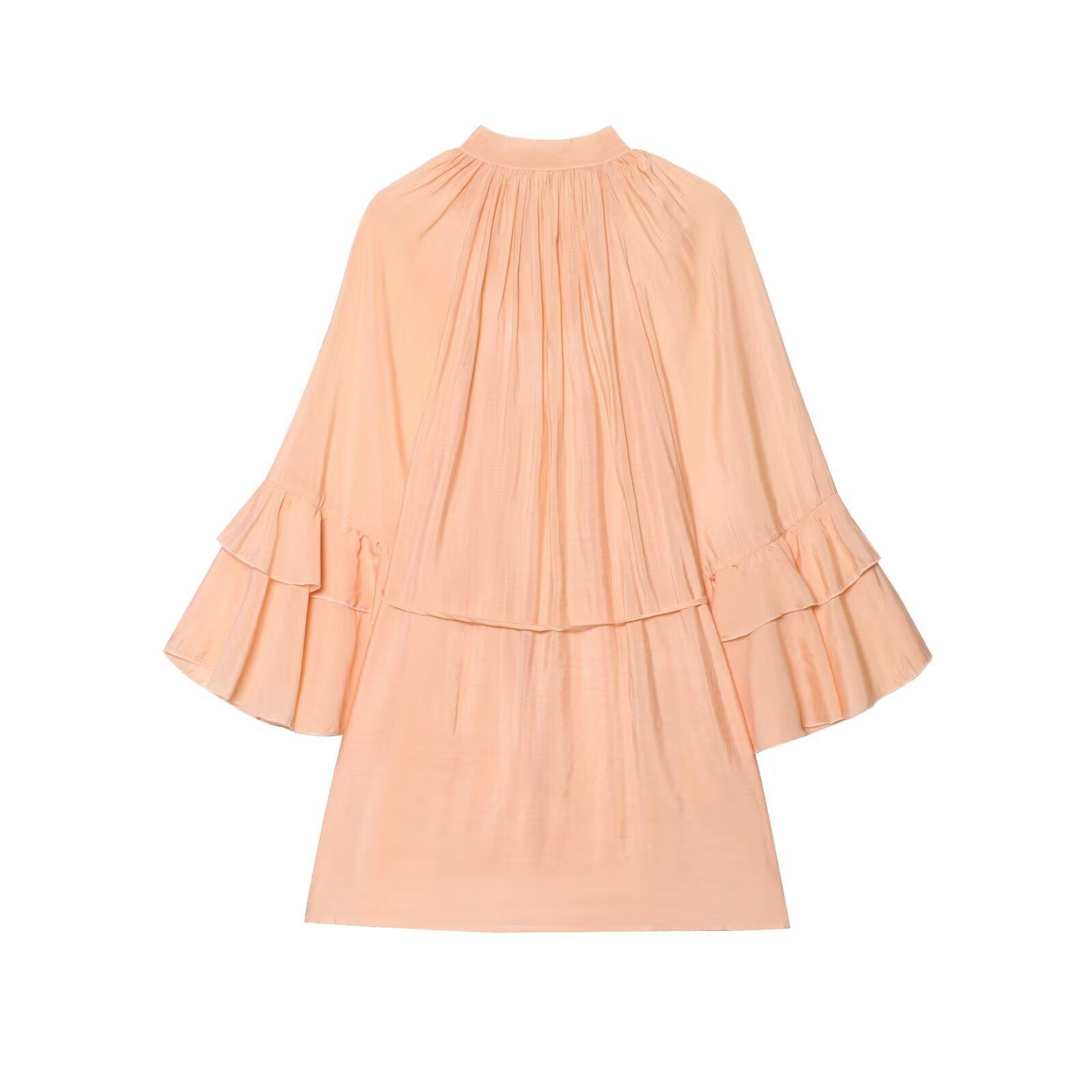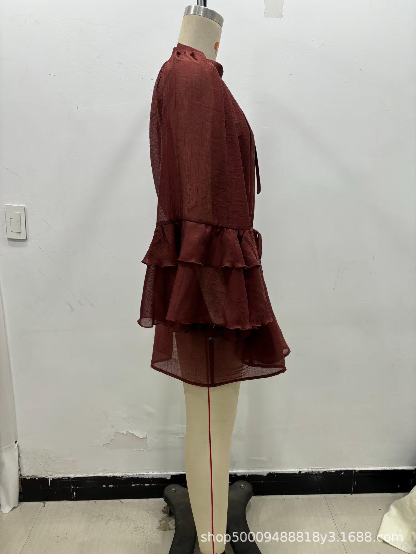 Ropa de Mujer de Comercio Exterior al por Mayor 2025 Verano Nuevo Estilo Europeo y Americano Vestido Holgado de Manga Larga con Volantes y Lazo 1273151