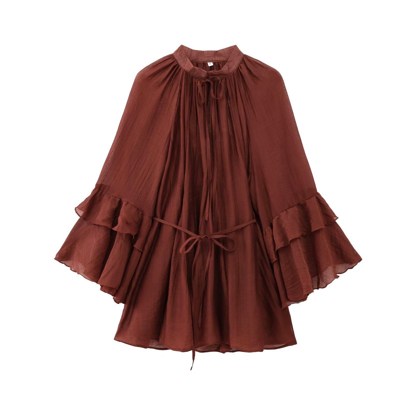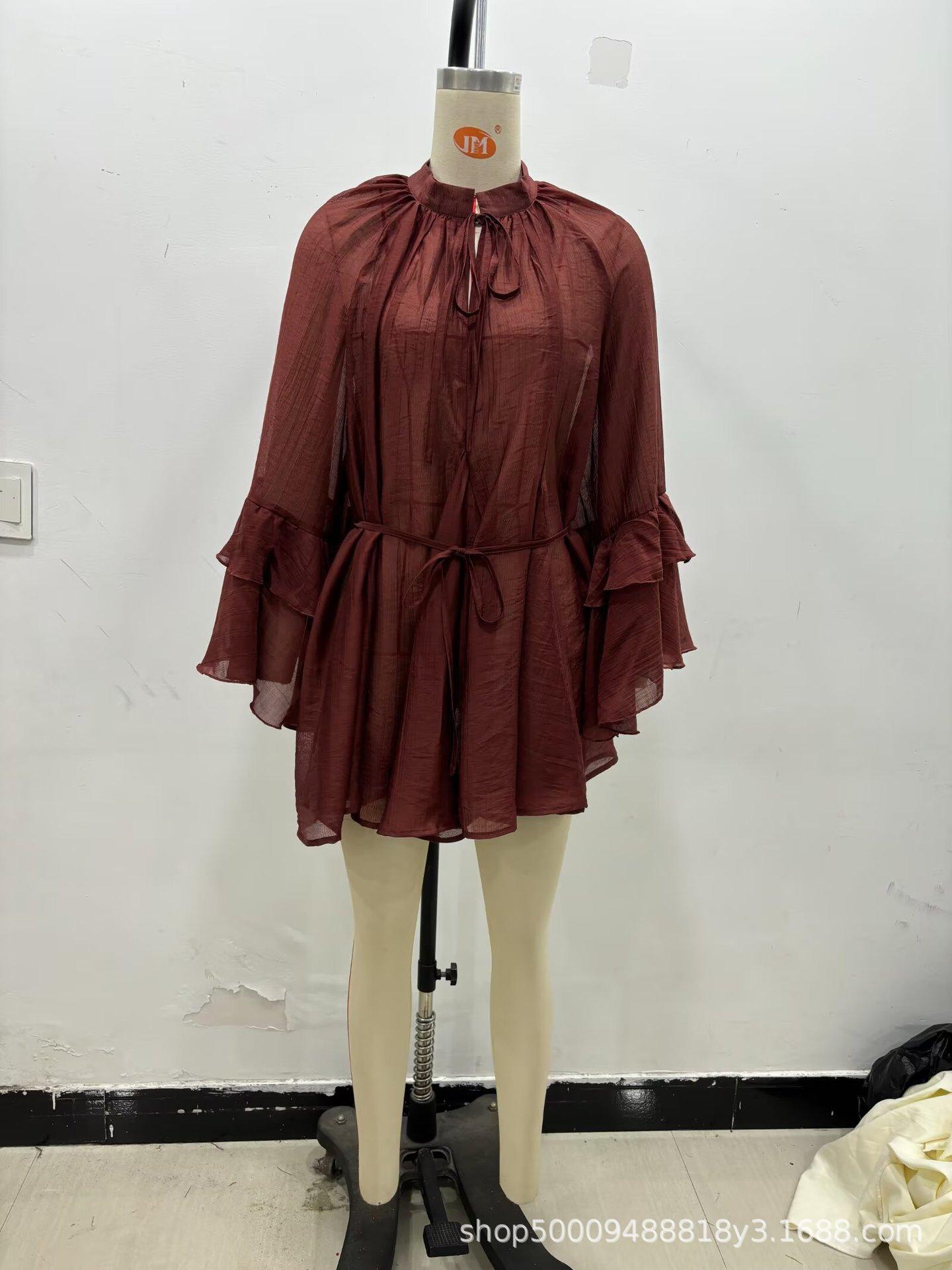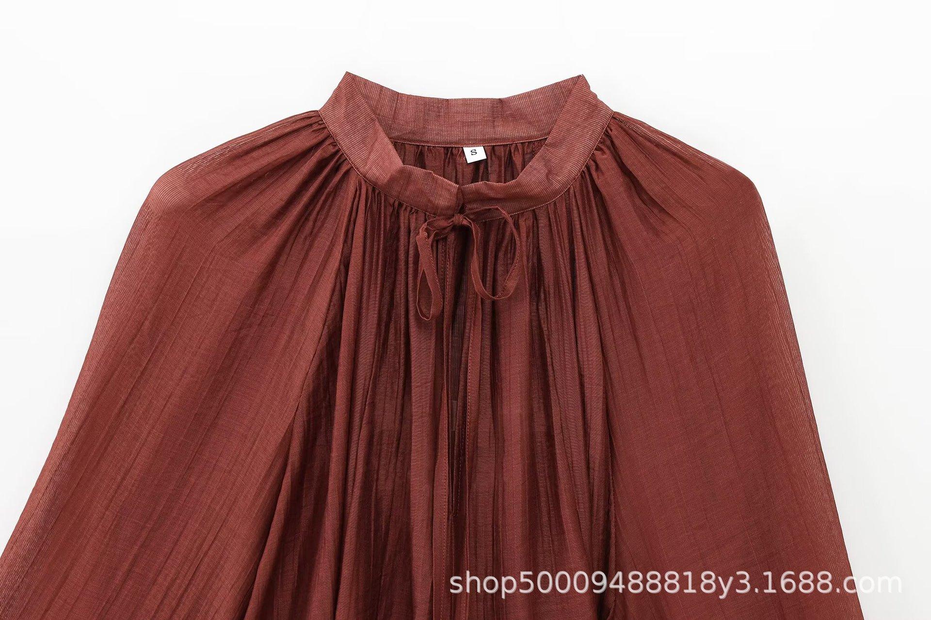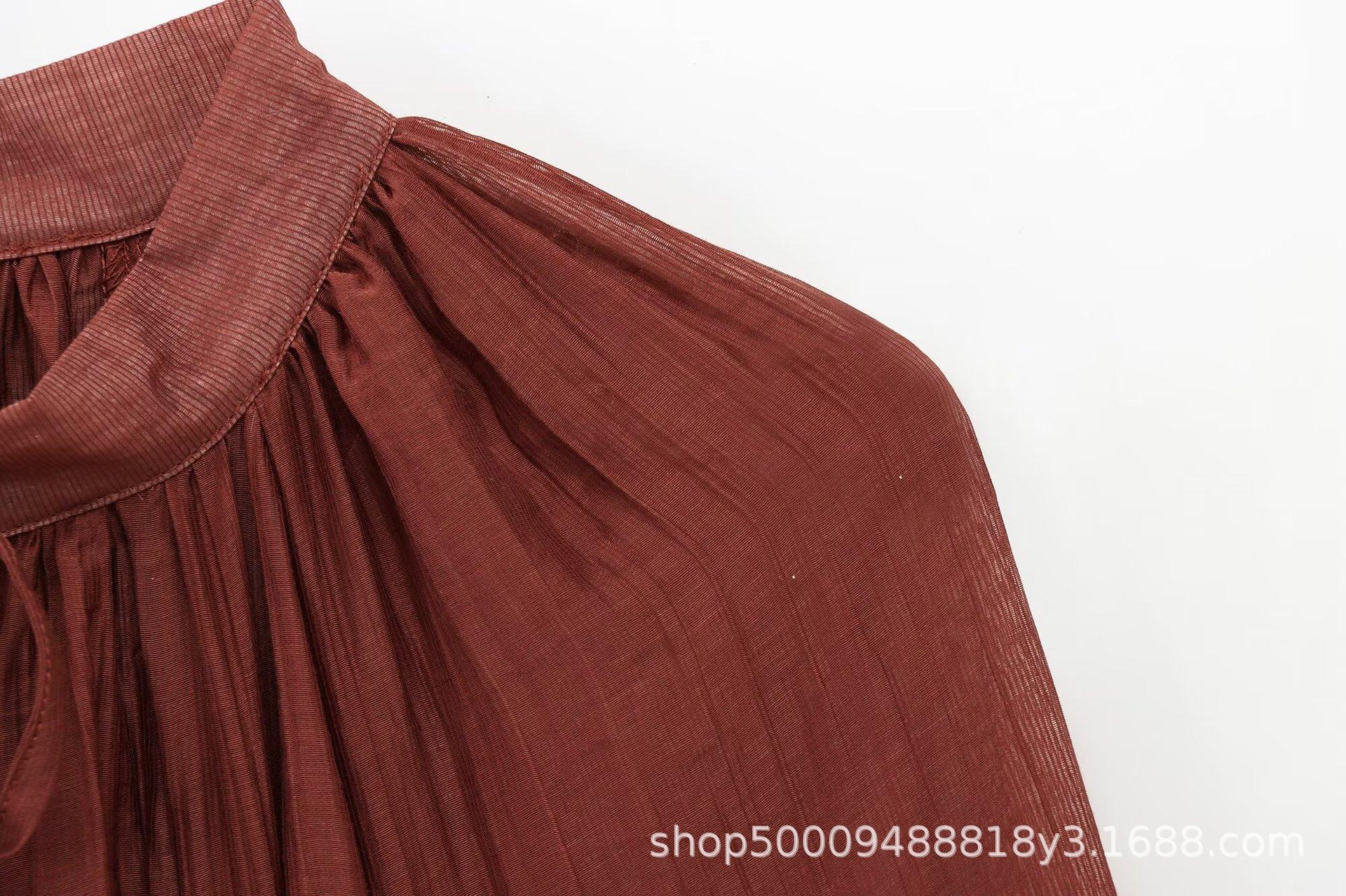 Ropa de Mujer de Comercio Exterior al por Mayor 2025 Verano Nuevo Estilo Europeo y Americano Vestido Holgado de Manga Larga con Volantes y Lazo 1273151