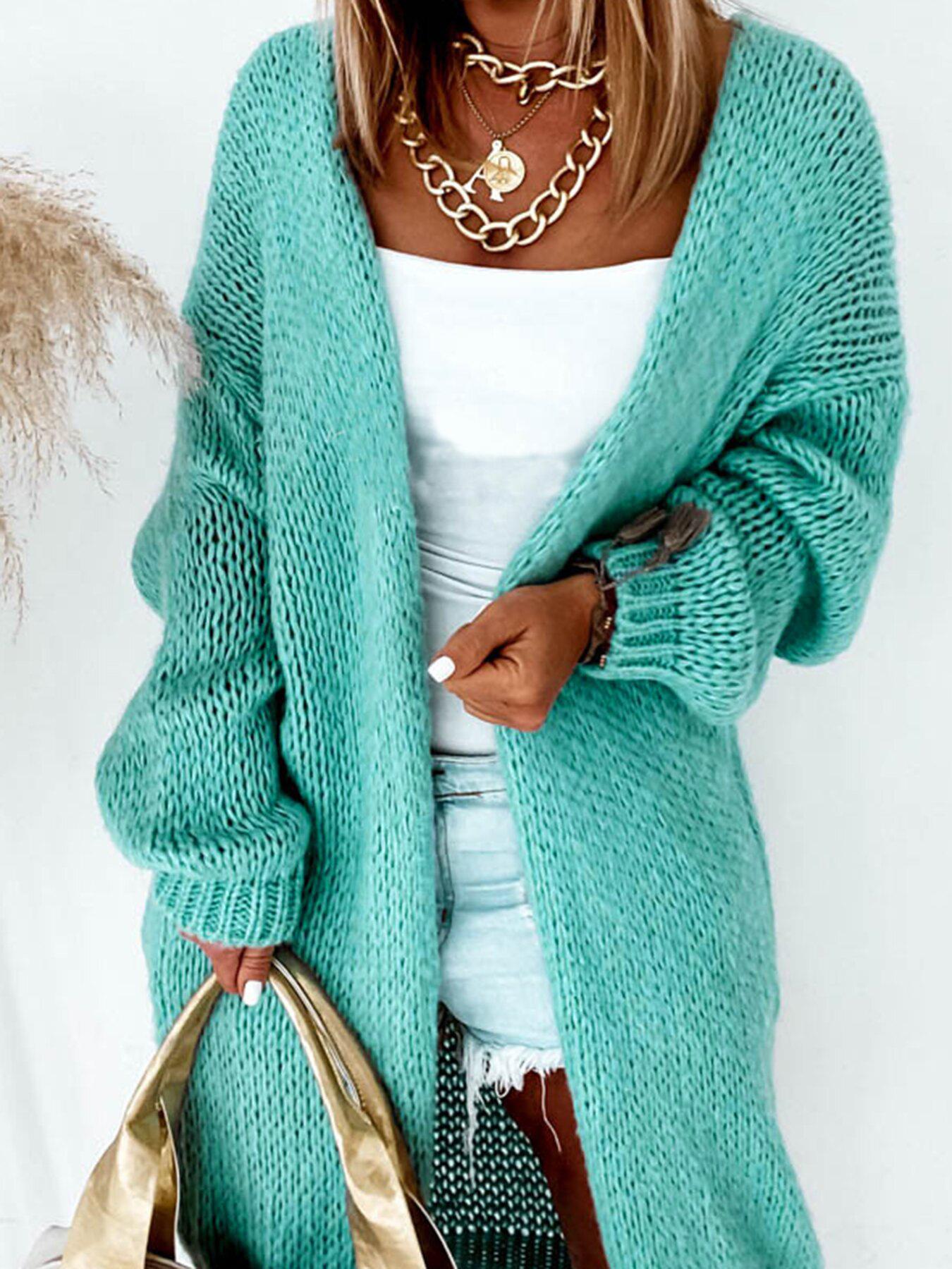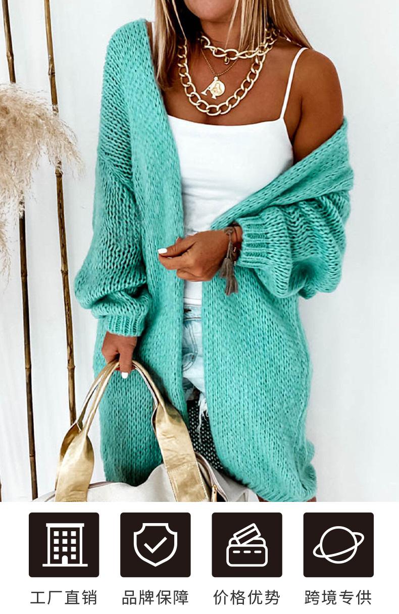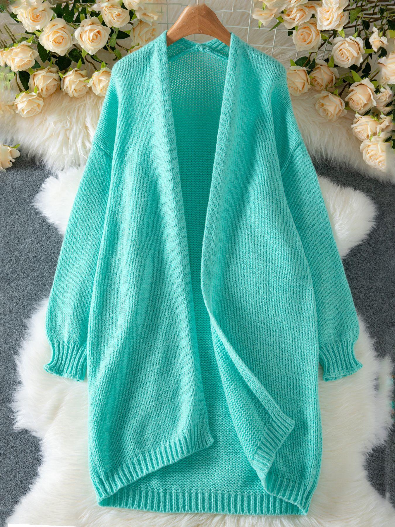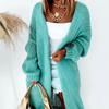 Abrigo Suéter de Estilo Holgazán Europeo y Americano para Mujer Transfronterizo Otoño/Invierno 2025 Largo Holgado Color Sólido Manga Larga Cárdigan Tejido