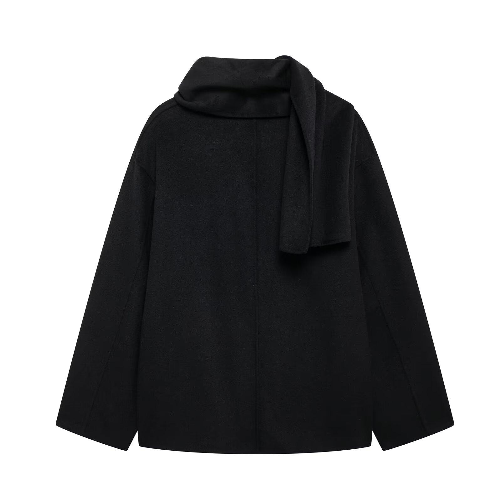 Comercio exterior transfronterizo ropa de mujer al por mayor otoño nuevo estilo europeo y americano decoración de bufanda abrigo corto suelto abrigo abrigo 6318241